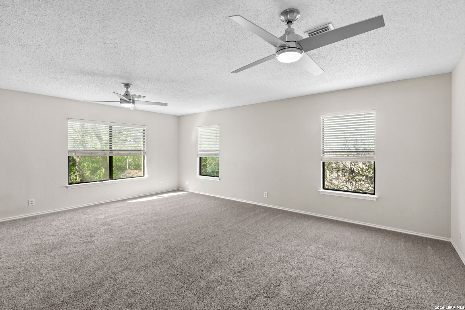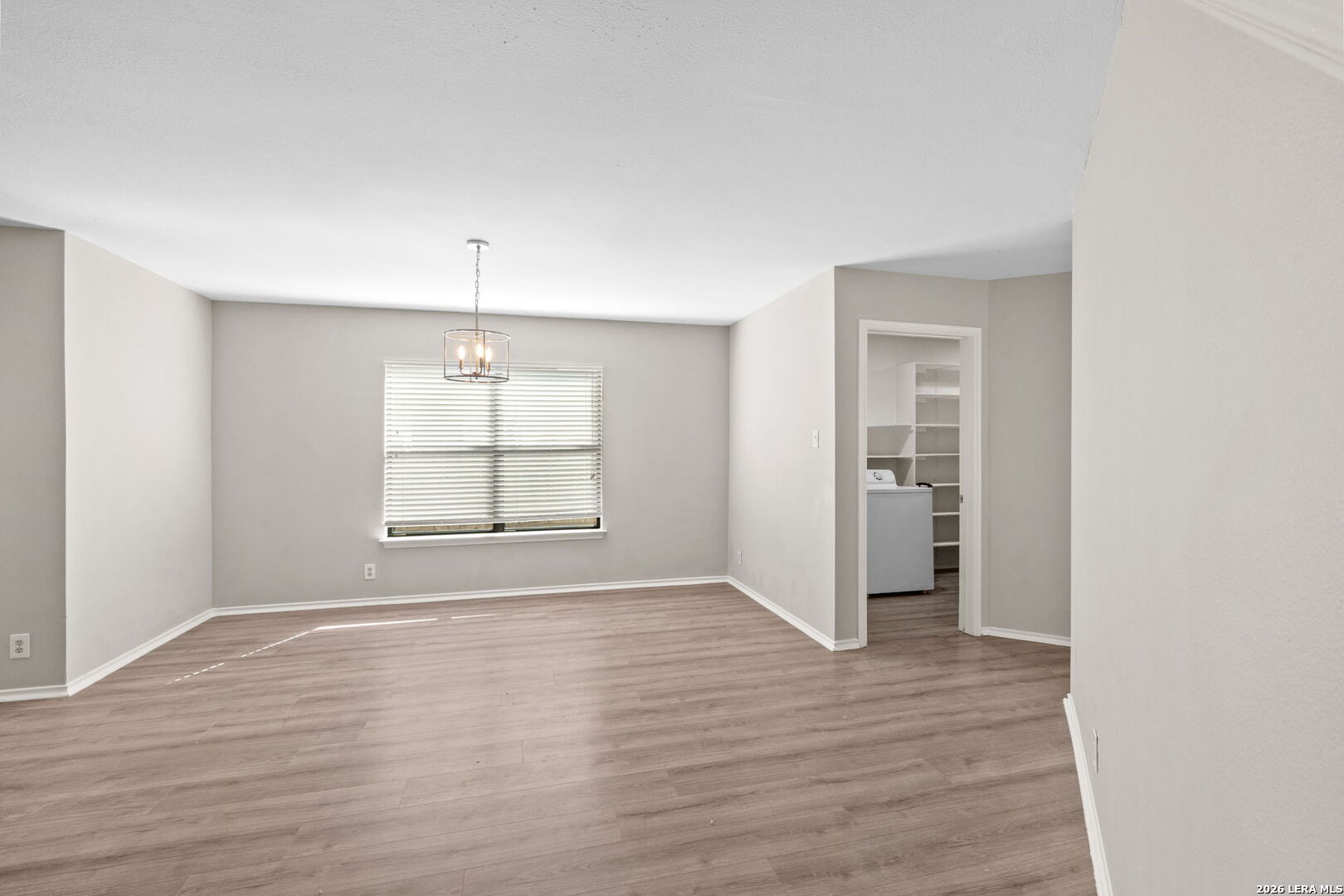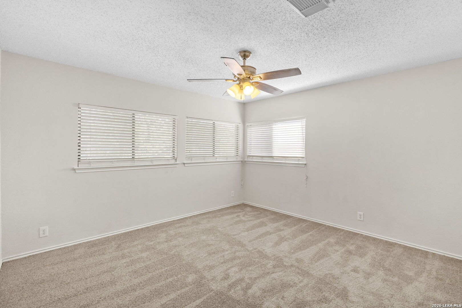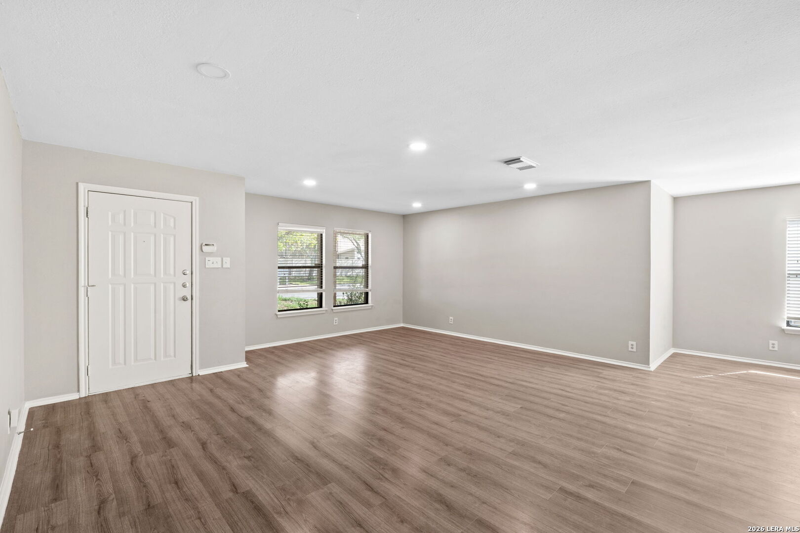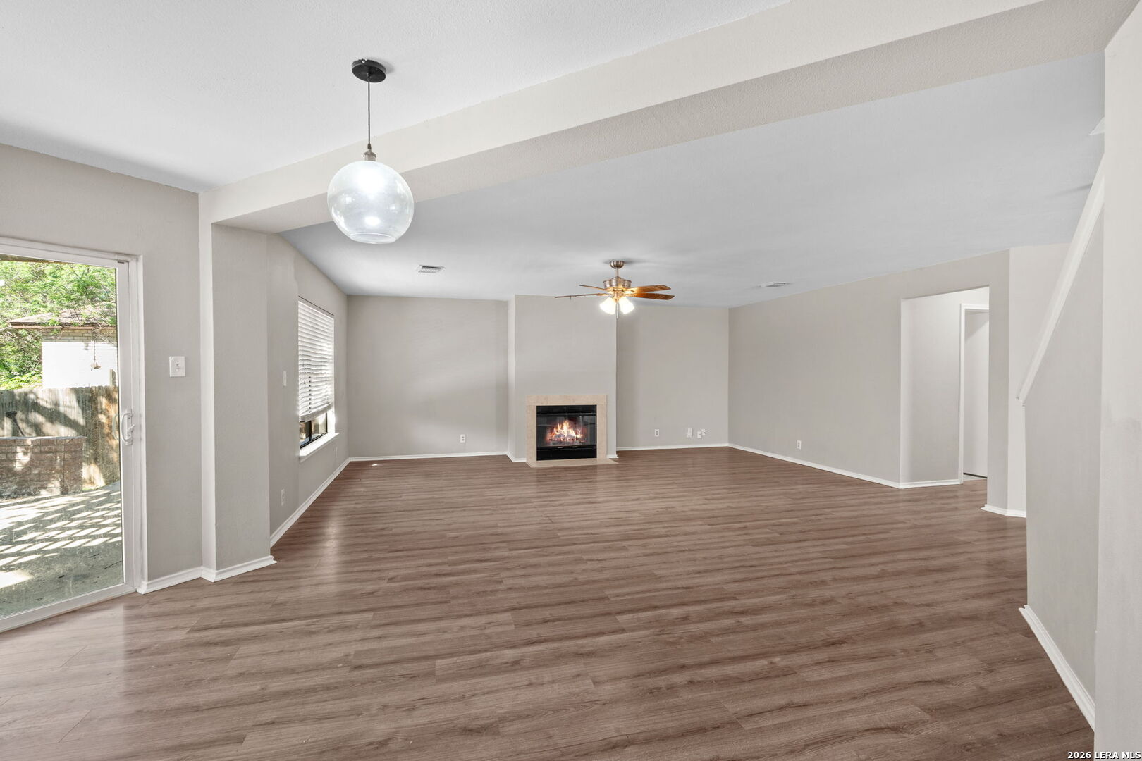 Beautiful and well-maintained two-story home in San Antonio featuring an all-brick exterior on all four sides and a charming covered front porch. Inside, the layout offers three living areas and a formal dining space, creating a flexible and functional flow. The open concept design is filled with natural light from numerous windows, while the main living room features a cozy fireplace and connects seamlessly to the kitchen. The kitchen is designed with both style and function in mind, complete with stainless steel appliances, granite countertops, tile backsplash, and a large walk-in pantry. Recessed lighting enhances the space throughout, and there is no carpet downstairs for easy maintenance. A spacious laundry room adds everyday convenience. Upstairs, all bedrooms are thoughtfully positioned along with a versatile loft area that can be used for additional living space or a workspace. The primary suite offers plenty of room for a sitting area or office setup and includes two separate vanities and a large walk-in closet with built-in shelving. Step outside to enjoy a covered patio, privacy fence, and mature trees that create a comfortable outdoor setting. Located in the NISD school district, this home offers a convenient commute to SeaWorld San Antonio, Lackland AFB, and Northwest Vista College, with easy access to Loop 1604.