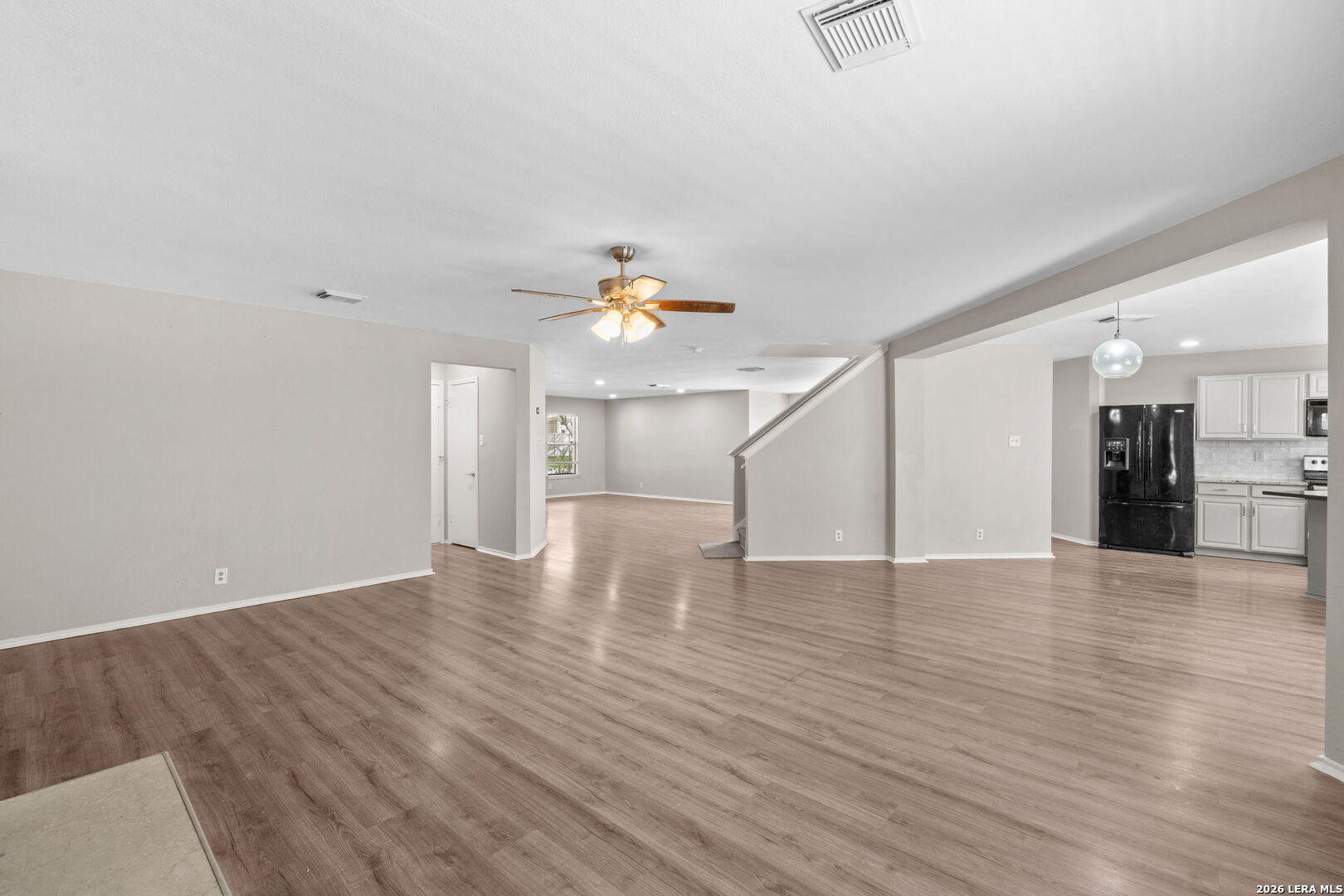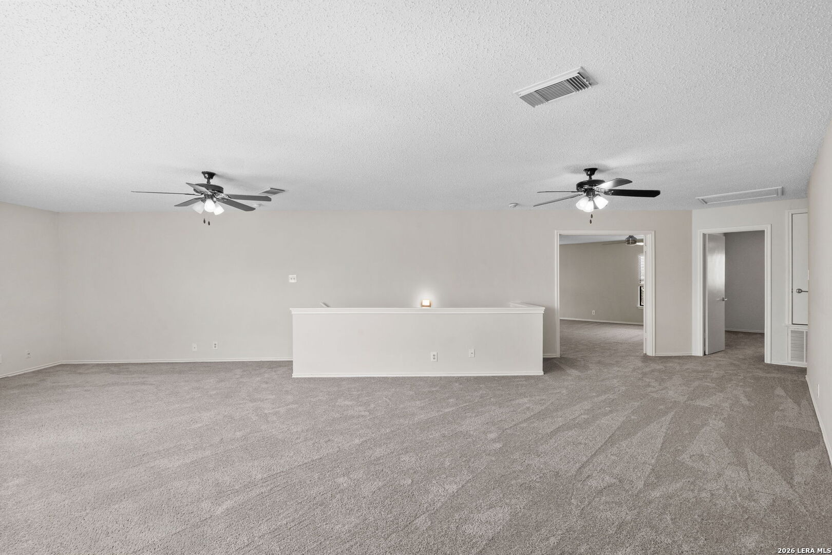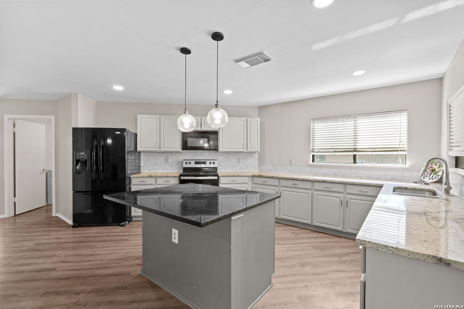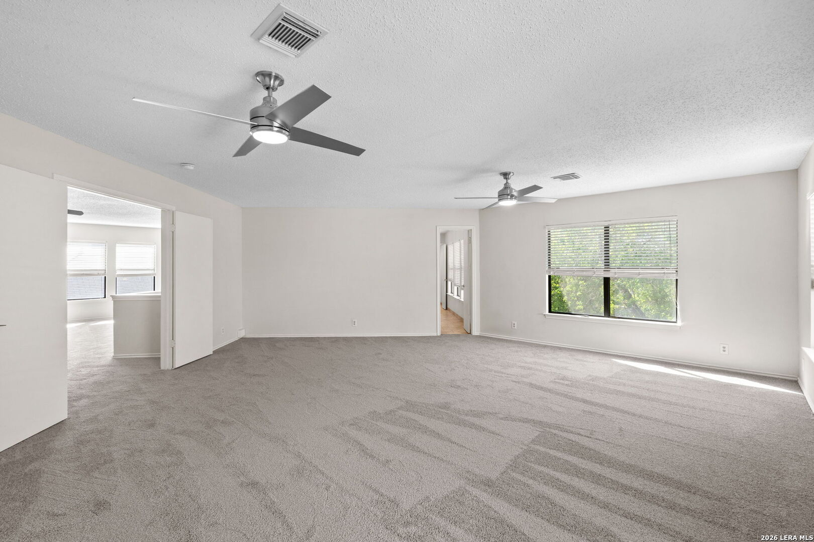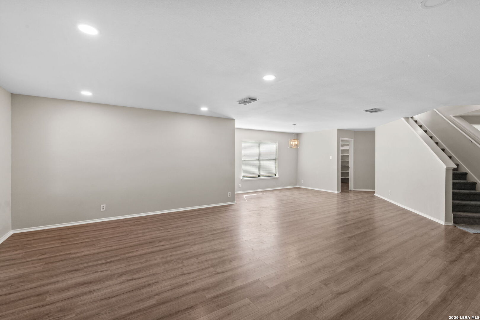 Beautiful and well-maintained two-story home in San Antonio featuring an all-brick exterior on all four sides and a charming covered front porch. Inside, the layout offers three living areas and a formal dining space, creating a flexible and functional flow. The open concept design is filled with natural light from numerous windows, while the main living room features a cozy fireplace and connects seamlessly to the kitchen. The kitchen is designed with both style and function in mind, complete with stainless steel appliances, granite countertops, tile backsplash, and a large walk-in pantry. Recessed lighting enhances the space throughout, and there is no carpet downstairs for easy maintenance. A spacious laundry room adds everyday convenience. Upstairs, all bedrooms are thoughtfully positioned along with a versatile loft area that can be used for additional living space or a workspace. The primary suite offers plenty of room for a sitting area or office setup and includes two separate vanities and a large walk-in closet with built-in shelving. Step outside to enjoy a covered patio, privacy fence, and mature trees that create a comfortable outdoor setting. Located in the NISD school district, this home offers a convenient commute to SeaWorld San Antonio, Lackland AFB, and Northwest Vista College, with easy access to Loop 1604.