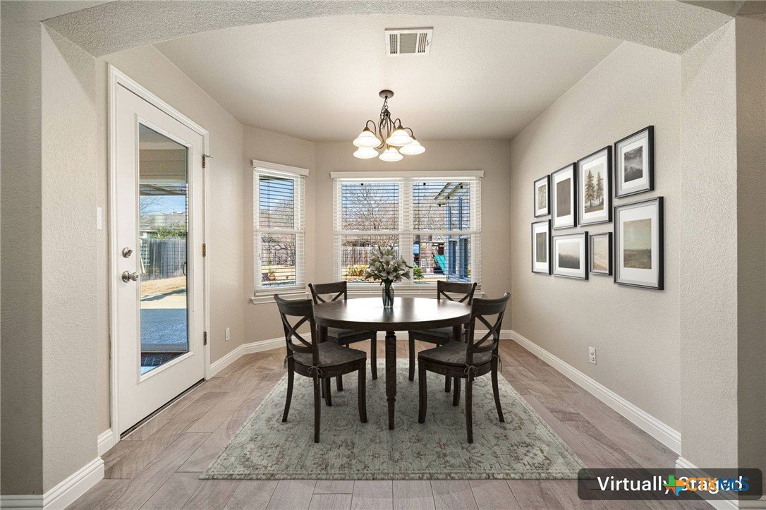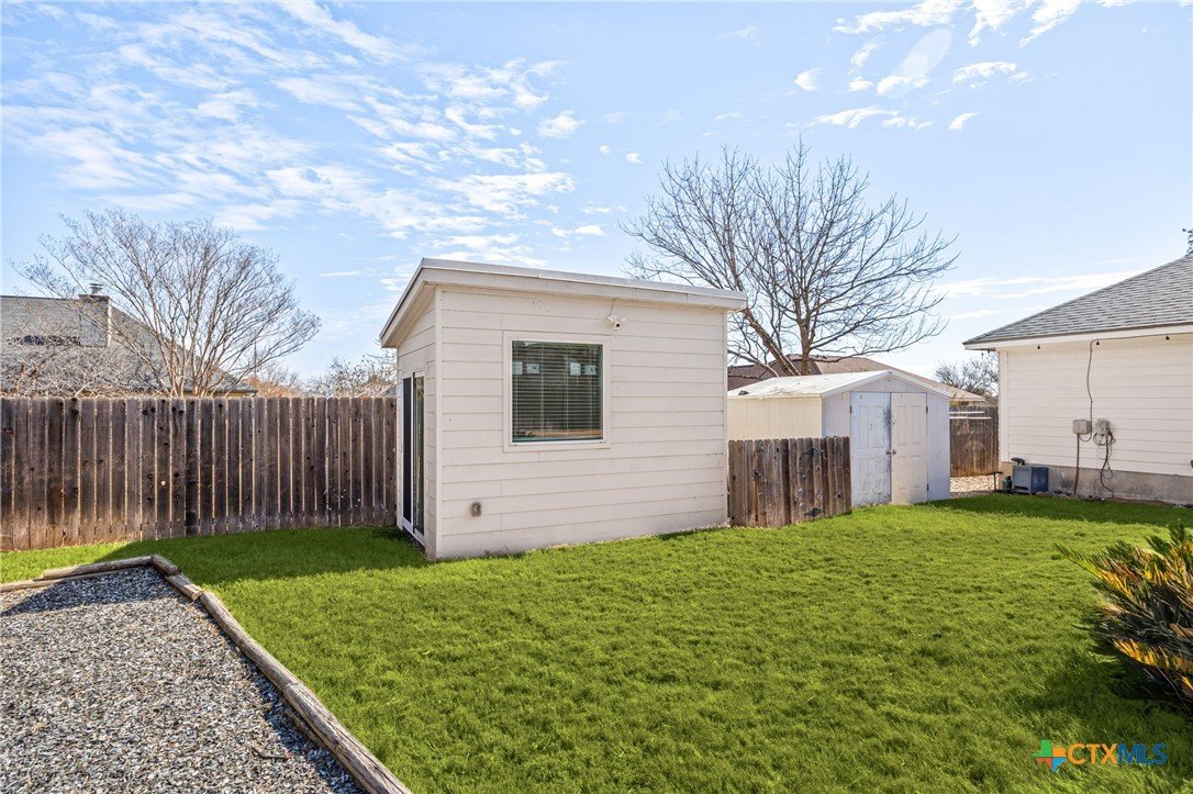 Private backyard oasis meets modern convenience in this meticulously updated 3-bedroom, 2-bathroom home featuring a resort-style pebble-finish pool with flagstone accents, fountain, and waterfall, surrounded by mature oak trees and lush landscaping. A detached climate-controlled office provides the perfect work-from-home sanctuary, while the sunroom with dual ceiling fans extends your living space year-round. Inside, natural light floods the open floor plan through SolaTube skylights, highlighting the updated kitchen with energy-efficient gas range and two dining areas ideal for entertaining. Recent major upgrades include impact-resistant roof, energy-efficient windows, new ceramic tile flooring throughout with plush carpet in all bedrooms, and modern insulated garage door for added efficiency and storage. Smart home features control lighting, cameras, irrigation, and doorbell, while the whole-house water softener and reverse osmosis system ensure quality throughout. Custom shelving maximizes laundry and primary closet space, and a cozy fireplace anchors the main living area. Additional highlights include in-ground irrigation, playground with rubber mulch, and metal garden shed. Located in a quiet, family-friendly neighborhood with park access—move-in ready and designed for effortless living.