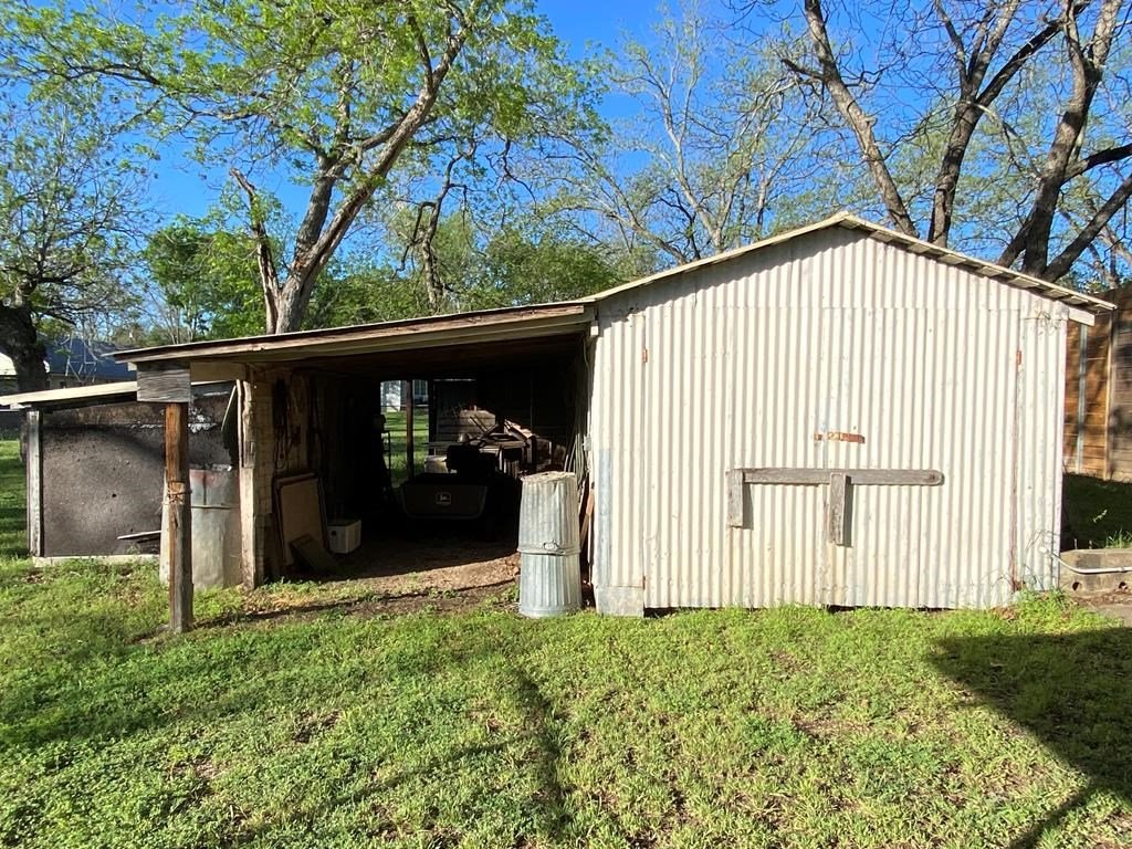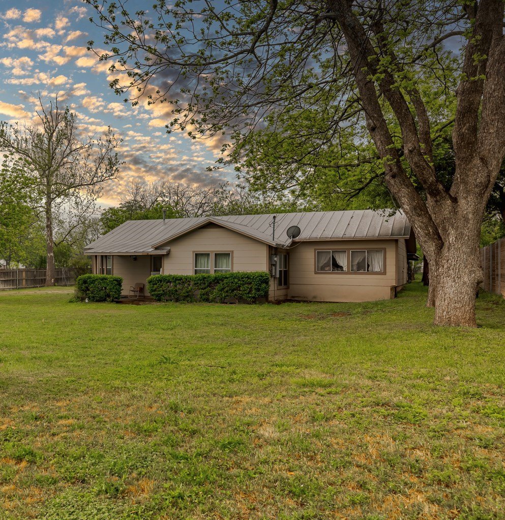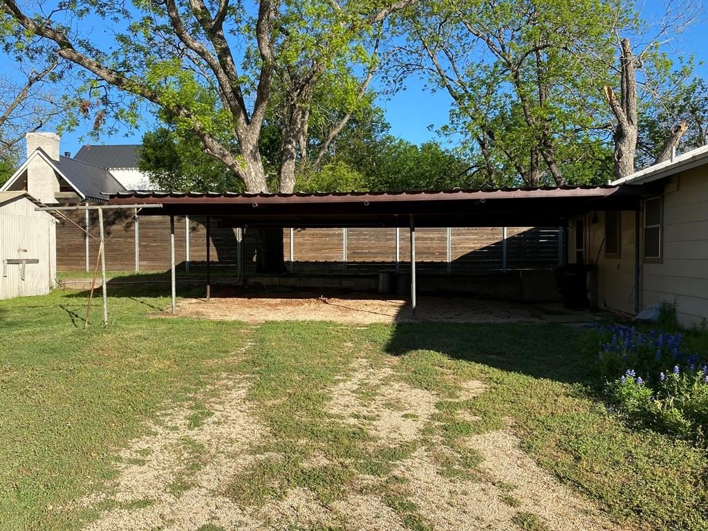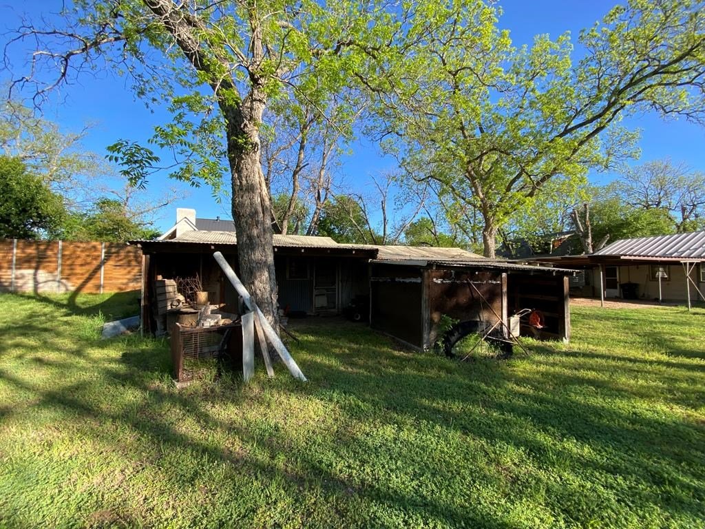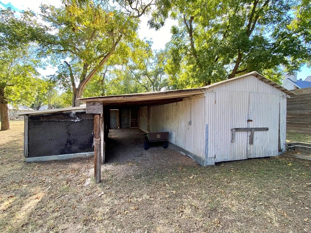 HISTORIC DISTRICT beautiful 0.459 AC treed lot with a 1958 built home and multiple outbuildings within a short walk to Main St., Fredericksburg. Originally there was a very small house built in 1944 on the property but it was removed. The existing 2 BR/1 BA home was remodeled in about 2014 adding a standing seam metal roof & double pane windows. The eat-in kitchen has solid wood cabinetry and the kitchen window overlooks the expansive back yard. Attached to the back of the home is a large metal carport which could easily accommodate five vehicles. Included in the group of outbuildings is an old "car house," smokehouse, and storage room. Subject to Historic District rules & regulations.