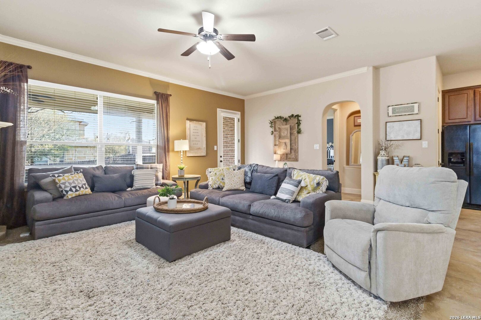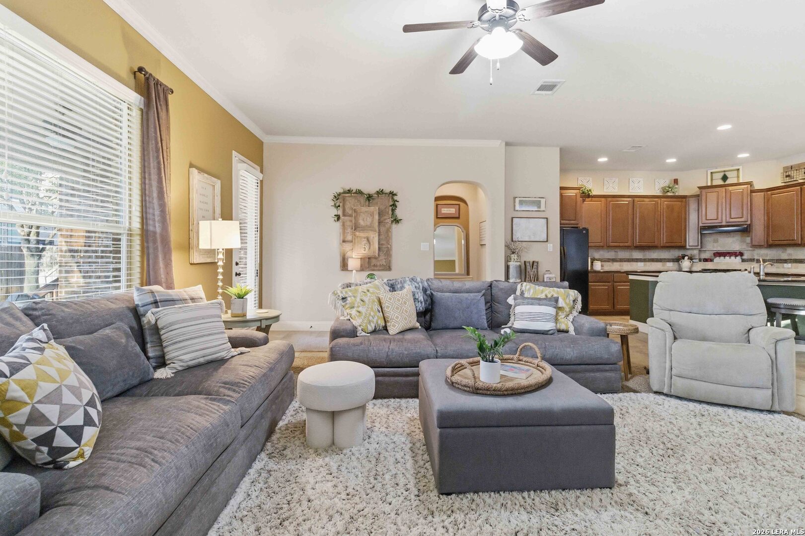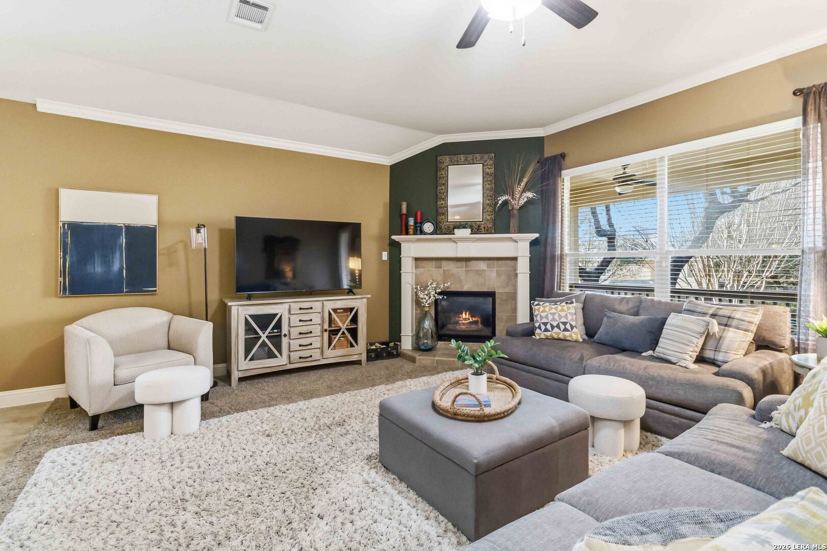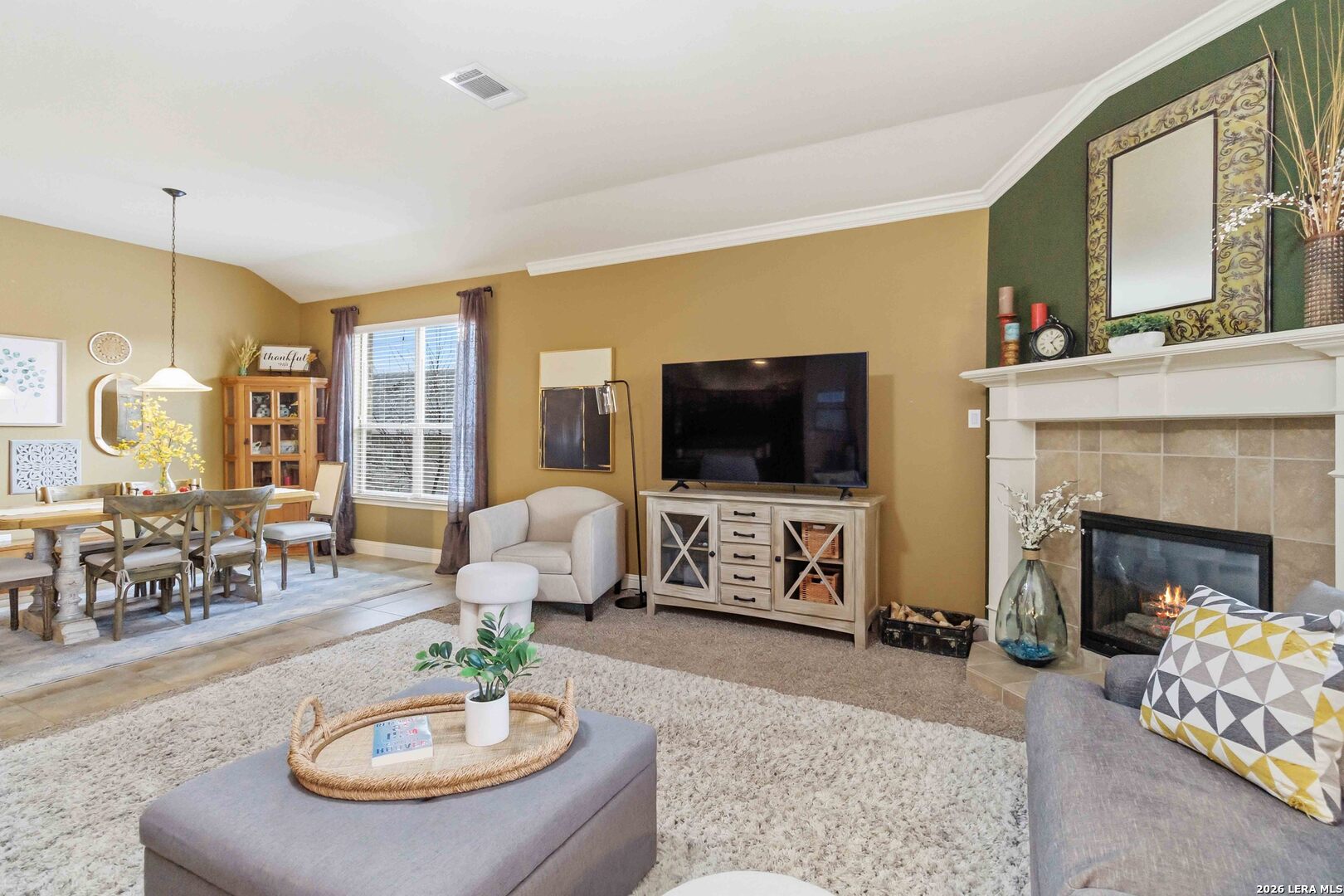 Here is your chance to get into the coveted Terra Bella gated neighborhood. Nestled on a charming, tree-shaded lot, the inviting brick exterior and mature landscaping create wonderful curb appeal from the moment you arrive. Inside, you'll find a bright and spacious open-concept layout that seamlessly connects the living, dining, and kitchen areas-perfect for both everyday living and entertaining. Large windows fill the home with natural light while highlighting the warm, neutral tones throughout. The living room features a cozy fireplace and high ceilings, creating an inviting space to relax or gather with guests. The kitchen overlooks the main living areas and includes ample counter space, a functional island with sink, and abundant cabinetry, making meal preparation and hosting effortless. The dining area offers plenty of space for family meals while enjoying views of the backyard. The generous primary suite provides a private retreat, while two additional bedrooms offer flexibility for family, guests, or a home office. Located within the highly regarded North East Independent School District, the property also offers convenient access to shopping, dining, and major highways, making commuting and everyday errands easy. Amenities shine in this development with a resort style pool, sport court, covered pavilion, splash pad, walking trails throughout.