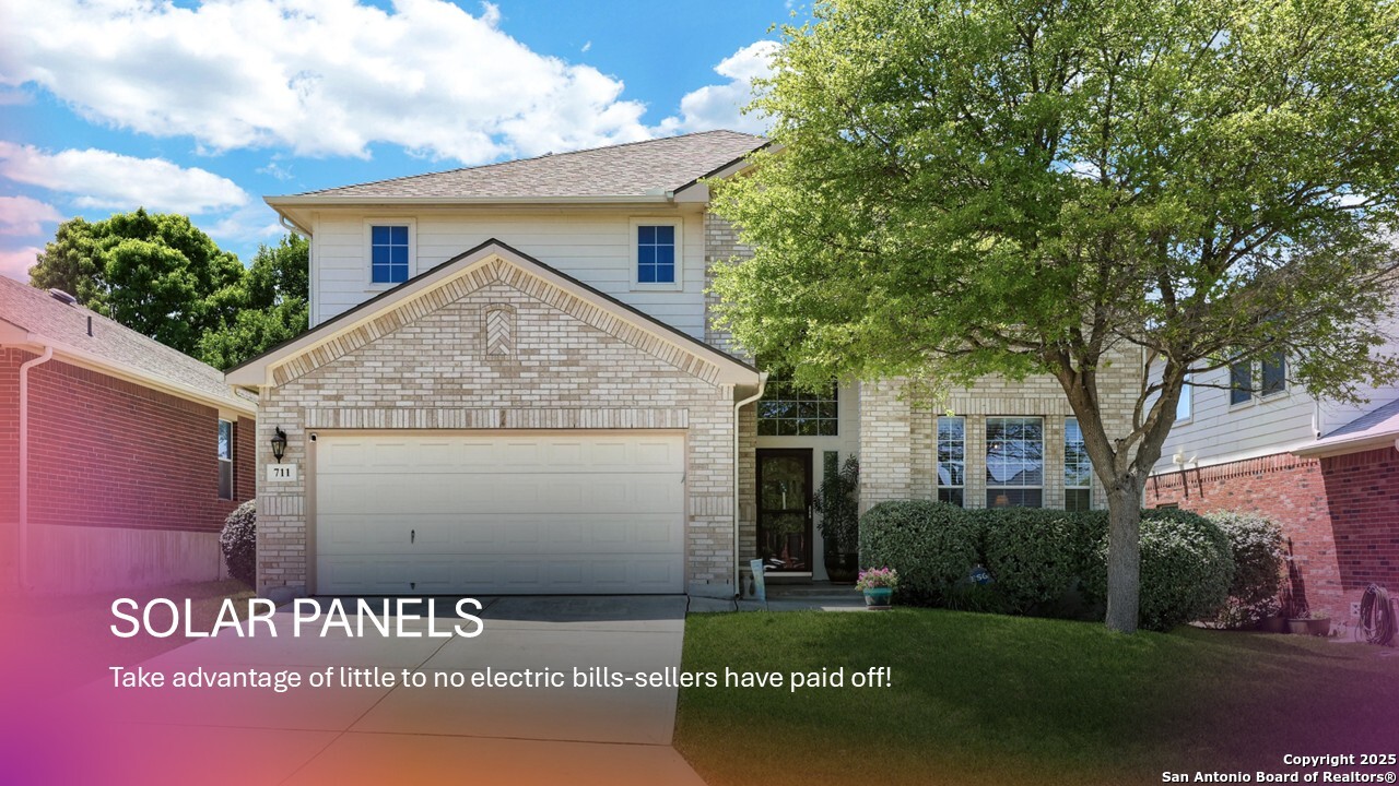 LITTLE TO NO ELECTRIC BILLS W/SOLAR. PLUS, RECENT HEAVY TAB ROOF, RECENT SS APPLIANCES AND MANY "SMART" FEATURES" MAKE THIS METICULOUSLY CARED FOR PROPERTY A REAL VALUE! Bedroom & full bath down. Gameroom or media that has closet so can be 5th bedroom. So many versatile uses and even has a computer niche area up - perfect for kids to do homework and the huge 5th bedroom is set up as a media room. This floorplan's focal point is the open family room (with brick fireplace) and kitchen separated by a large breakfast bar. Relax on the covered patio overlooking perfectly manicured yard. **UPDATED HEAVY TAB ROOF IS HAIL RESISTENT**SEE ADDITIONAL INFO FOR A LIST OF FEATURES INCLUDING "SMART" HOME FEATURES!