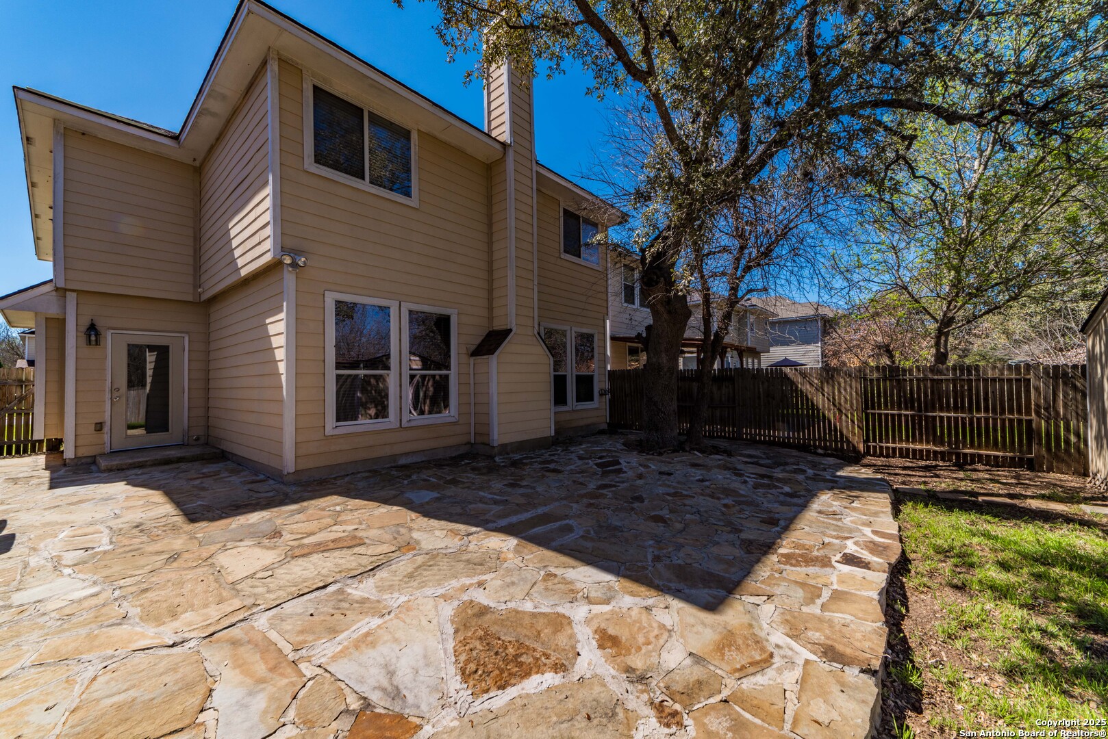 Beautiful 3-Bedroom Home Situated in Private Cul de Sac in Popular Vista Del Norte. Enjoy Direct Park Access at your Doorstep with Gate at End of Street, Convenient Location Near Wurzbach Pkwy & Blanco. Fantastic Floorplan with Numerous Upgrades, Downstairs Features Vinyl Plank Flooring, Large Living Room with Handsome Stone Fireplace & Large Windows. Chef's Kitchen with High-End Granite Countertops, Stainless Steel Appliances, Island, Walk-In Pantry, & Breakfast Area. Half-Bathroom near Entry, Stairs Leads to Large Upstairs Landing/Gameroom. Spacious Primary Suite with Walk-In Closet, Full Bathroom with Double Vanities & Separate Tub/Shower. Nicely-Sized Secondary Bedrooms with Ceiling Fans, Full Bathroom with Tub/Shower. Private Backyard with Flagstone Patio & Large Storage Shed. Pets Case-by-Case. North East ISD