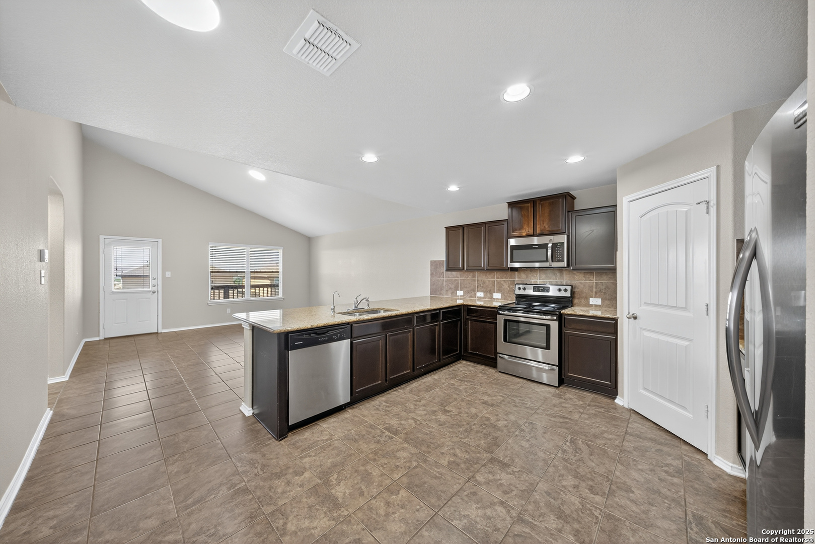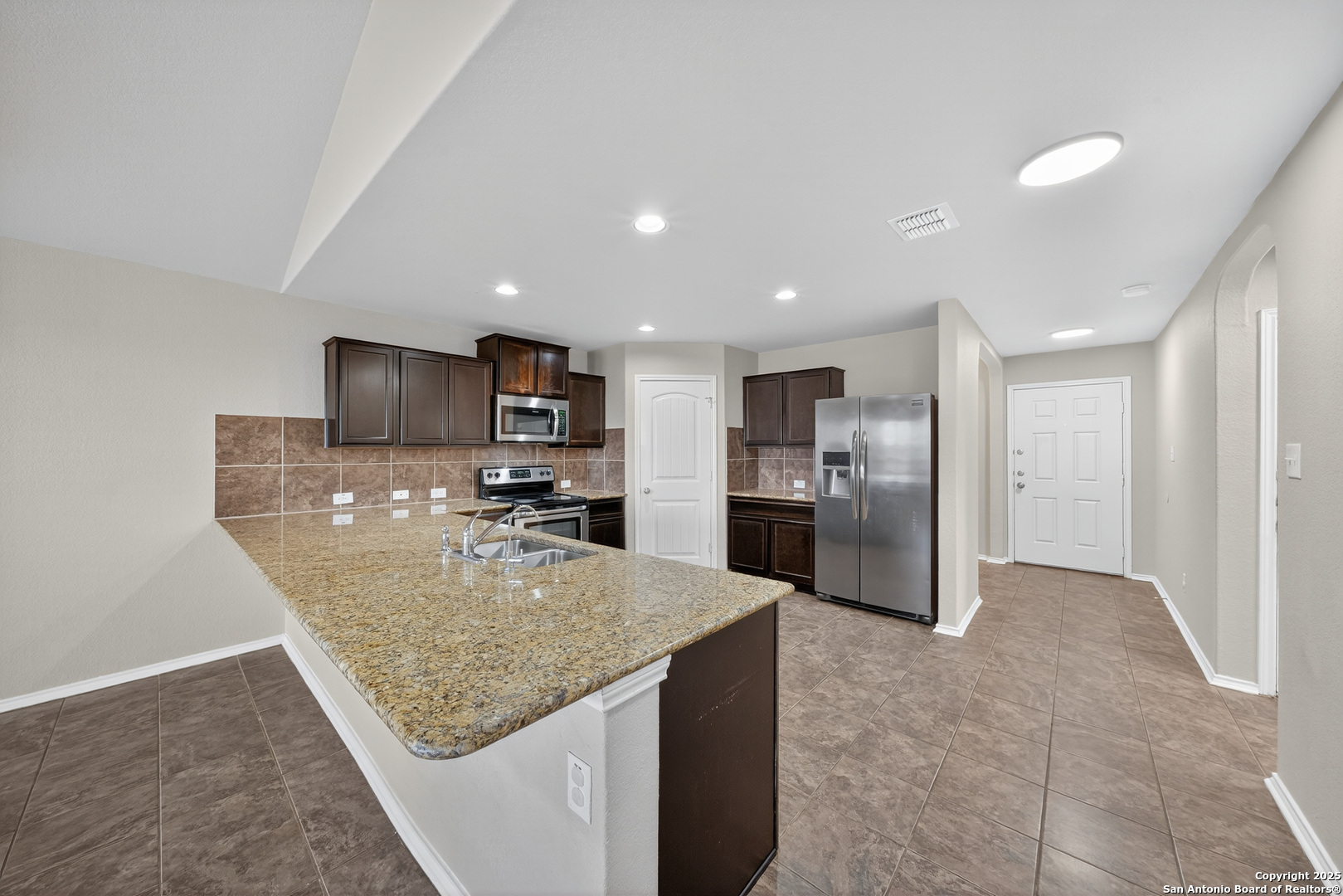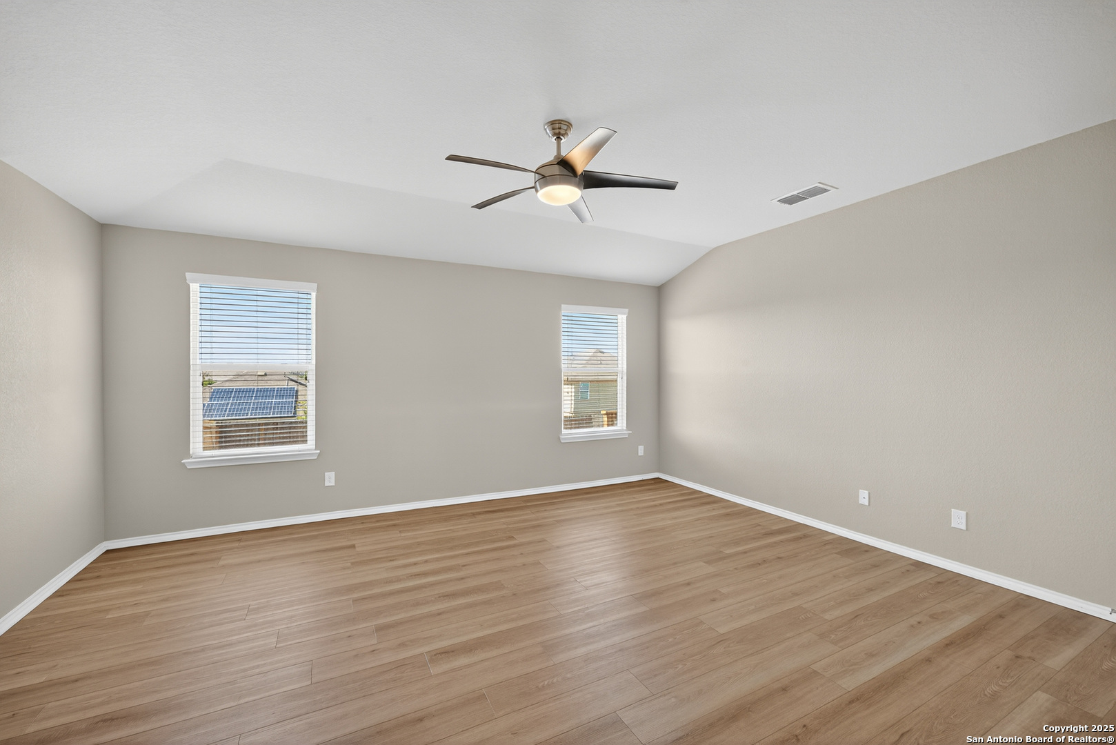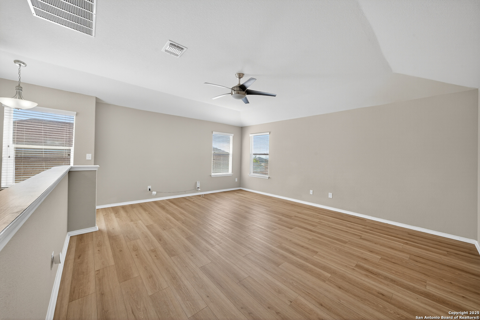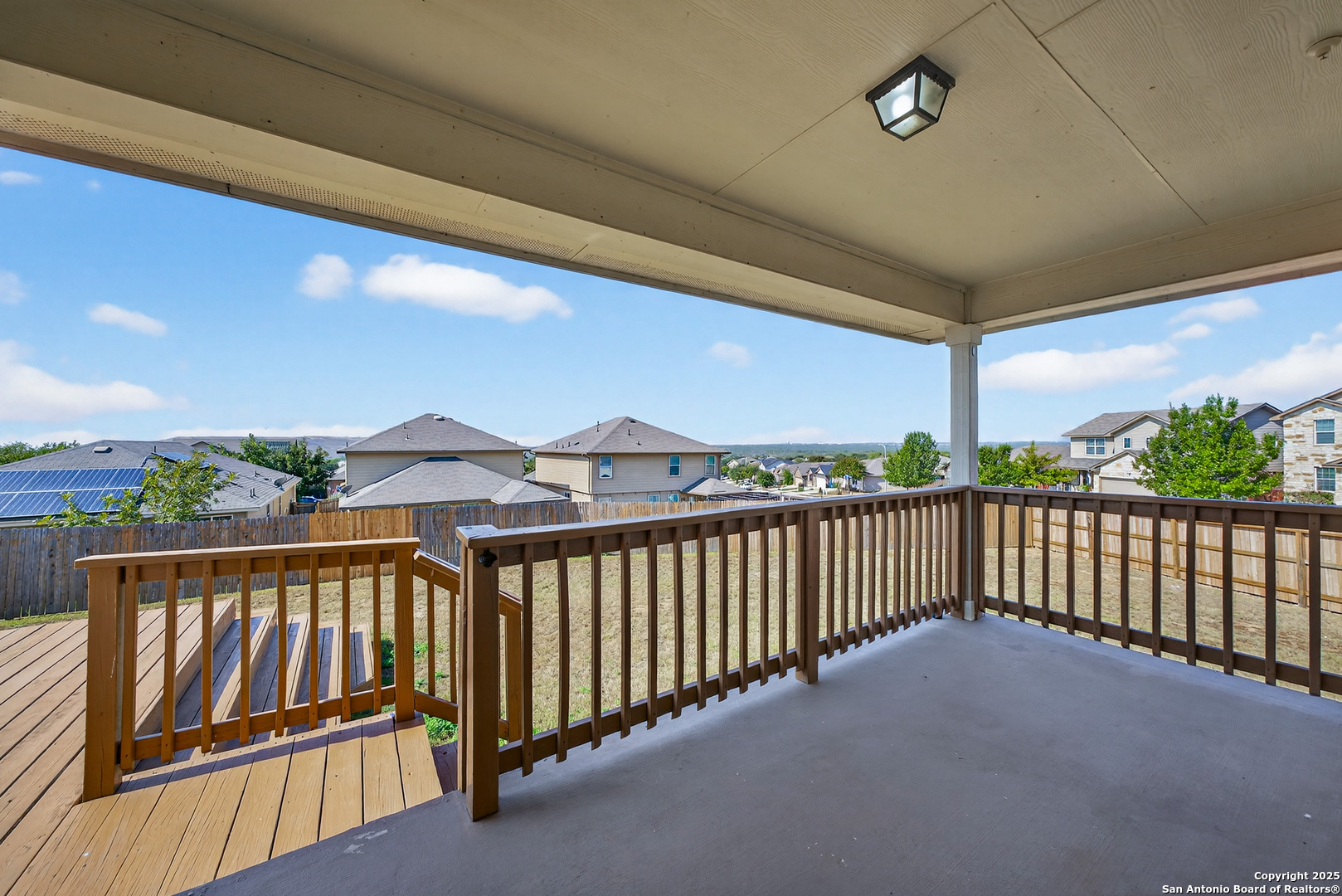 Discover the allure of this exquisite 4-bedroom, 2.5-bathroom residence nestled in the sought-after Solana Ridge subdivision, offering an array of amenities such as a community pool, clubhouse, and regulation-size basketball court. Upon entry, you'll be greeted by a versatile flex room-ideal for an office or additional living space-guiding you seamlessly into the sunlit open kitchen and family room. Boasting abundant natural light, the kitchen invites socializing with its expansive bar top seating, granite countertops, tiled backsplash, upgraded cabinetry, and matching stainless steel appliances. The home features no carpet throughout, showcasing easy-to-maintain flooring on the main level and newly installed vinyl plank flooring upstairs for a modern, cohesive look. Convenience meets luxury as the primary suite graces the lower level, featuring a full en-suite bathroom complete with double vanities, a separate shower, a spacious garden tub, and an ample walk-in closet. Ascend the stairs to discover generously sized bedrooms and a sizable game room catering to all your lifestyle needs. The true highlight awaits outside, where a covered patio and extended deck unveil breathtaking views. Situated on a sprawling corner lot, this property offers an expansive yard-perfect for outdoor enjoyment. Prepare to be captivated-this one is sure to delight!