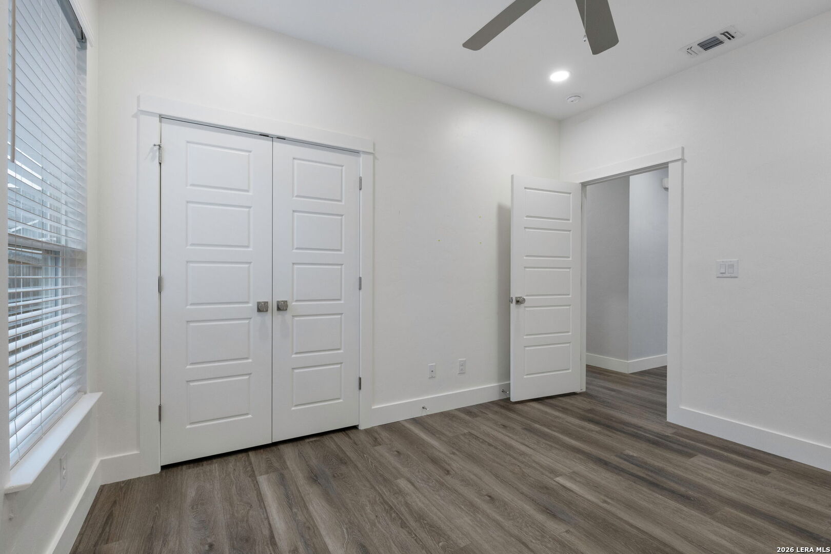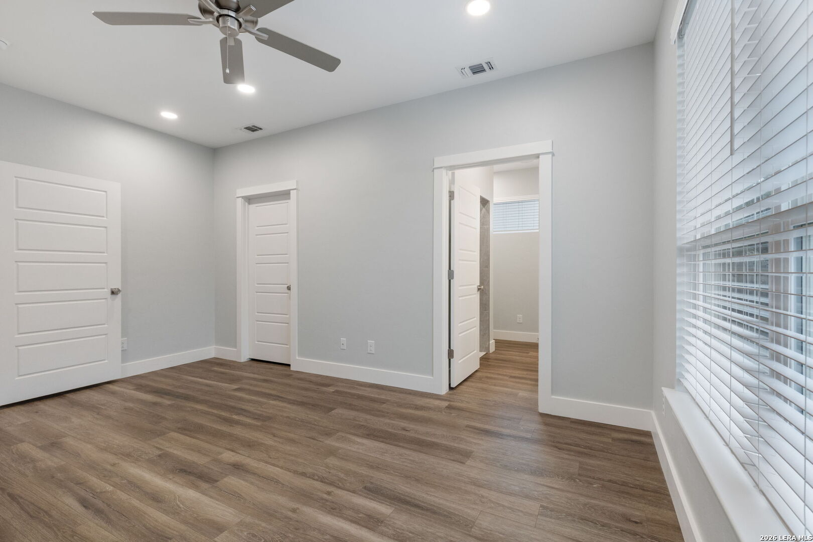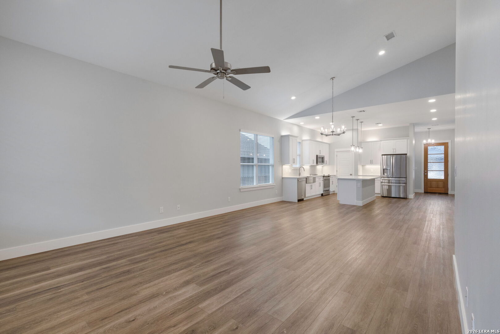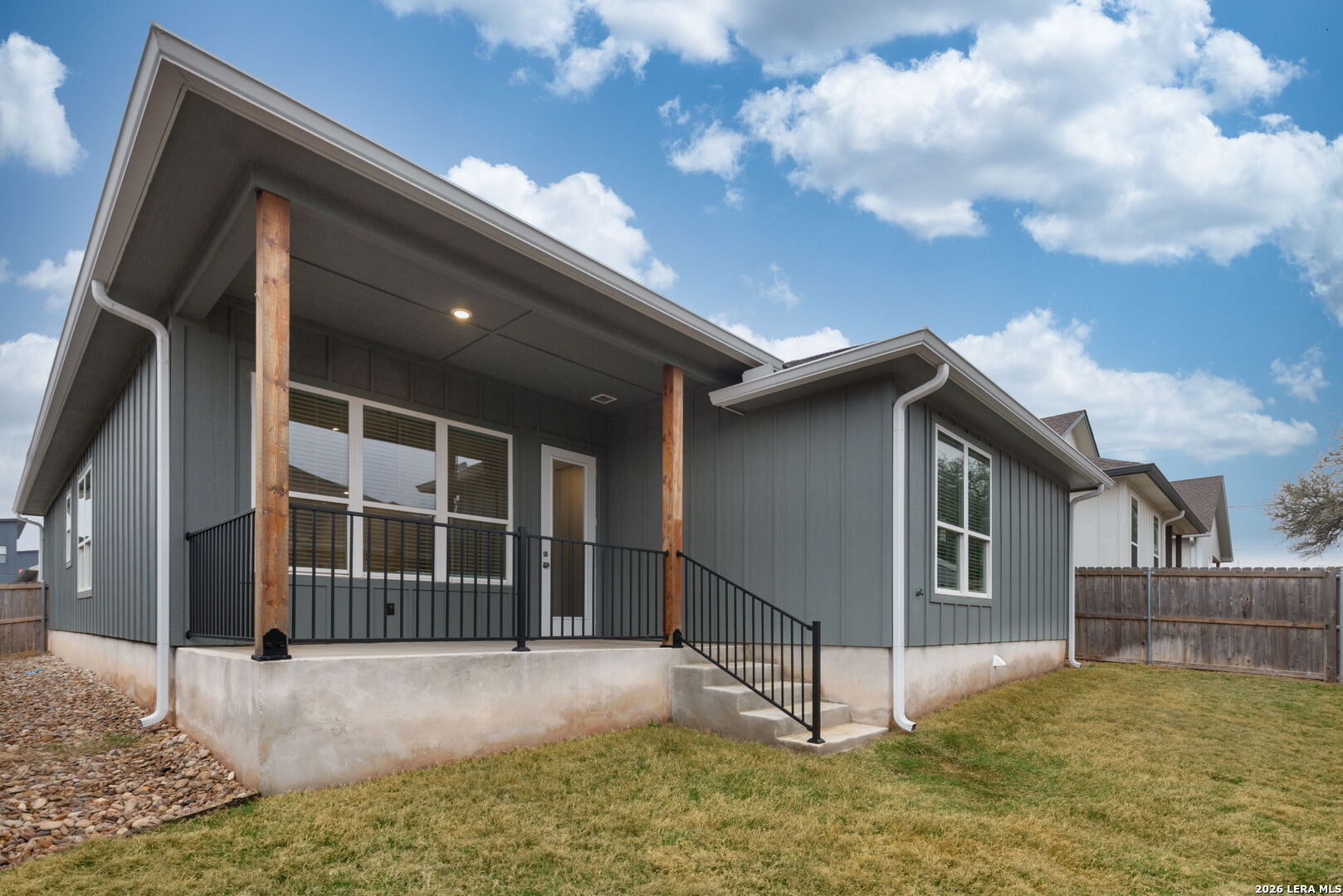 Move-in ready 4-bedroom, 2-bathroom home offering 1,841 sq. ft. with an open layout and desirable split floor plan. The kitchen opens to the dining and living areas, creating a spacious central gathering space perfect for everyday living and entertaining. This home offers solid wood cabinets with soft-close features, quartz countertops, and window blinds. Outdoor features include a covered patio, landscaped yard with irrigation, gutters, and a privacy fence, providing a great space to relax or entertain.