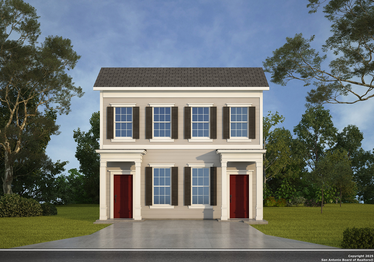 Welcome to the newly built Rosehaven Homes duplex featuring the Lyon floor plan, offering two units, each thoughtfully designed with 2 bedrooms and 2 full baths. Both units include an open layout with modern finishes, vinyl plank flooring, granite countertops, and energy-efficient foam insulation. Each side also features its own covered patio and dedicated parking, providing practical convenience for residents. Located in Magnolia Village North with gated access and easy routes to Loop 1604 and HWY 90, this property is a strong option for investors seeking a low-maintenance, high-demand rental opportunity.