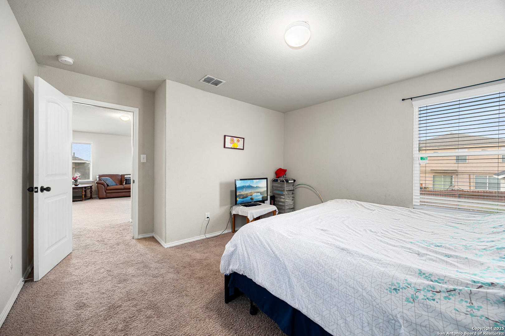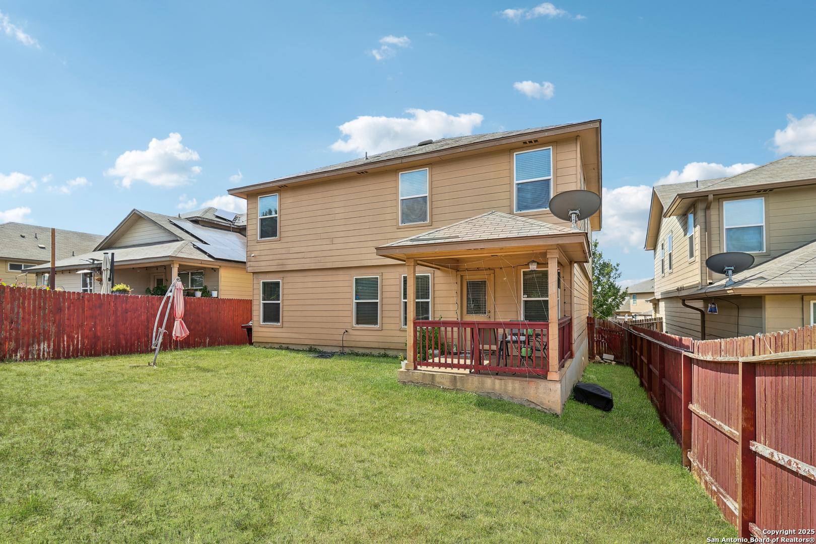 This spacious 2-story home is located in the inviting community of Solana Ridge and offers plenty of room to spread out with 5 bedrooms and 3.5 bathrooms. The first floor features a generous living area with backyard access, seamlessly connected to a functional kitchen with an island, breakfast bar, granite countertops, pantry, and ample cabinetry. A separate dining room provides space for gatherings and meals. The primary suite is conveniently located on the first floor and includes a private bath. Upstairs, you'll find a large second living area or game room, along with four well-sized secondary bedrooms, offering flexibility for guests, hobbies, or a home office. The backyard is ideal for relaxing or entertaining, with a covered patio, a spacious lawn, and a privacy fence. Enjoy access to great neighborhood amenities, including a community pool, outdoor fitness equipment, and a 5k running path. Conveniently situated near Walmart, H-E-B, the Aquatic Center, and local schools, with easy access to I-410. Schedule your showing today!