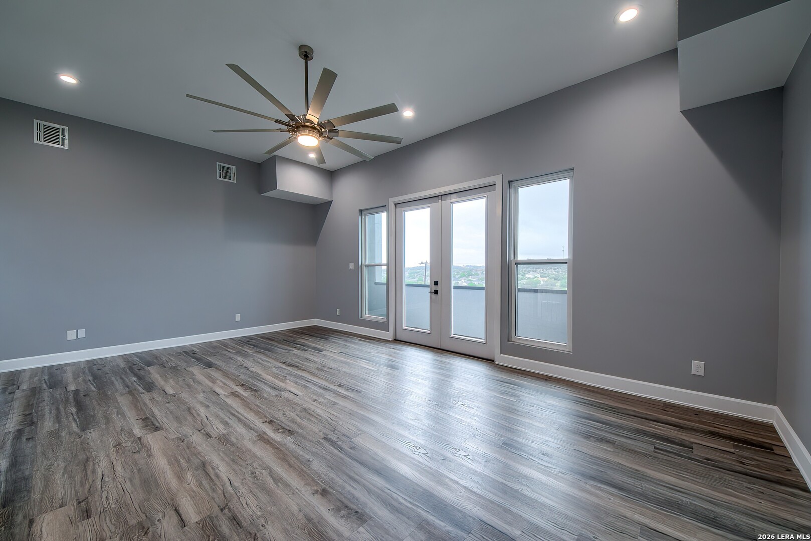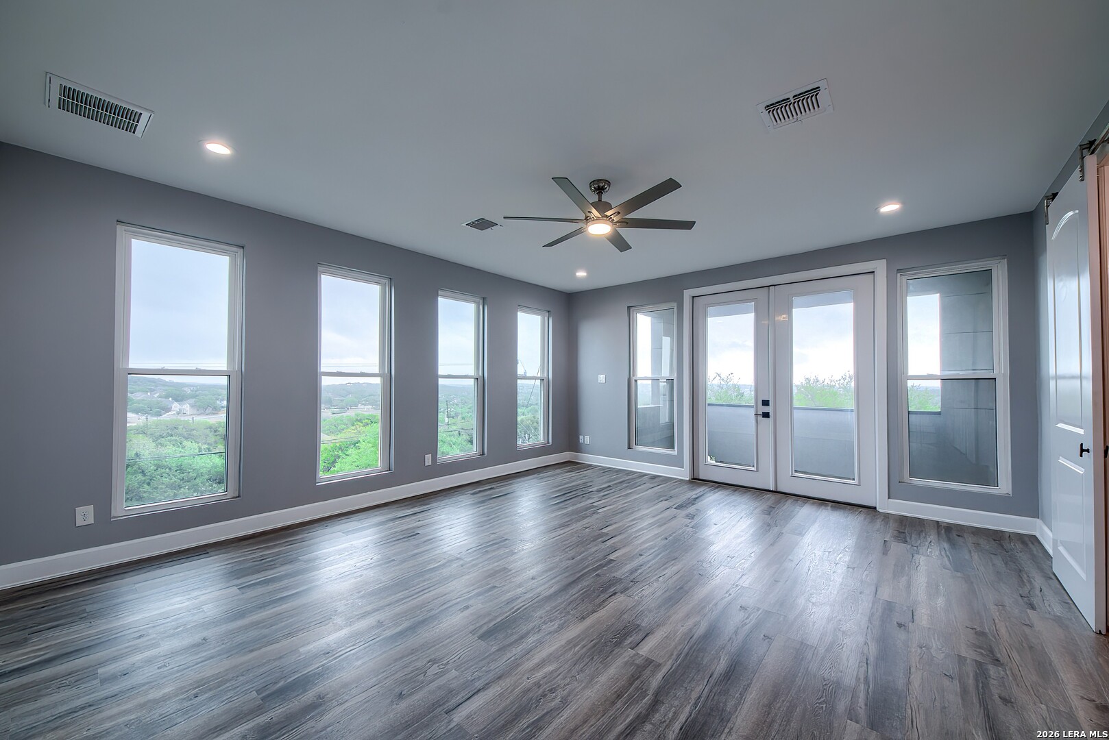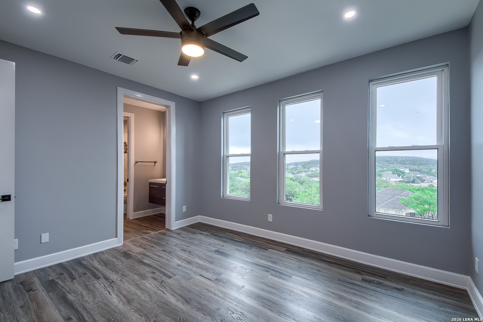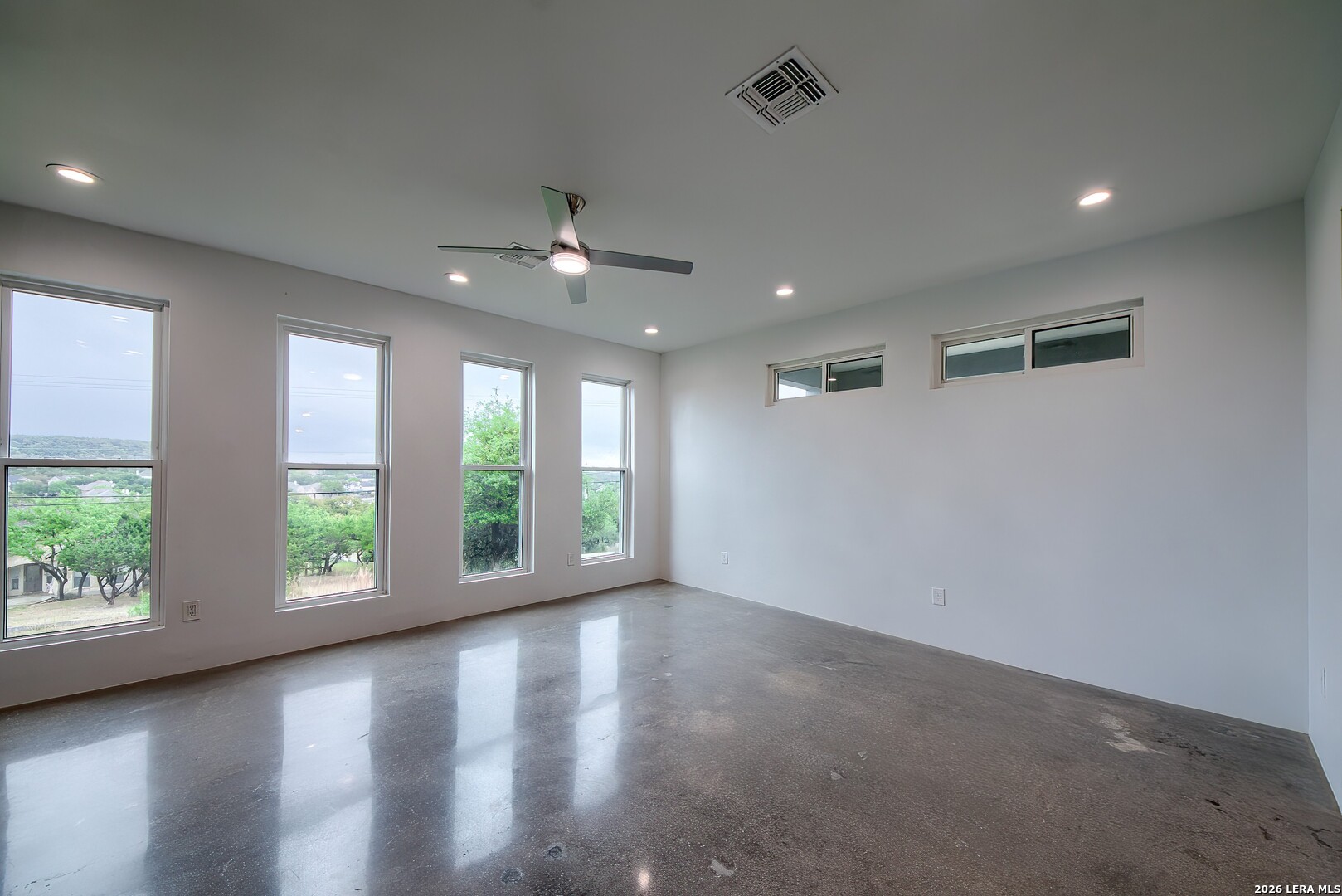 A stunning contemporary home in Timberwood Park offering a truly unique living experience. This spacious 4-bedroom, 3.5-bathroom residence features over 3,000 square feet of thoughtfully designed living space, complete with multiple indoor and outdoor areas perfect for both relaxation and entertaining. Step through the grand entryway, where a striking two-sided fireplace elegantly connects the foyer and main living room. Just off the entrance, you'll find a private downstairs study, while the adjacent living area provides a comfortable space complete with a mounted TV. The oversized kitchen is a chef's dream, featuring a large island with a gas cooktop, gourmet appliances including a refrigerator, built-in microwave, and oven, as well as an expansive walk-in pantry with cabinetry and additional space for a second refrigerator or freezer. Upstairs, the primary suite serves as a luxurious retreat, highlighted by wall-to-wall windows and a private balcony. The spa-like ensuite bathroom offers dual vanities, an oversized whirlpool tub with jets, and a spacious walk-in shower. Conveniently located upstairs, the laundry room includes a full-size washer and dryer. Residents will also enjoy routine lawn care throughout the lease, along with full access to the neighborhood amenities.