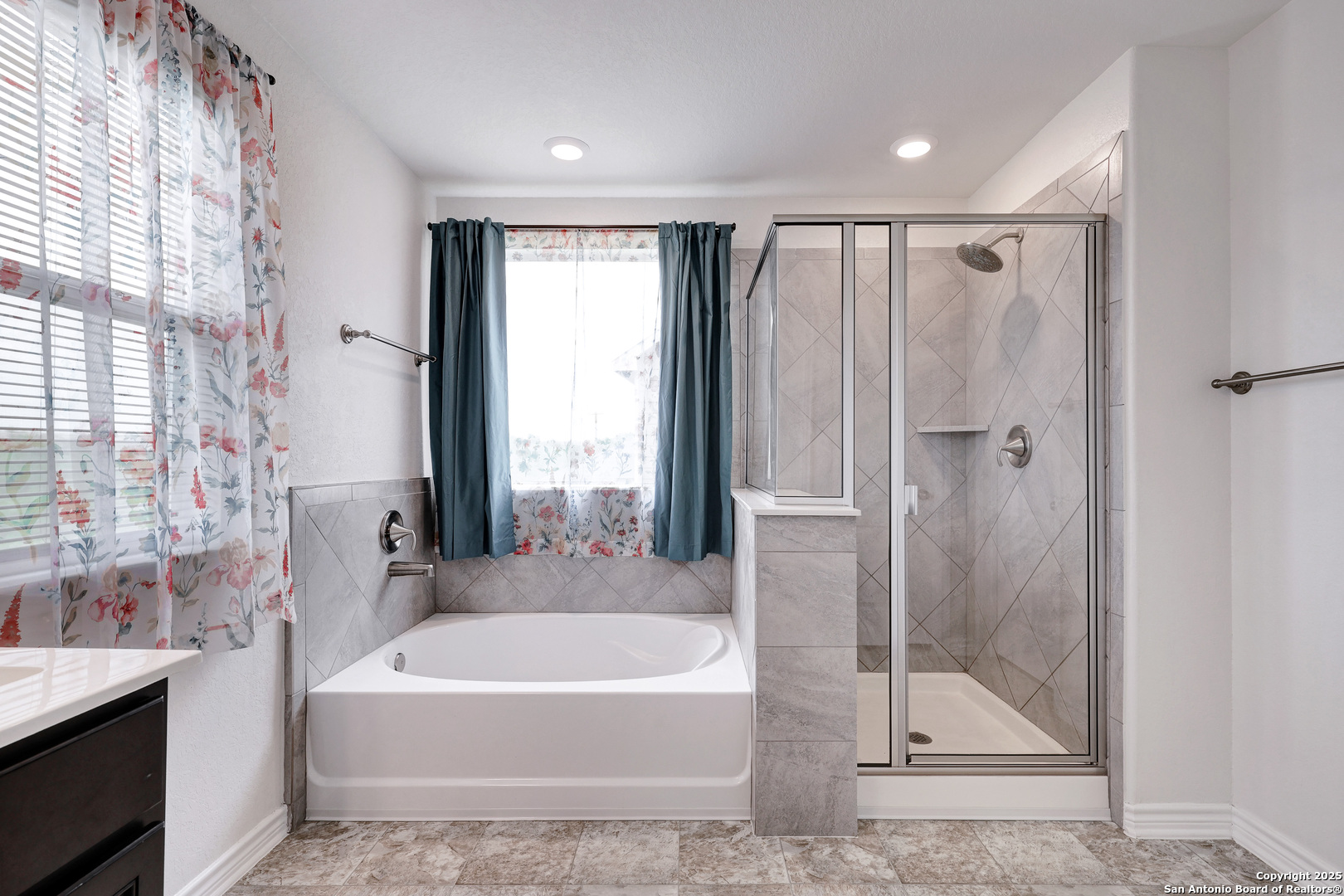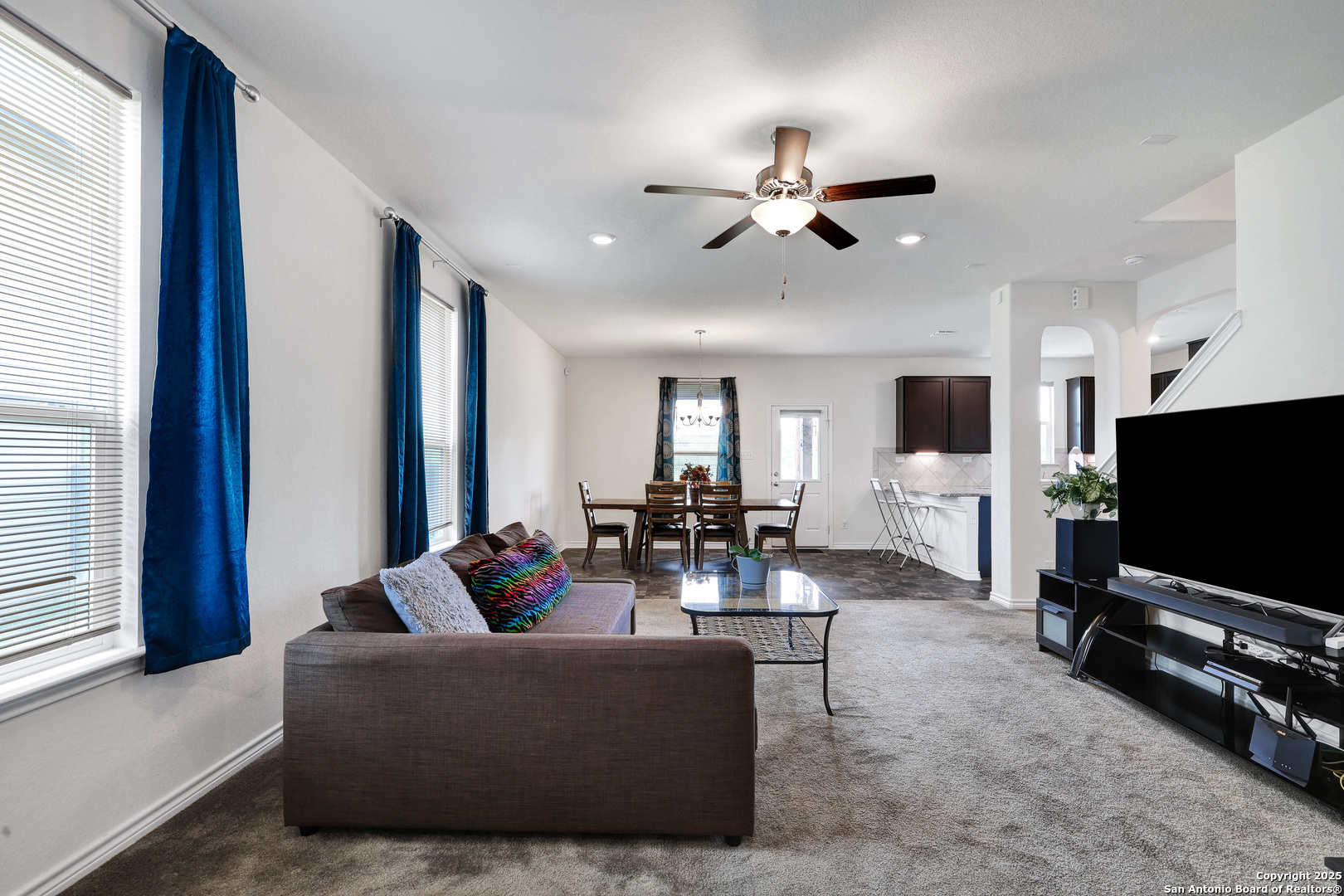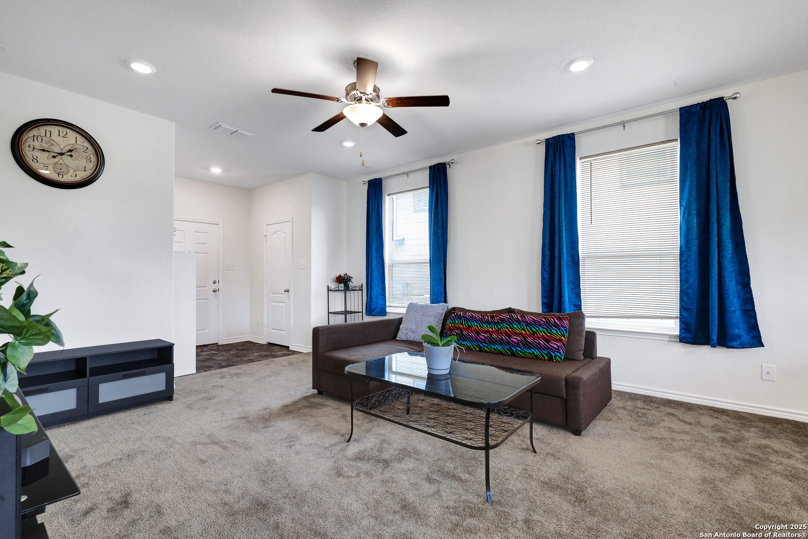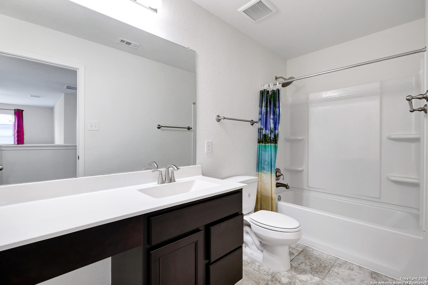 Spacious Home Backing to Greenbelt in Carmona Hills. Just minutes from I-10, Loop 1604, Lackland AFB, and major shopping, this beautiful 3-bedroom, 2.5-bath home offers over 2,000 sq. ft. of comfortable living space in the desirable Carmona Hills subdivision. Enjoy a private setting on a greenbelt lot and an open-concept layout with abundant natural light and a neutral color palette. The eat-in kitchen features rich brown cabinetry and stainless steel appliances, perfect for everyday living and entertaining. Almost new "high-end" Samsung Washer & Dryer included with home! Upstairs, you'll find a spacious game room and all three bedrooms. The primary suite includes a walk-in closet and a luxurious bath with a garden tub and separate shower. The nicely sized backyard is fully fenced for privacy-ideal for outdoor gatherings, play, or simply relaxing.