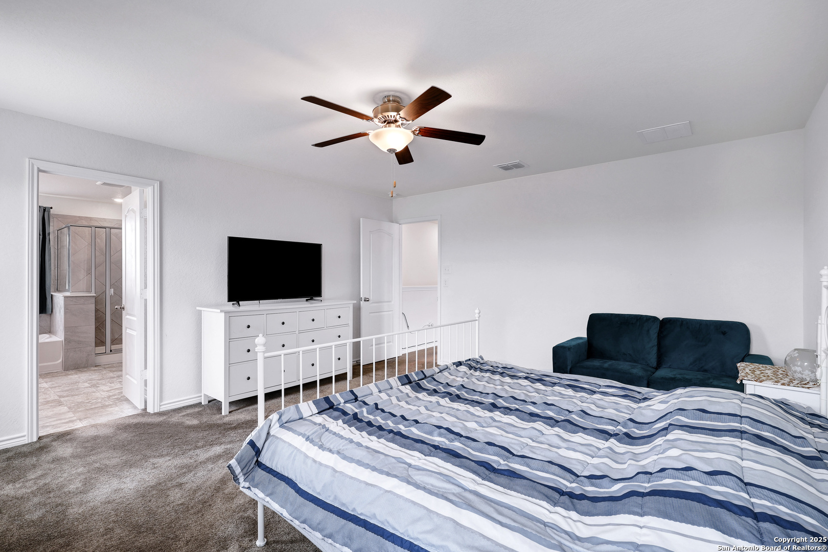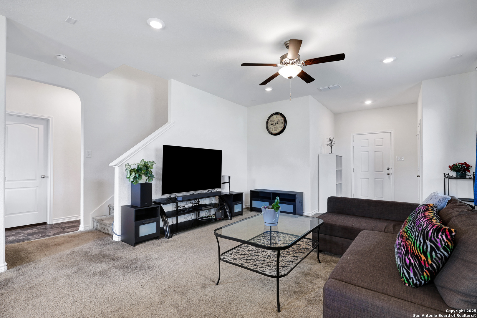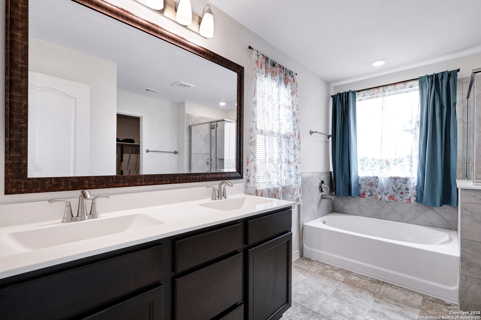 Spacious Home Backing to Greenbelt in Carmona Hills. Just minutes from I-10, Loop 1604, Lackland AFB, and major shopping, this beautiful 3-bedroom, 2.5-bath home offers over 2,000 sq. ft. of comfortable living space in the desirable Carmona Hills subdivision. Enjoy a private setting on a greenbelt lot and an open-concept layout with abundant natural light and a neutral color palette. The eat-in kitchen features rich brown cabinetry and stainless steel appliances, perfect for everyday living and entertaining. Almost new "high-end" Samsung Washer & Dryer included with home! Upstairs, you'll find a spacious game room and all three bedrooms. The primary suite includes a walk-in closet and a luxurious bath with a garden tub and separate shower. The nicely sized backyard is fully fenced for privacy-ideal for outdoor gatherings, play, or simply relaxing.