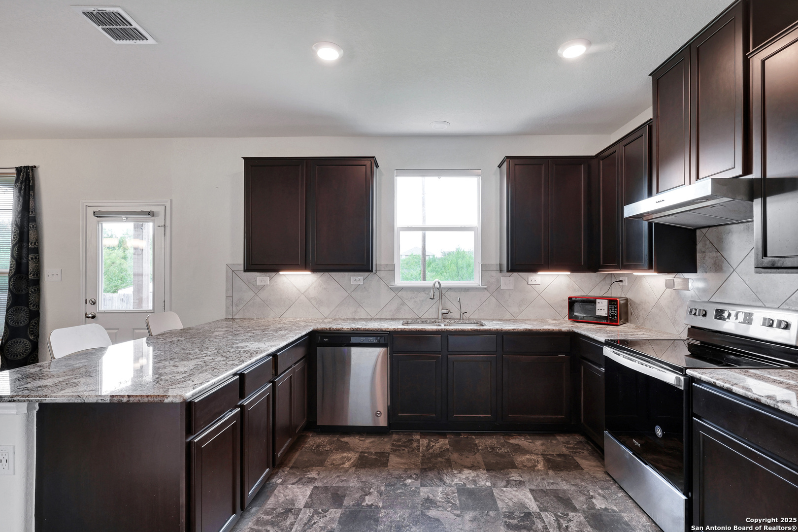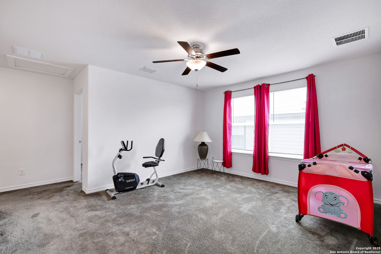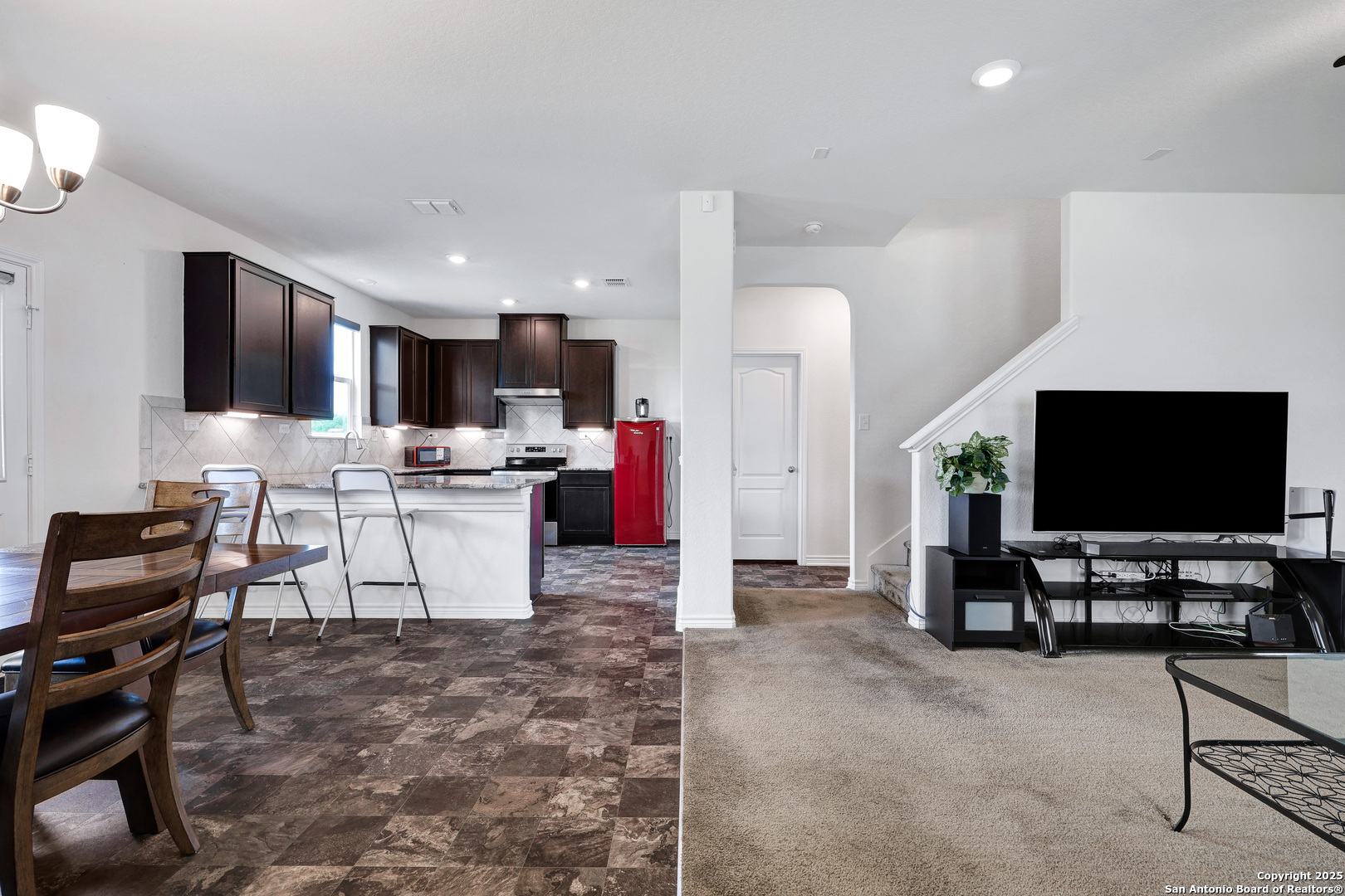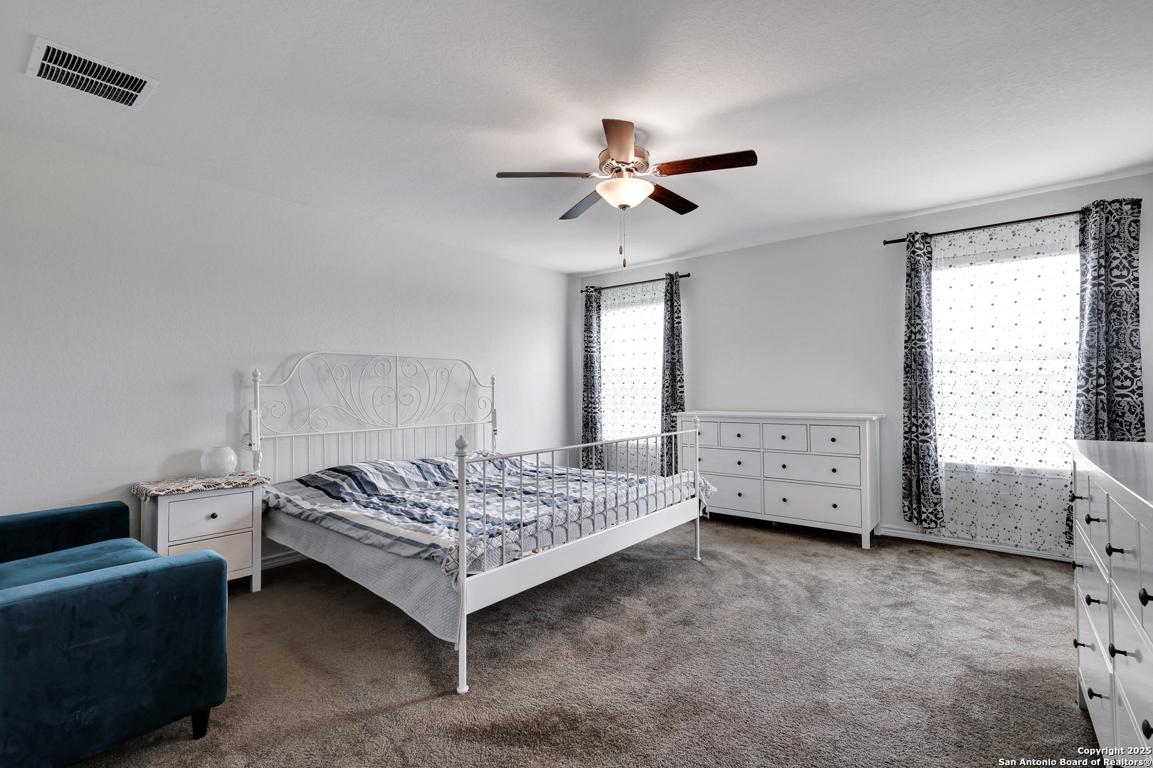 Spacious Home Backing to Greenbelt in Carmona Hills. Just minutes from I-10, Loop 1604, Lackland AFB, and major shopping, this beautiful 3-bedroom, 2.5-bath home offers over 2,000 sq. ft. of comfortable living space in the desirable Carmona Hills subdivision. Enjoy a private setting on a greenbelt lot and an open-concept layout with abundant natural light and a neutral color palette. The eat-in kitchen features rich brown cabinetry and stainless steel appliances, perfect for everyday living and entertaining. Almost new "high-end" Samsung Washer & Dryer included with home! Upstairs, you'll find a spacious game room and all three bedrooms. The primary suite includes a walk-in closet and a luxurious bath with a garden tub and separate shower. The nicely sized backyard is fully fenced for privacy-ideal for outdoor gatherings, play, or simply relaxing.