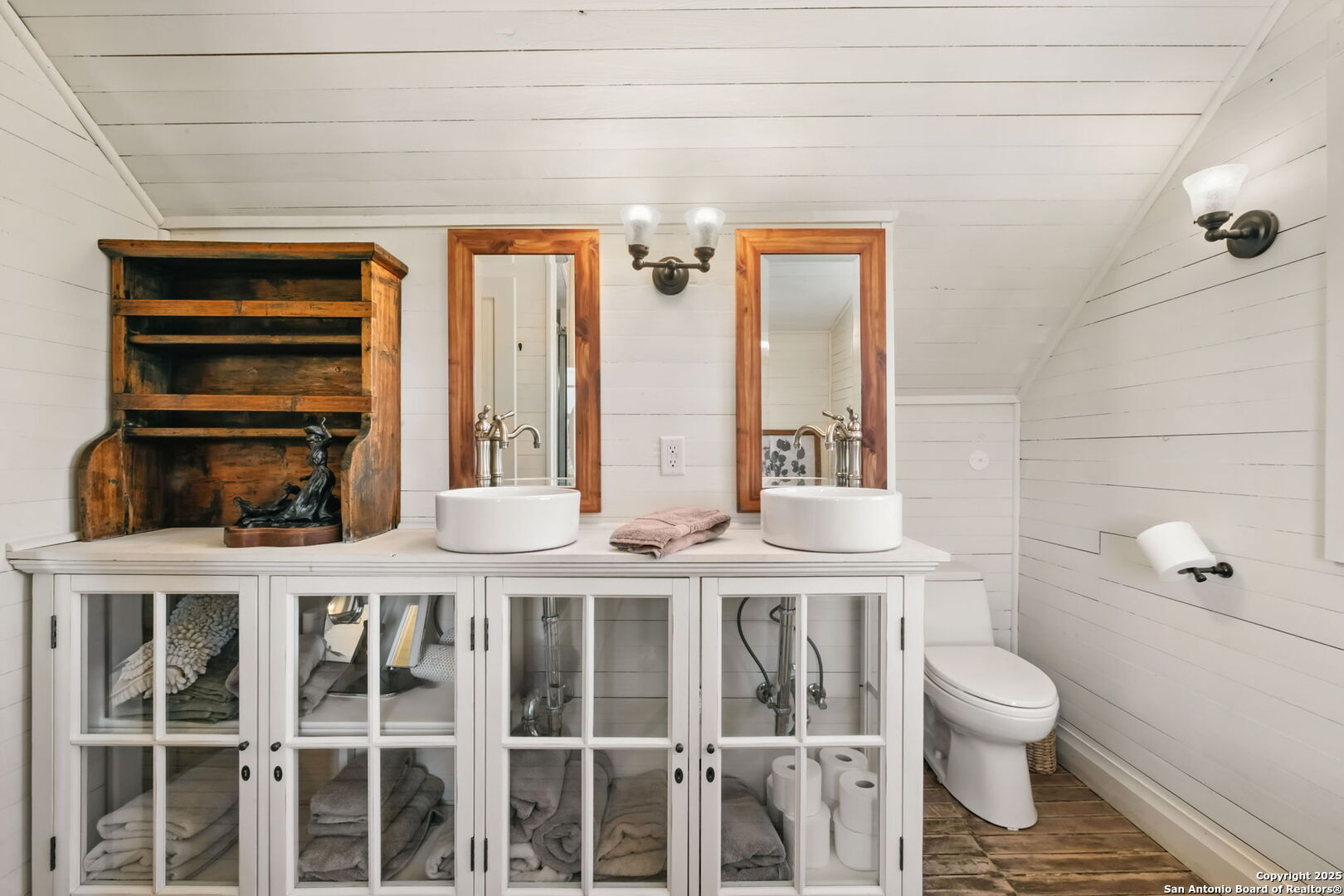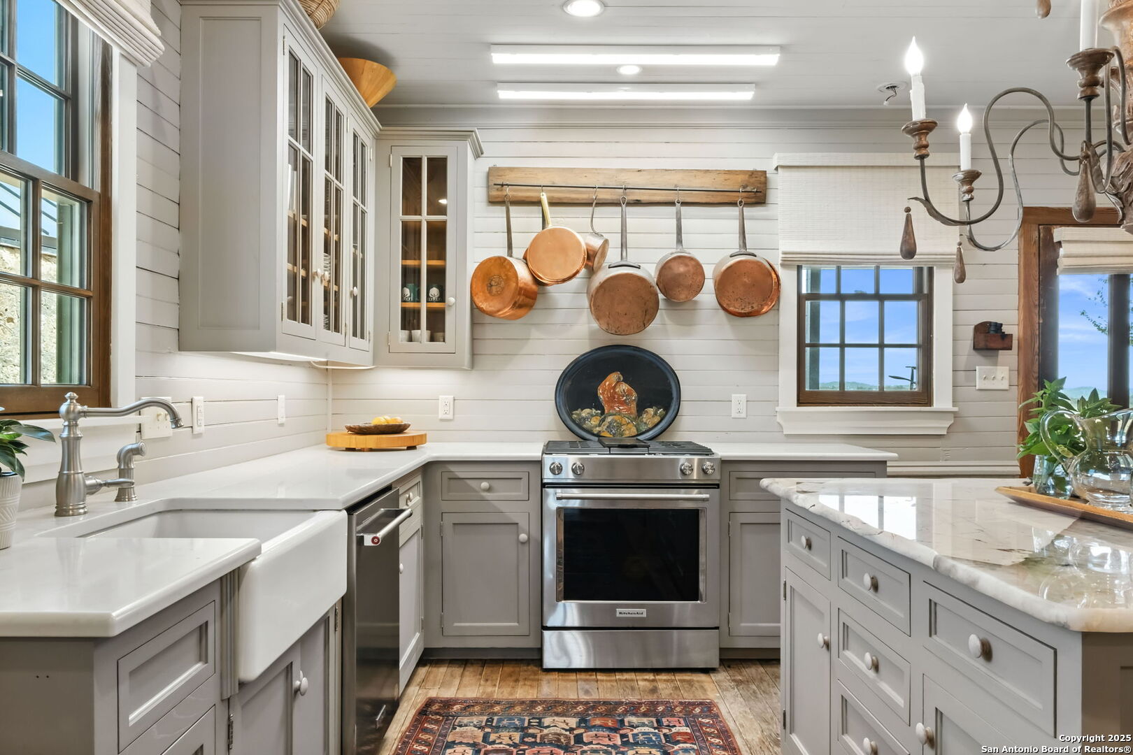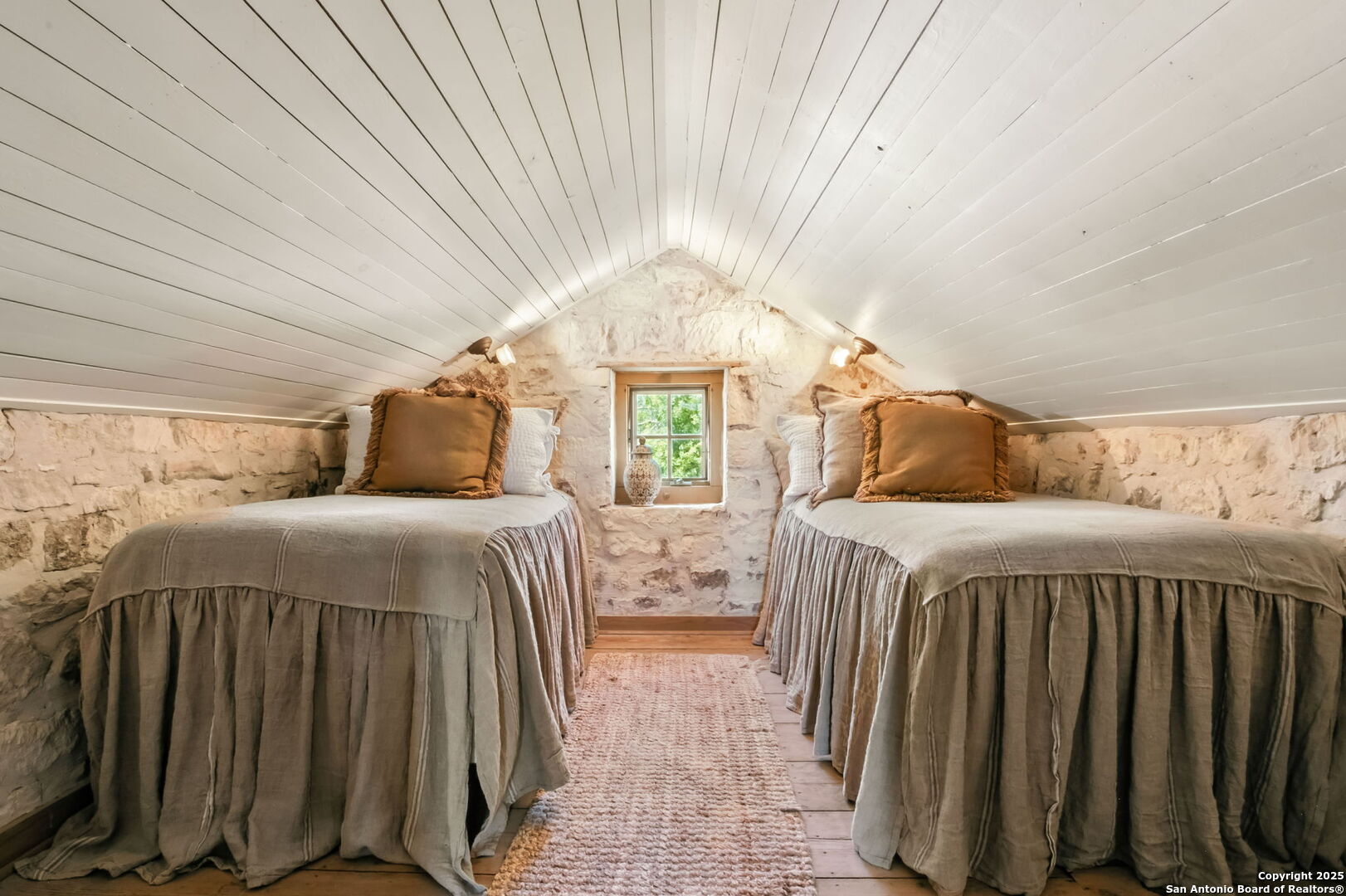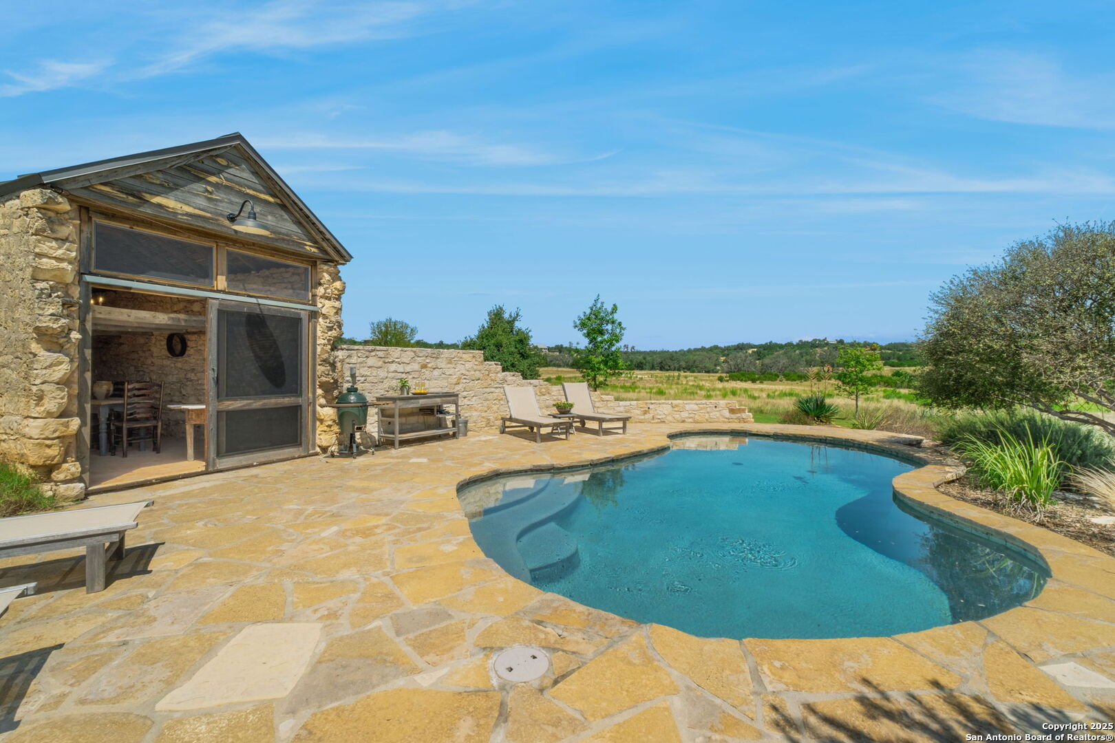 **OPEN SATURDAY 12-2** Step into a rare piece of Fredericksburg history, thoughtfully reimagined for modern living. Originally built in the 1890s by German settlers, this pioneer homestead at 716 Arbor Ridge showcases timeless masonry and authentic craftsmanship that honor its roots. The original stone barn still stands, now transformed into a screened garden room overlooking the sparkling pool, while the main limestone and wood-frame home has been meticulously expanded within the last three years by Eric Mustard Architects of Fredericksburg and M-Interiors of San Antonio. Today, it offers four bedrooms, three baths, and approximately 2,500 square feet of refined interiors, with original wood floors and stone walls beautifully preserved-adding warmth, character, and a tangible connection to the artisanship of a bygone era. Interior highlights include a modern chef's kitchen with custom cabinetry, stainless appliances, a gas range, and solid countertops. The vaulted primary suite retreat features a spa-like marble shower, whirlpool bath, and custom California Closet walk-in, complemented by a rich mahogany-paneled office. Authentic farmhouse living and dining areas with a fireplace and shiplap walls provide inviting gathering spaces, while an old root cellar has been converted into an extraordinary wine room. From hand-hewn stone walls to soaring ceilings and screened porches, every corner of the home seamlessly balances old-world character with modern luxury. Set on 25 rolling acres in the heart of Texas Hill Country, this retreat is as much about lifestyle as it is about architecture. Outdoor amenities include a sparkling pool, expansive flagstone patios, a rock fire pit, multiple screened porches, and a deer-proof garden with raised beds-all enhanced by landscape design from Oro Design Group of Austin. The grounds are further distinguished by two lined and aerated ponds stocked with bait fish, two water wells (including the original hand-dug limestone well), wildlife feeders, and an iconic windmill. A detached two-car garage with additional storage pairs with an oversized carport designed to house a Prevost bus, RV, or ranch vehicles, while concrete bunkers with a workshop area and a Generac generator provide added security. With its blend of historic integrity, thoughtful design, and rare acreage just minutes from Fredericksburg, this estate offers an extraordinary opportunity to own a piece of Texas heritage while enjoying the finest comforts of today.