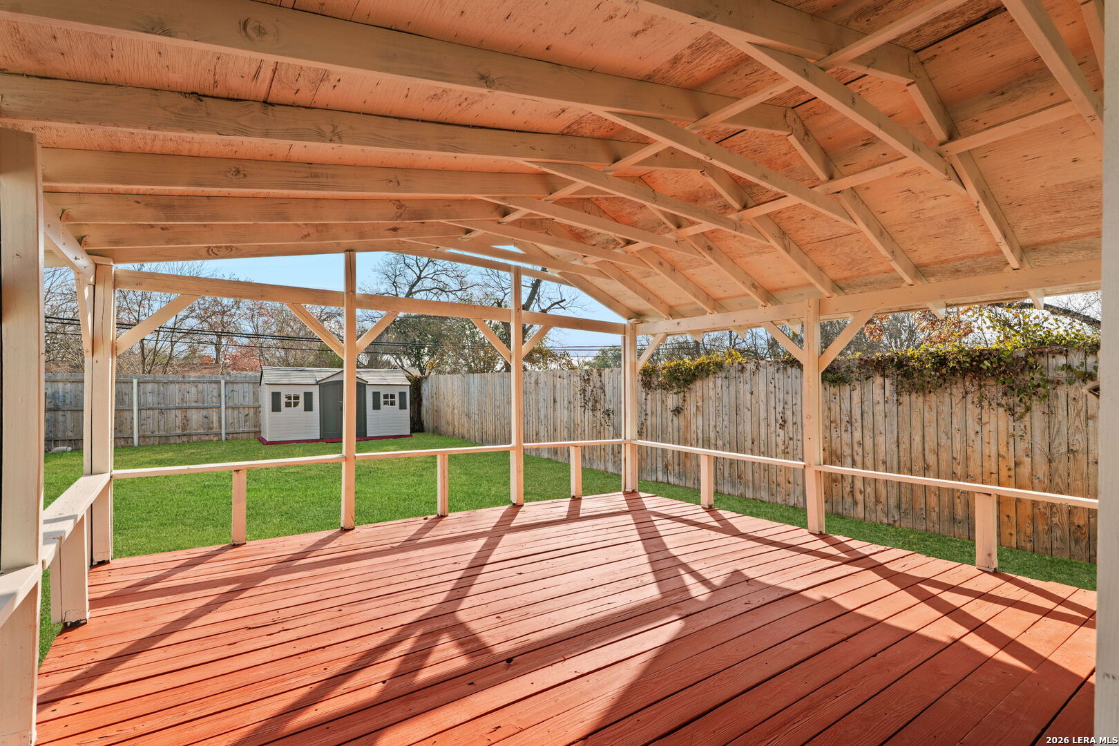 Welcome to this charming three-bedroom, two-bathroom home that perfectly blends comfort with convenience in Donaldson Terrace. This gem offers an inviting open floor plan that creates a wonderful flow for everyday living and entertaining. Step inside and discover beautiful wood laminate flooring that extends throughout the home, complemented by fresh paint that gives every room a clean, move-in-ready feel. Windows throughout flood the interior with natural light, creating a warm and welcoming atmosphere you'll love coming home to. The kitchen features gas cooking, a must-have for those who take their culinary adventures seriously. Whether you're whipping up a quick weeknight dinner or experimenting with a new recipe, you'll appreciate this feature. Outside, your personal retreat awaits. The oversized covered wooden deck is perfect for morning coffee, evening gatherings, or simply enjoying the Texas breeze. The backyard also includes a convenient storage shed, providing that extra space needed. Location truly shines here. You'll find yourself minutes from Woodlawn Lake Park, where weekend strolls and outdoor activities await. Thomas Jefferson High School sits nearby, and grocery shopping is a breeze with Culebra Super Meat Market just a short drive away. Quick access to major highways makes commuting to downtown and the medical center remarkably simple. With over eleven hundred square feet of comfortable living space, this home offers the ideal combination of charm, functionality, and prime location. **Pets allowed upon approval** Schedule your showing today and see why this could be your next home!