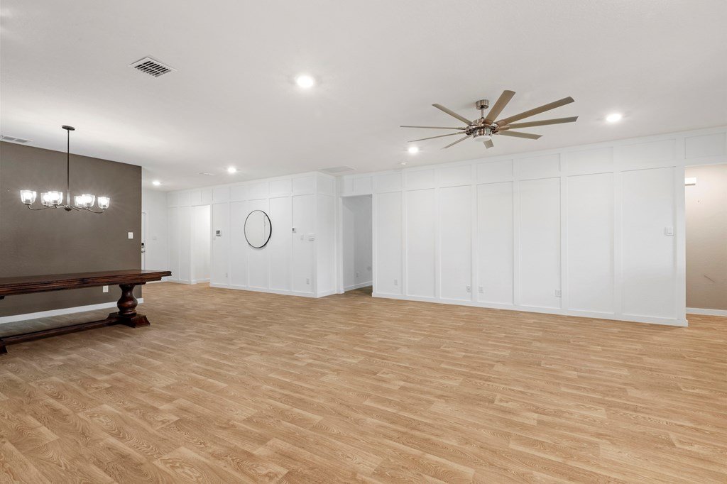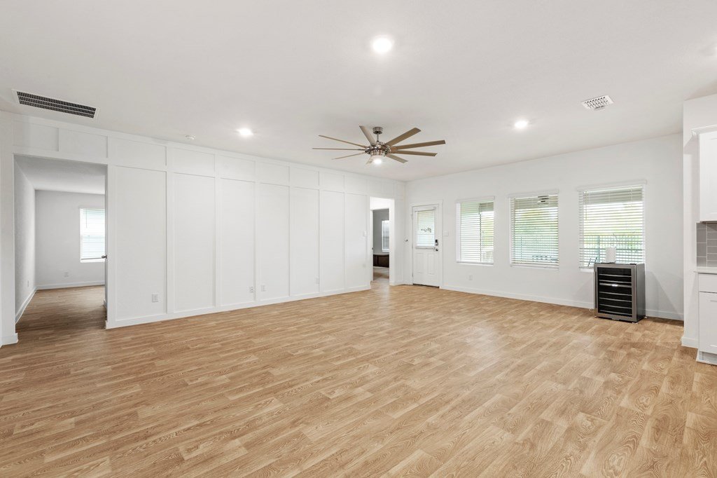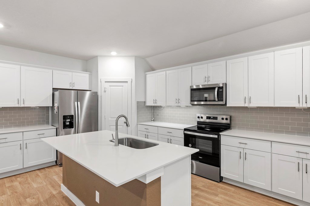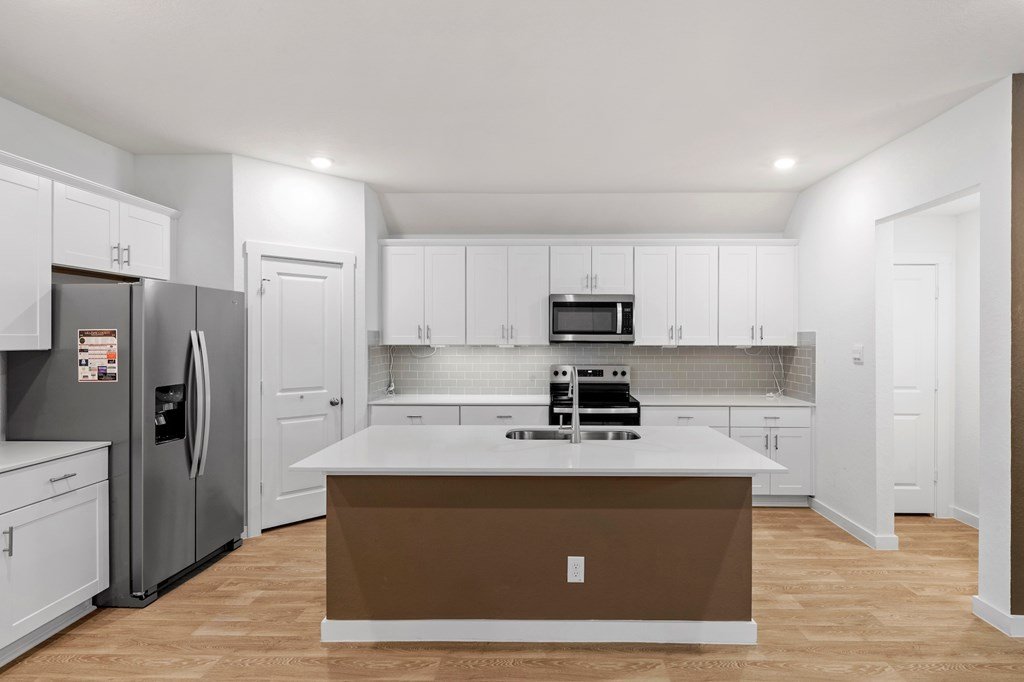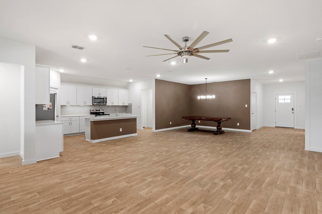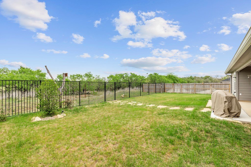 Experience refined living in this stunning 2024-built home offering 2,594 square feet of thoughtfully designed space, blending modern style with everyday functionality. From the moment you arrive, the spacious three-car garage and clean architectural lines set the tone for the quality and attention to detail found throughout. Inside, you'll find an open and inviting floor plan enhanced by durable and stylish luxury vinyl plank (LVP) flooring that flows seamlessly through the main living areas. The heart of the home features a bright and airy living space that connects effortlessly to the kitchen and dining areas, creating the perfect environment for both entertaining and daily living. The home showcases numerous upgrades that elevate it beyond standard new construction, including enhanced electrical features to support modern living needs, designer paint selections, and custom wall treatments that add depth, texture, and personality to each space. Every detail has been carefully considered to create a polished yet comfortable atmosphere. Step outside to enjoy the oversized east-facing patio, ideal for relaxing mornings with coffee or shaded afternoon gatherings. The backyard offers privacy with full fencing and backs to a serene greenbelt, providing peaceful views and an added sense of space with no immediate rear neighbors. This outdoor setting is perfect for entertaining, gardening, or simply unwinding while enjoying the natural surroundings. The well-proportioned layout includes spacious bedrooms and flexible living areas designed to accommodate a variety of lifestyles, whether you need a home office, media room, or additional guest space. Natural light fills the home, enhancing the clean lines and contemporary finishes throughout. Combining modern construction, premium upgrades, and a desirable setting, this home delivers both style and substance. With its blend of indoor comfort and outdoor appeal, it offers a rare opportunity to enjoy almost new construction living with added character and thoughtful enhancements already in place.
