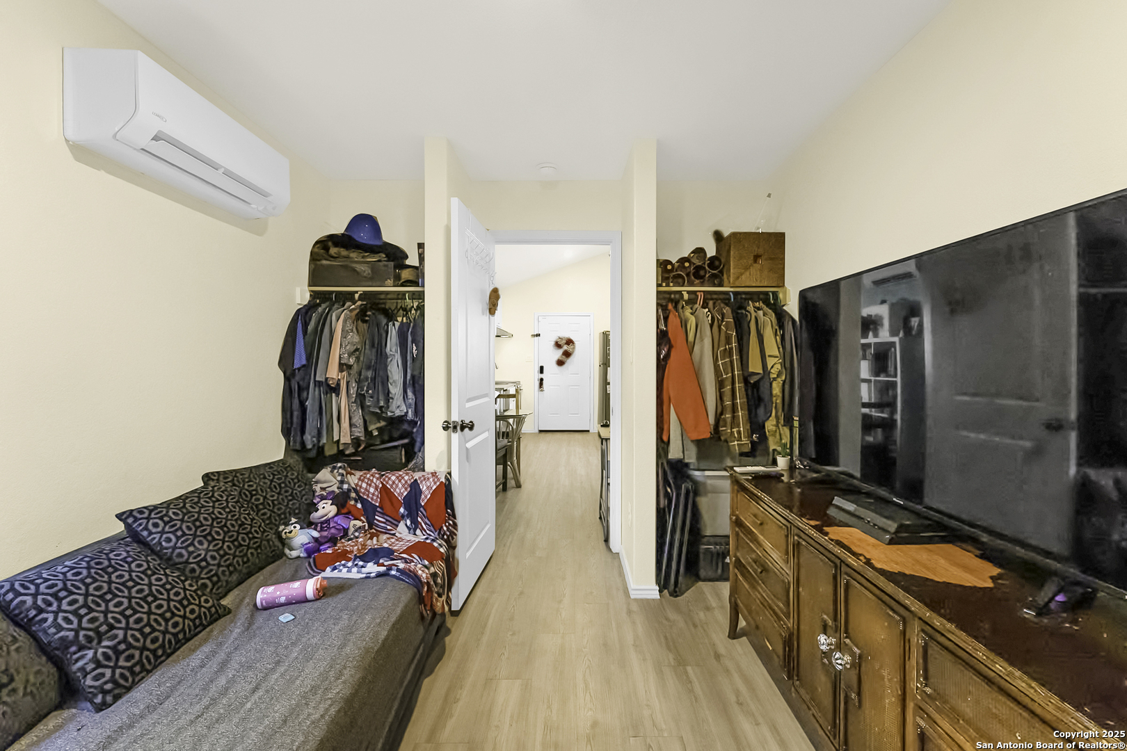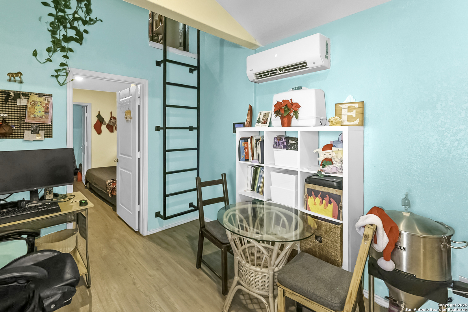 This thoughtfully designed 350 sq ft tiny home offers comfortable and efficient living in a compact footprint. The home features one bedroom and one full bathroom, along with a functional kitchen equipped for everyday cooking. A cozy loft provides additional sleeping or storage space and is accessed by a sturdy ladder, maximizing usable floor area below. With smart layout choices and abundant natural light, this tiny home is ideal for minimalist living in a neighborhood setting.