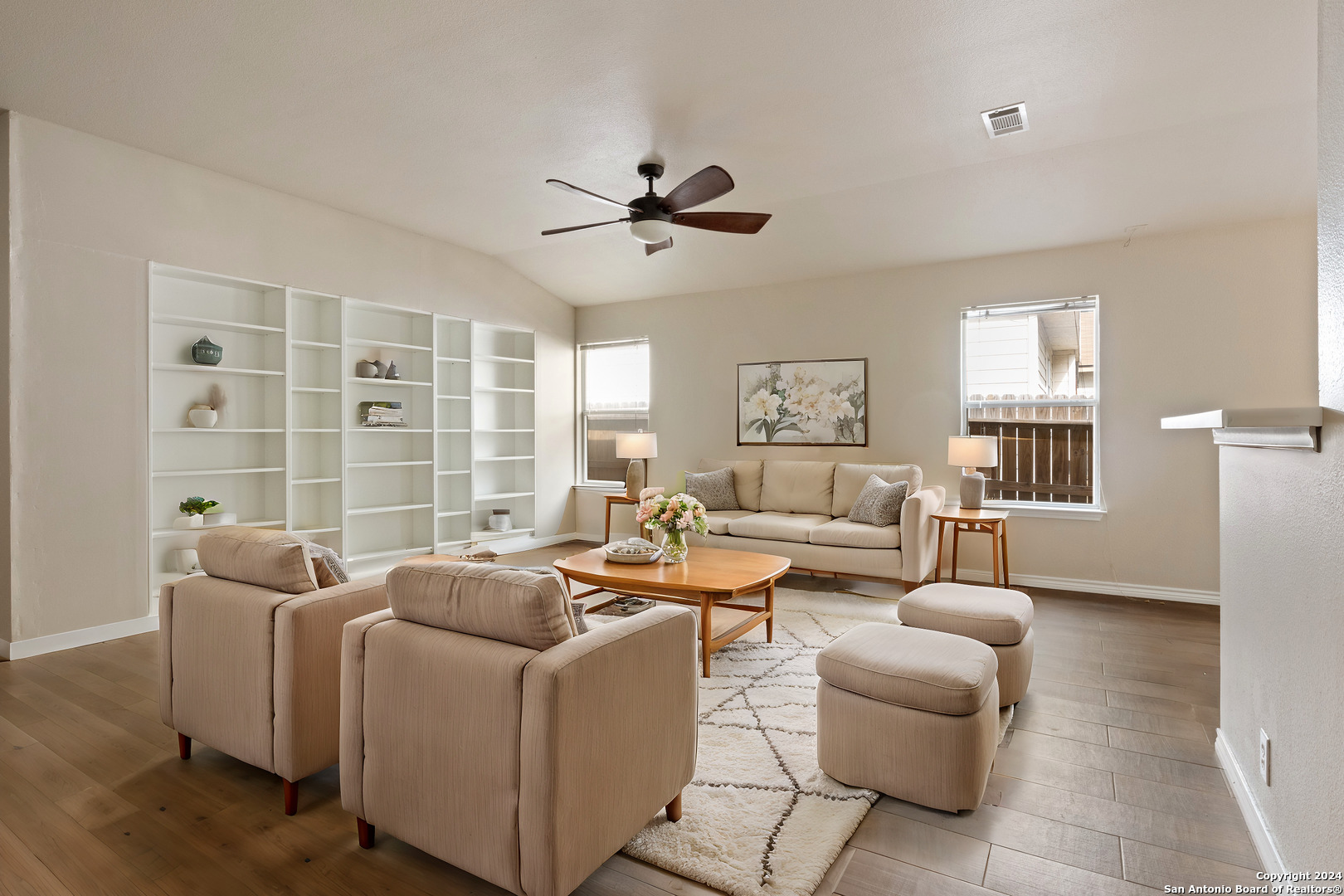 Welcome to this charming home where comfort and style seamlessly come together in a beautifully designed open floor plan. As you step inside, you're greeted by an abundance of natural light flowing through the spacious living area, featuring custom built-in shelving-perfect for showcasing your favorite decor, books, or treasured collections. The heart of the home is the newly refreshed kitchen, which boasts ample counter space, sleek modern cabinetry, and updated appliances, making it an entertainer's dream for hosting gatherings or simply enjoying everyday meals. The generously sized primary bedroom offers a private retreat with an en-suite bathroom and a spacious closet, providing a peaceful escape at the end of the day. The additional bedrooms are well-sized, perfect for guests, a growing family, or a cozy home office. Outside, the expansive backyard invites you to unwind on the oversized covered patio, ideal for al fresco dining or weekend barbecues under the shade. Nestled in a tranquil neighborhood, this home not only offers peace and privacy but also convenient access to local shopping, dining, and major highways, making everyday errands a breeze. With its perfect blend of style, function, and location, this home truly stands out as a must-see!
