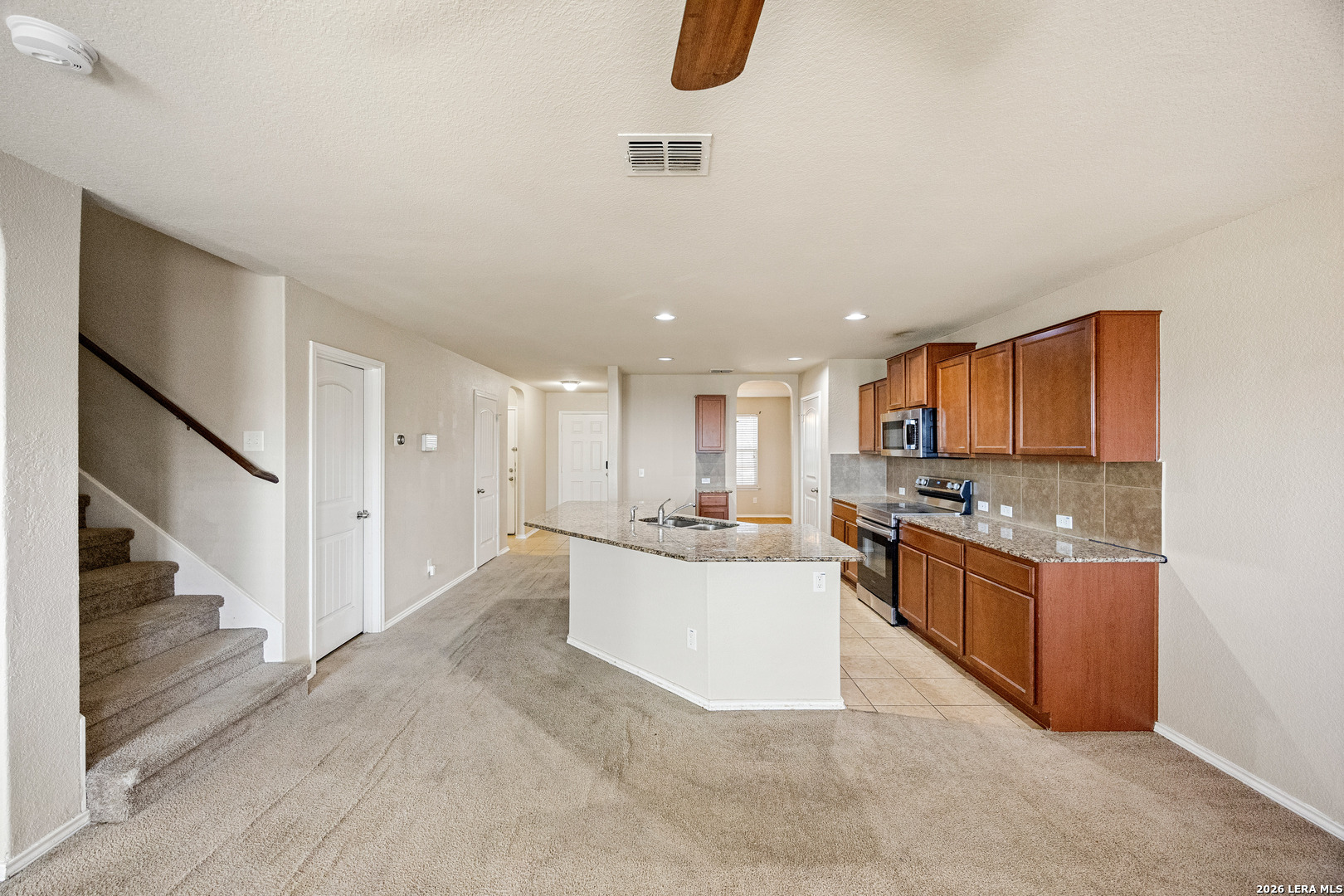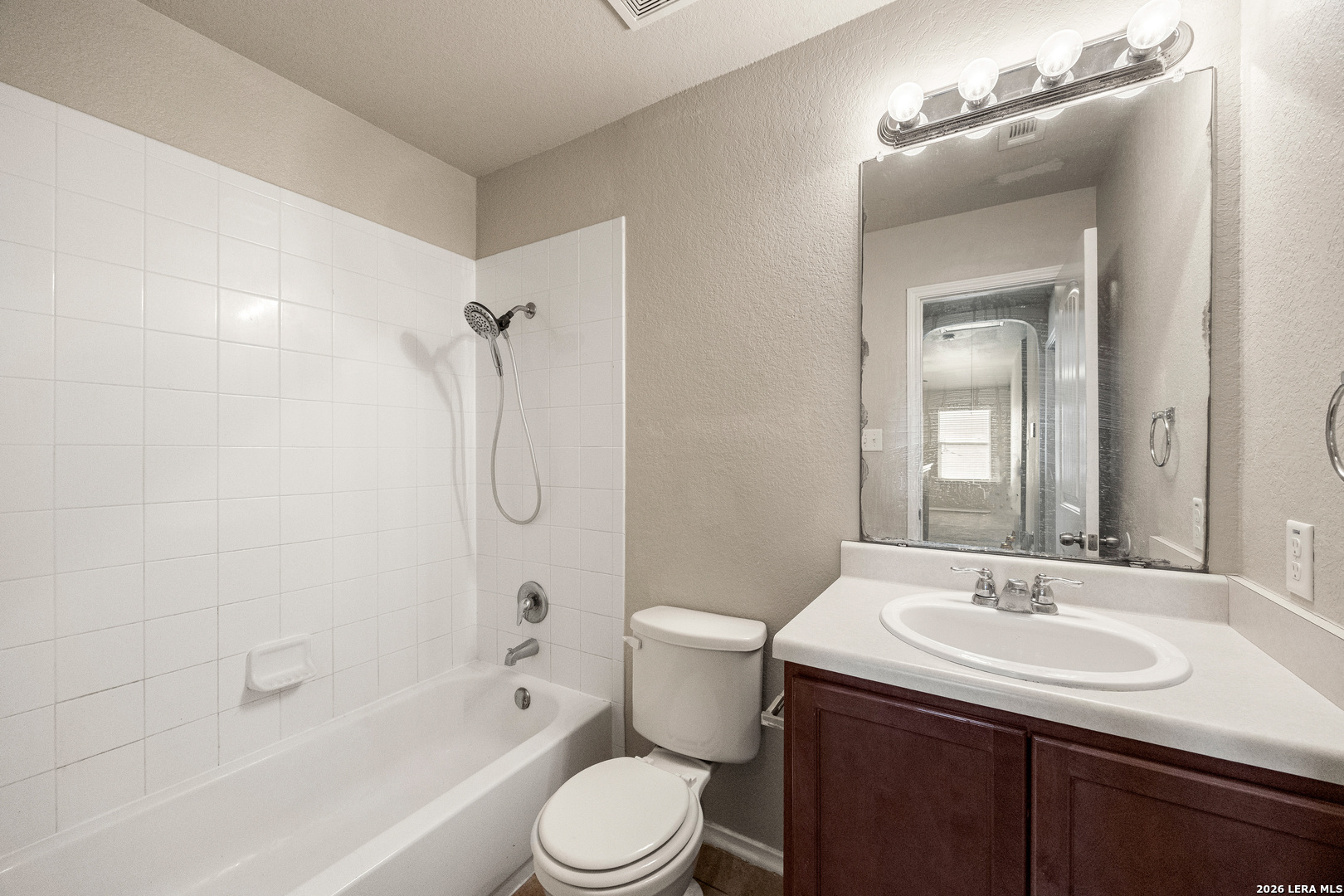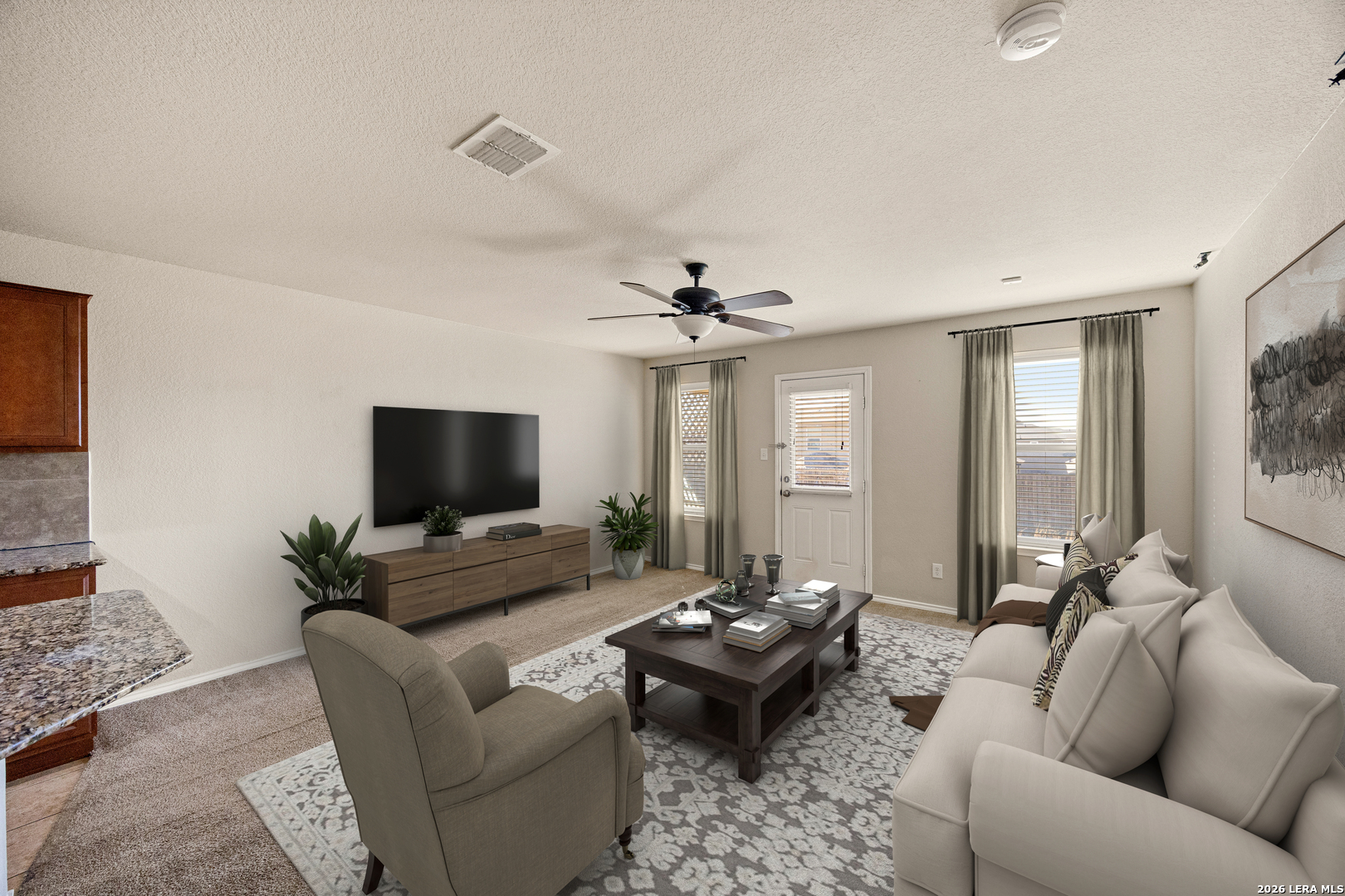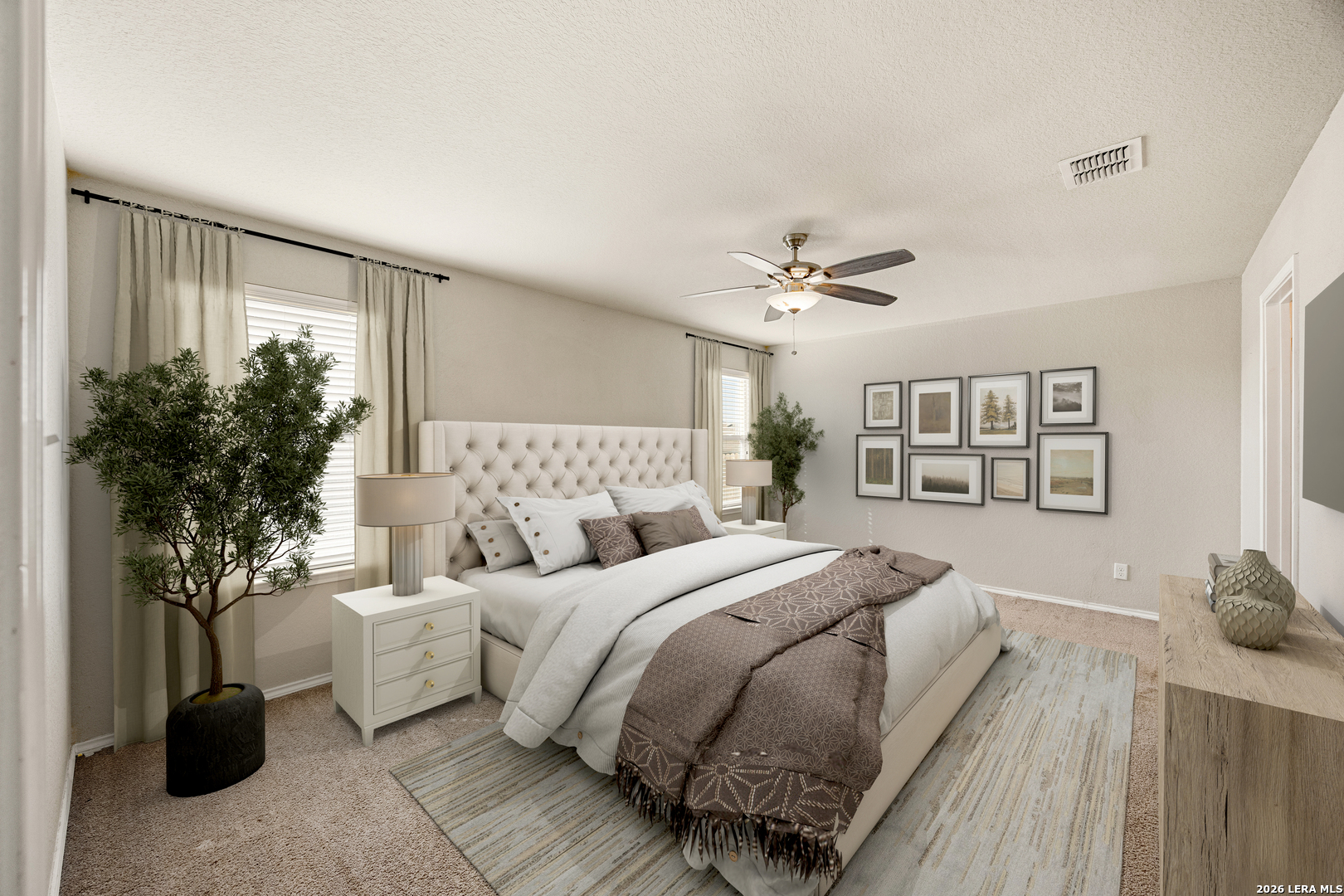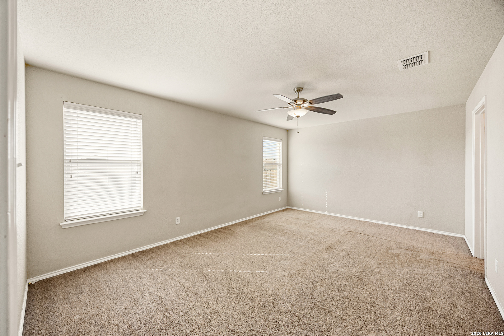 Beautiful 2-story home in the friendly community of Solana Ridge, offering a comfortable layout and move-in ready condition. This home features 5 bedrooms and 3.5 baths with a light, open floor plan that feels bright and practical for everyday living. The main living area includes a welcoming living room with outside access, creating a natural flow to the backyard. A separate dining room adds flexibility and can easily serve as an additional living space, home office, or den. The open island kitchen is designed for daily use with a breakfast bar, walk-in pantry, and plenty of room for cooking and gathering. The first-floor primary suite provides privacy and convenience, featuring an ensuite bath with a tub, walk-in shower, double vanity, and a large walk-in closet. Upstairs, you'll find a spacious game room or second living area, along with well-sized secondary bedrooms that offer plenty of room for family, guests, or hobbies. Out back, enjoy a covered patio, a generous yard, and a privacy fence-perfect for relaxing, playtime, or weekend get-togethers. Conveniently located near parks, shopping, and easy access to I-410, this home offers comfort, space, and a great location. Book your personal tour today!