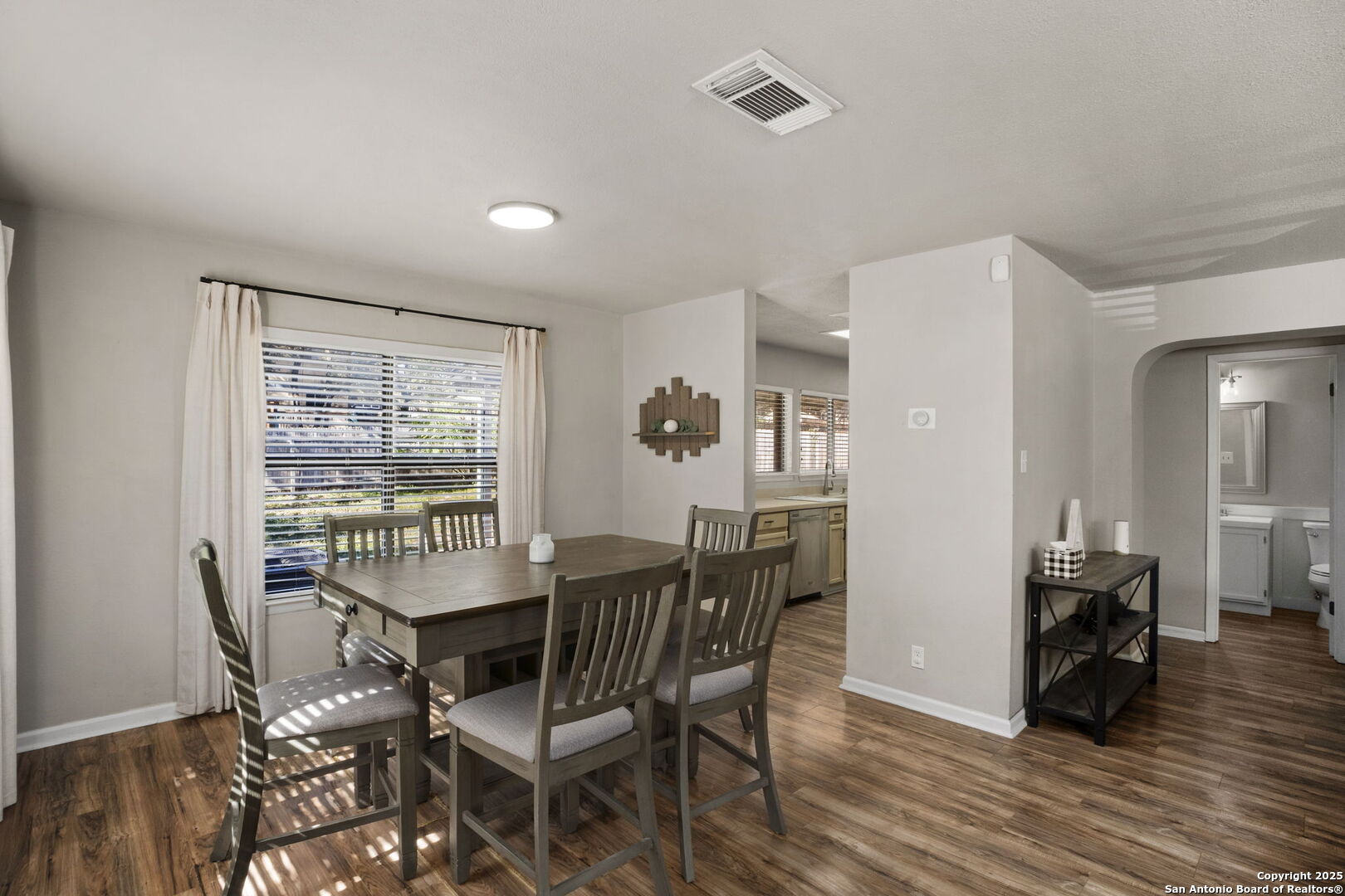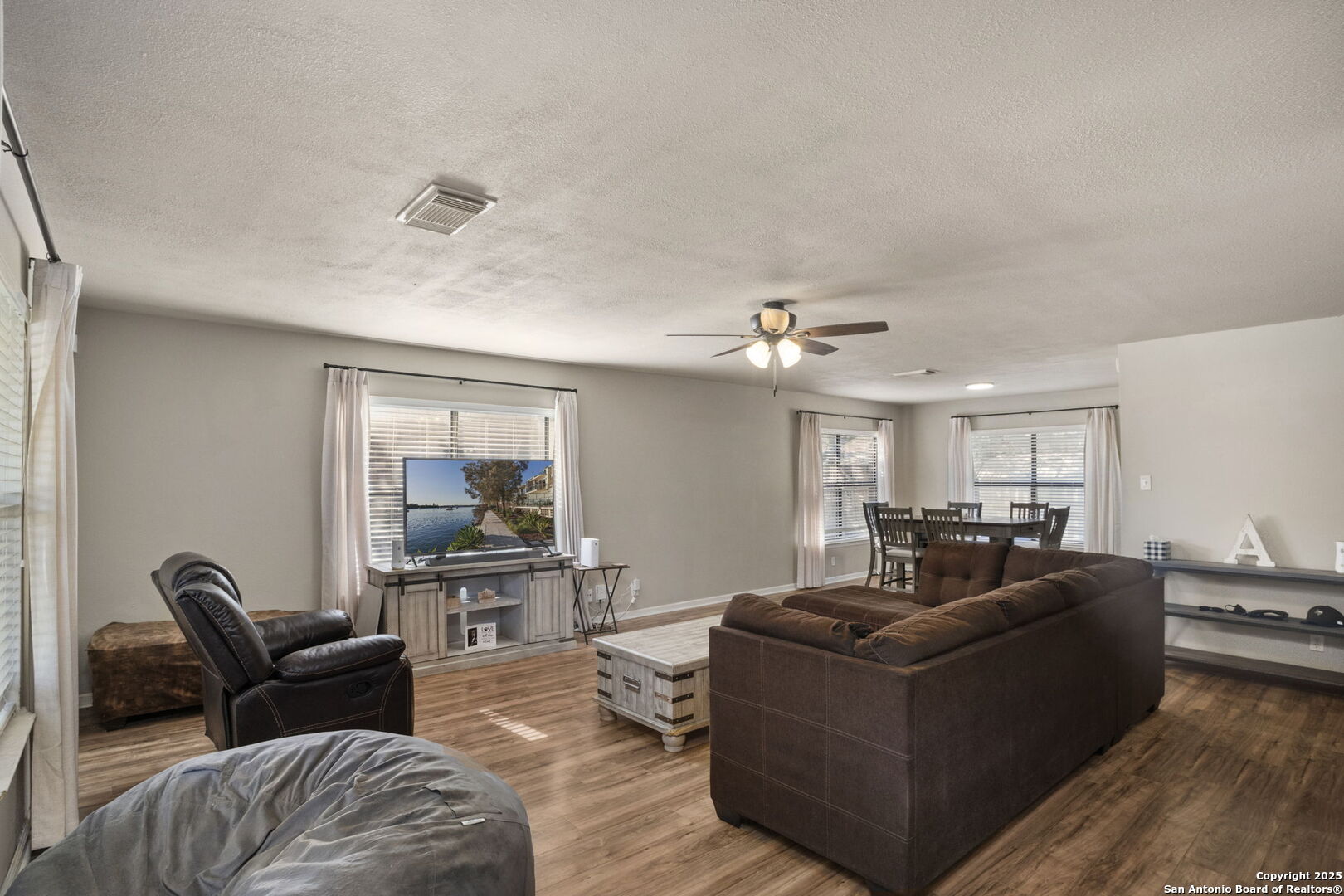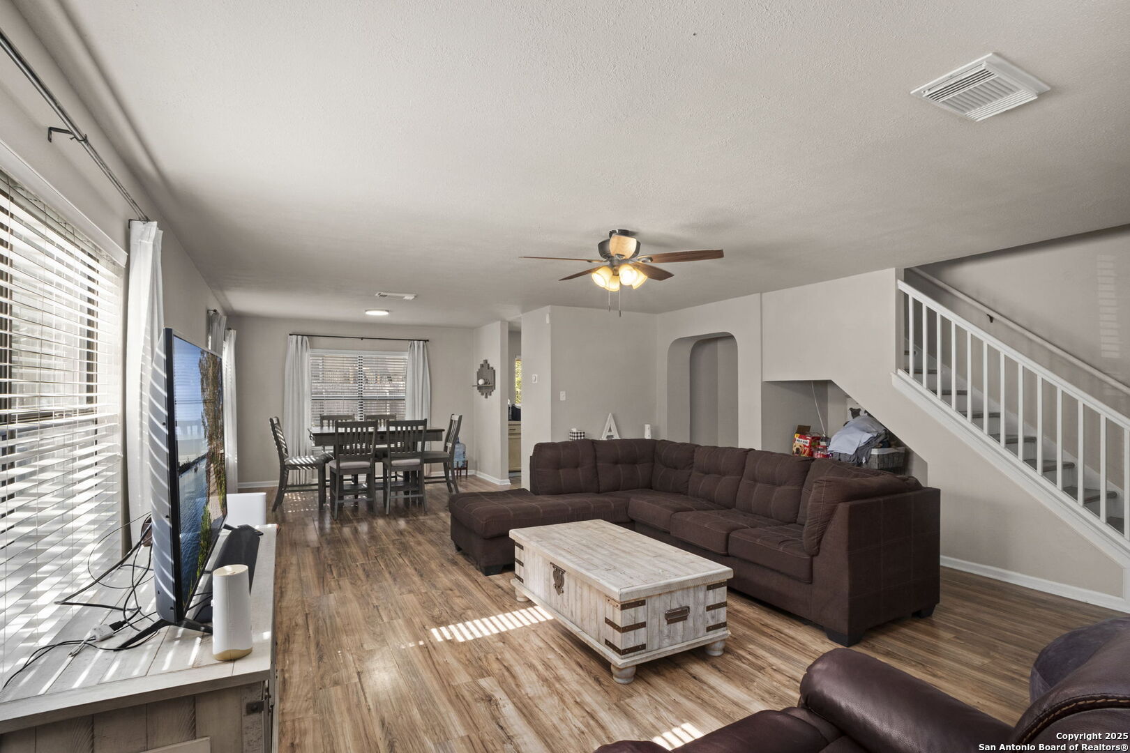 Step into this beautiful well maintained home with solid surface flooring and ceramic tile throughout home. Large family and dining area is perfect for entertaining. The welcoming covered back patio is the perfect place for outdoor barbecues. The large backyard has mature trees and shade with plenty of room for pets and or outdoor actives. Spacious primary bedroom with huge restroom and walk in closets. This home is a must see.