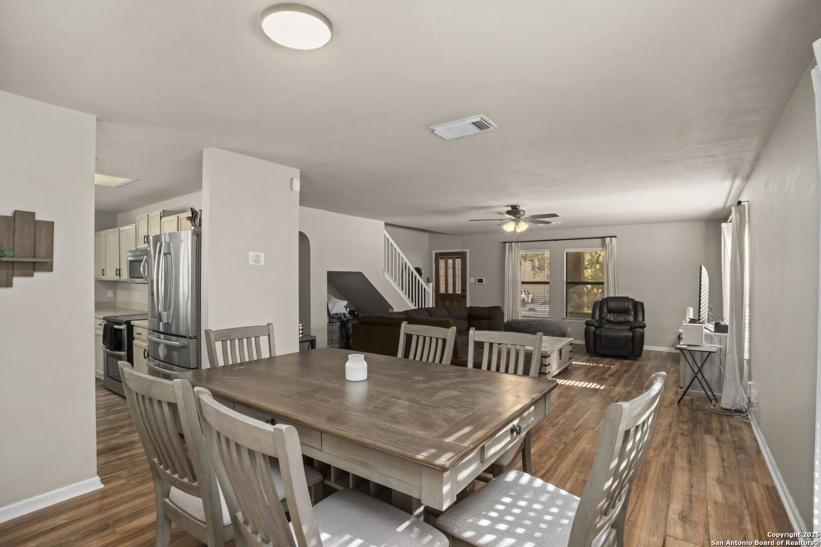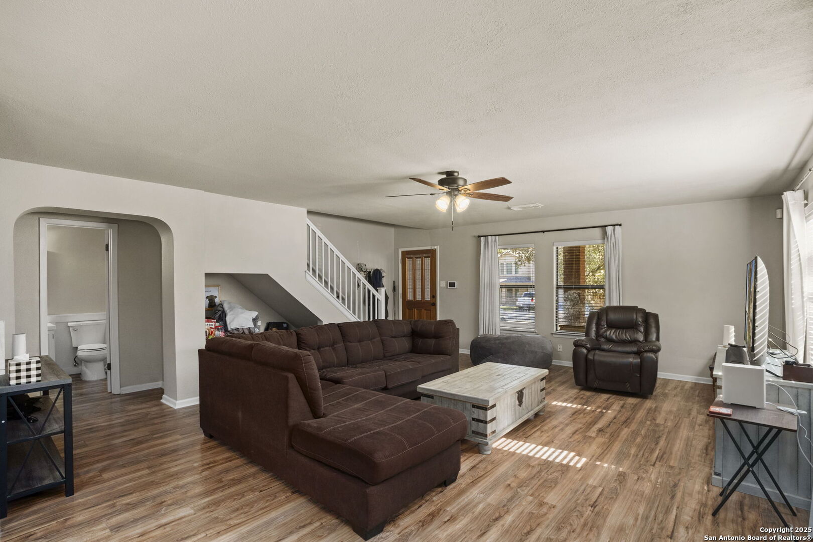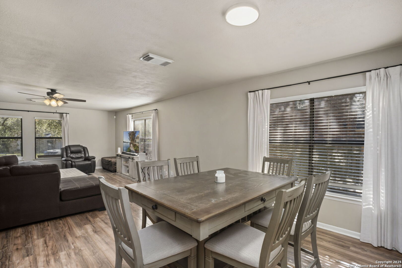 Step into this beautiful well maintained home with solid surface flooring and ceramic tile throughout home. Large family and dining area is perfect for entertaining. The welcoming covered back patio is the perfect place for outdoor barbecues. The large backyard has mature trees and shade with plenty of room for pets and or outdoor actives. Spacious primary bedroom with huge restroom and walk in closets. This home is a must see.