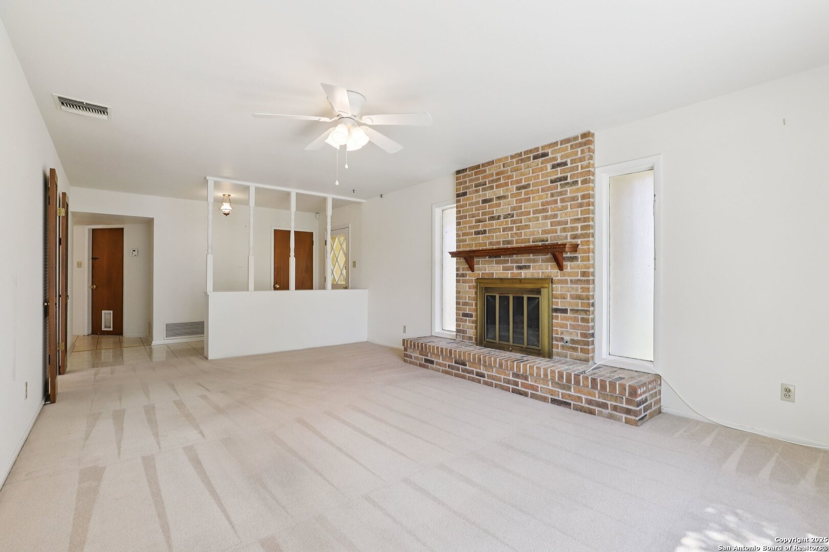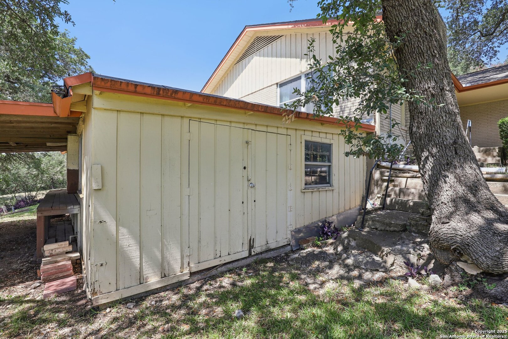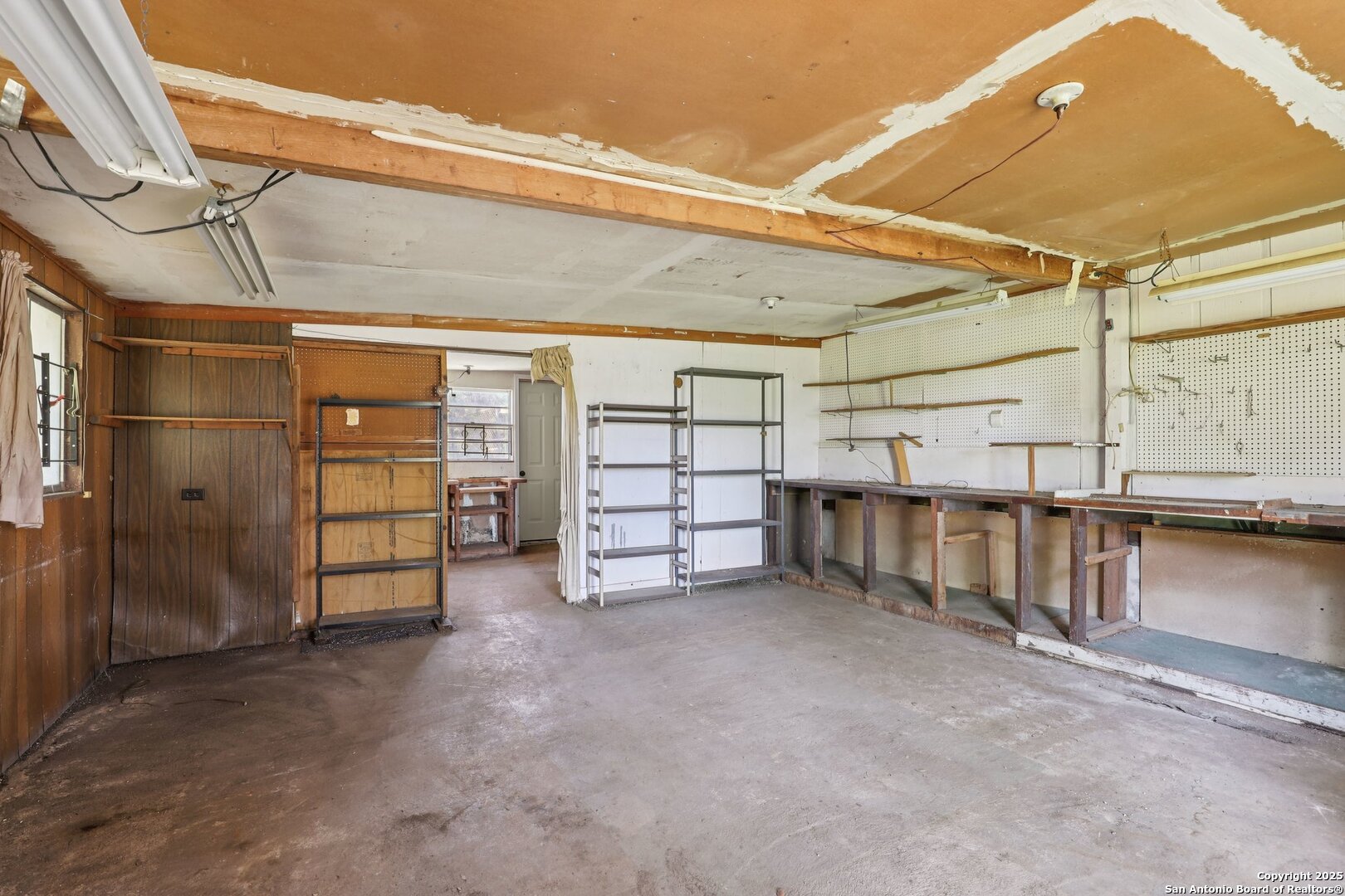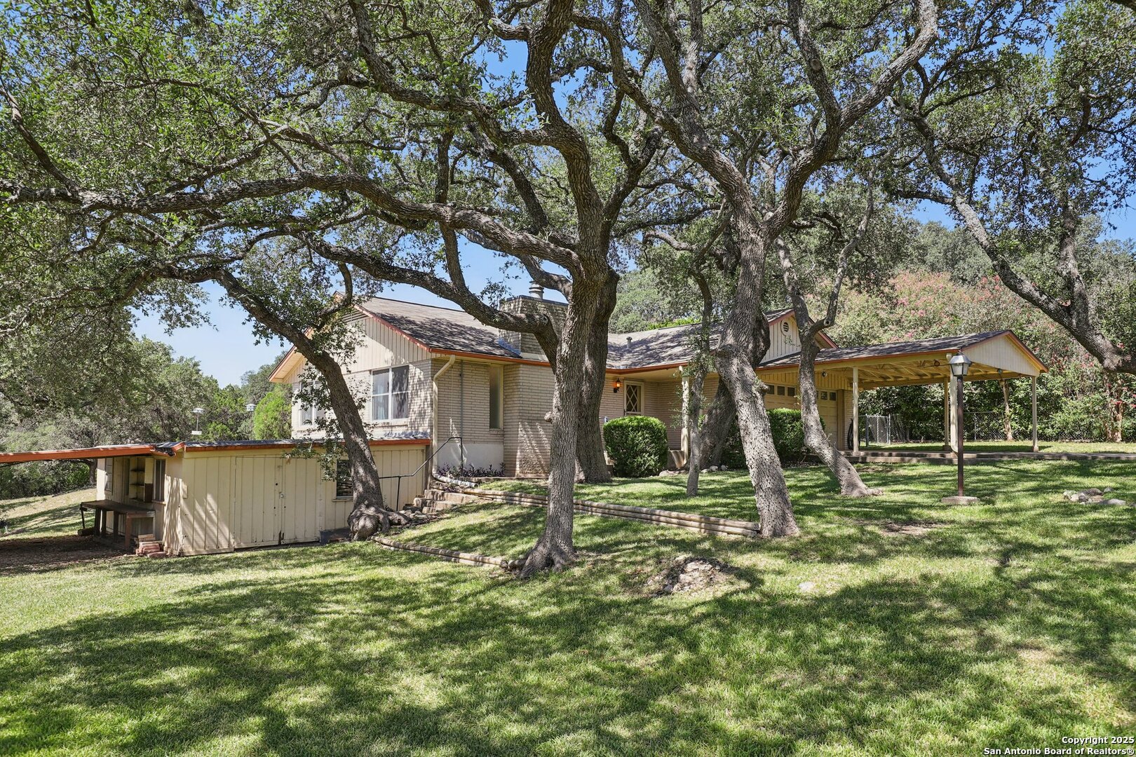 Discover this incredible .86-acre property in the highly sought-after Hills and Dales community. This single-story ranch-style home is a true gem, ready for its next chapter. Step inside to find two inviting living areas-one cozy with a wood-burning fireplace and updated double-pane windows that flood the space with natural light. The second living area, with its durable laminate flooring, offers flexible space perfect for a large dining room or den. The spacious kitchen provides ample storage with a convenient added buffet, making meal prep a breeze. All four bedrooms are generously sized with ceiling fans and good closet space, including a private primary suite with two closets and an en-suite bathroom. Outside, relax on the long covered porch and enjoy the serene, private acreage. The property is fully fenced, with an additional chain-link fence perfect for a small yard or pet area. This home is an outdoor enthusiast's dream, featuring a two-car garage, a two-car carport, and a large workshop with electricity and water. Enjoy the feel of the Texas Hill Country with the convenience of city living. Located just minutes from I-10, Loop 1604, The RIM, La Cantera, UTSA, and major employers like Valero Energy and USAA.