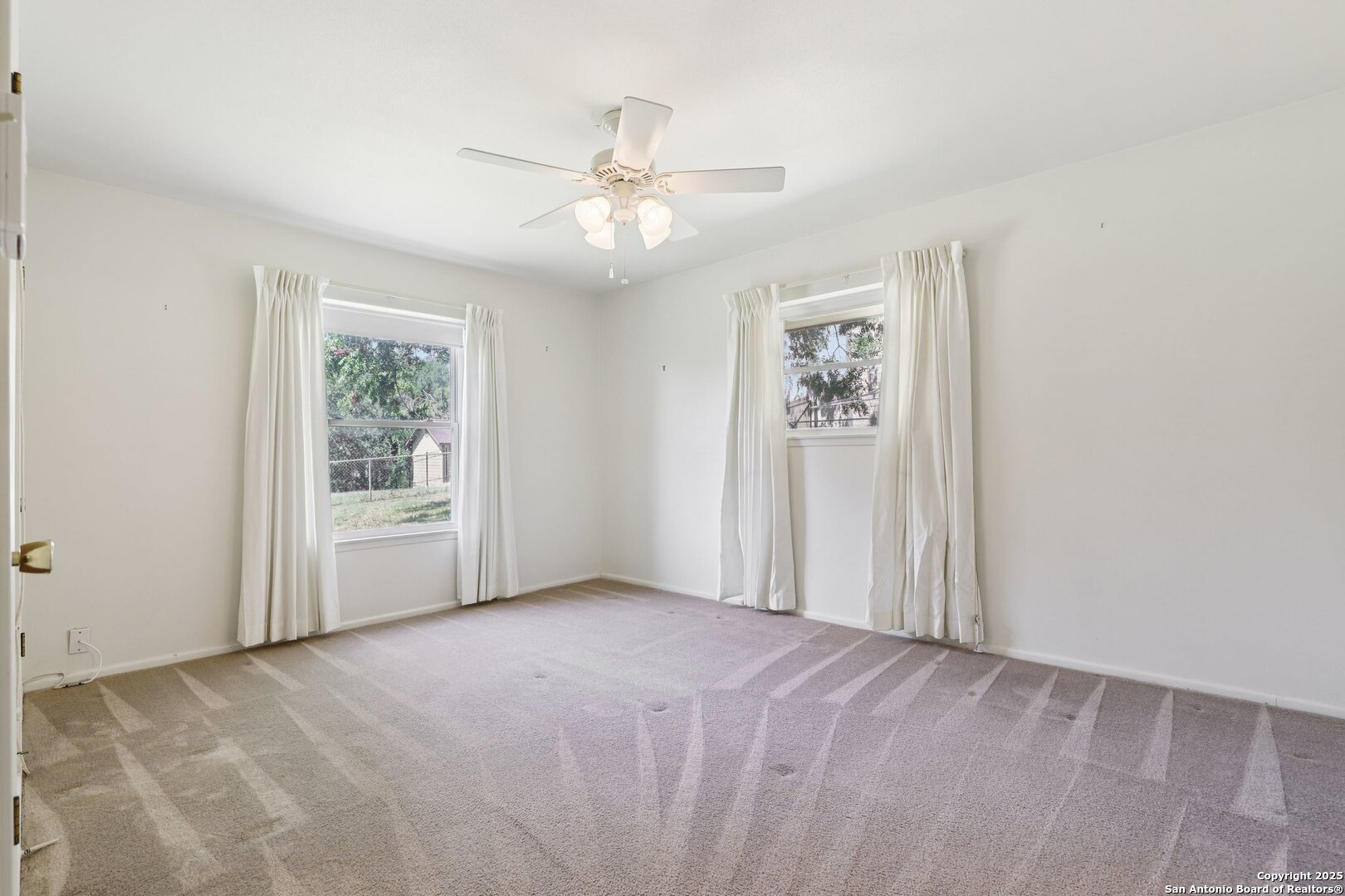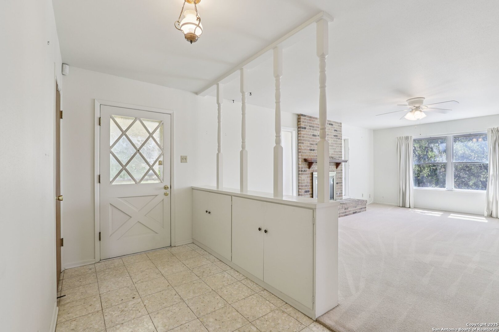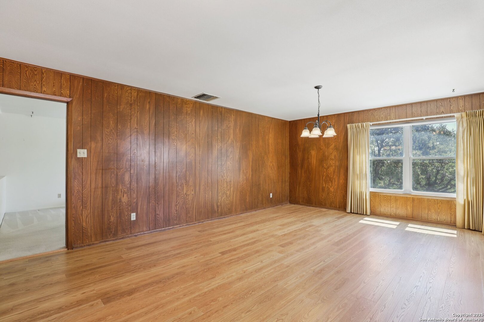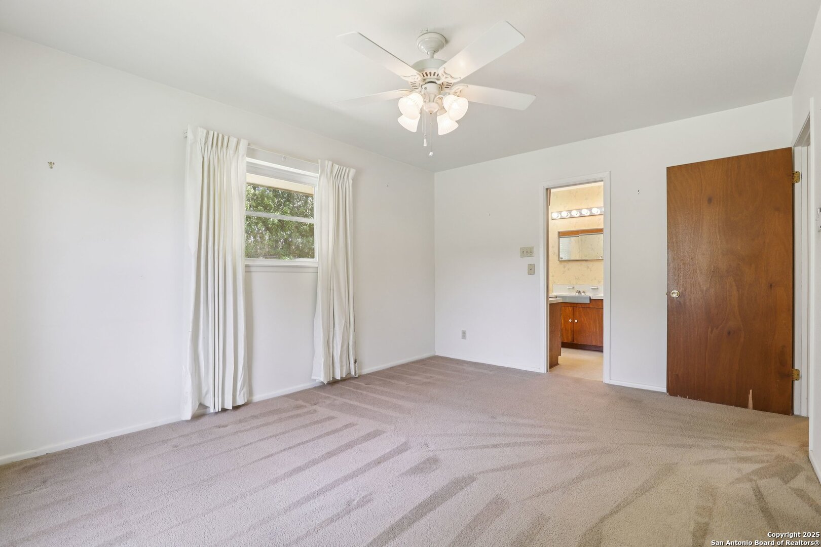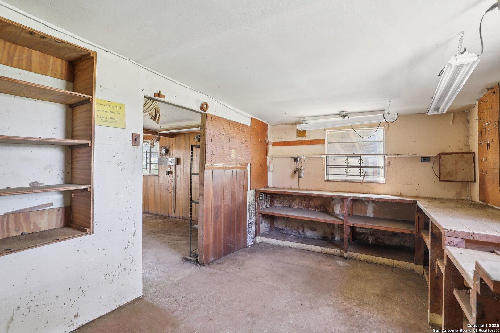 Discover this incredible .86-acre property in the highly sought-after Hills and Dales community. This single-story ranch-style home is a true gem, ready for its next chapter. Step inside to find two inviting living areas-one cozy with a wood-burning fireplace and updated double-pane windows that flood the space with natural light. The second living area, with its durable laminate flooring, offers flexible space perfect for a large dining room or den. The spacious kitchen provides ample storage with a convenient added buffet, making meal prep a breeze. All four bedrooms are generously sized with ceiling fans and good closet space, including a private primary suite with two closets and an en-suite bathroom. Outside, relax on the long covered porch and enjoy the serene, private acreage. The property is fully fenced, with an additional chain-link fence perfect for a small yard or pet area. This home is an outdoor enthusiast's dream, featuring a two-car garage, a two-car carport, and a large workshop with electricity and water. Enjoy the feel of the Texas Hill Country with the convenience of city living. Located just minutes from I-10, Loop 1604, The RIM, La Cantera, UTSA, and major employers like Valero Energy and USAA.