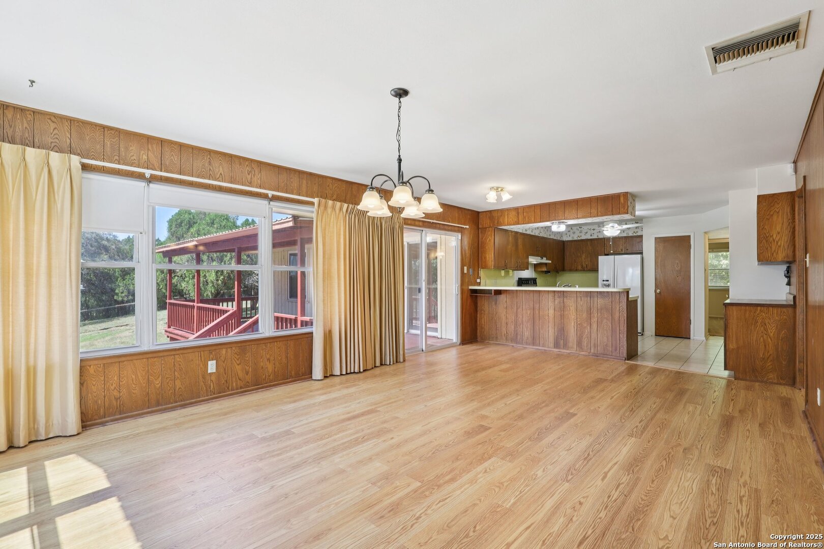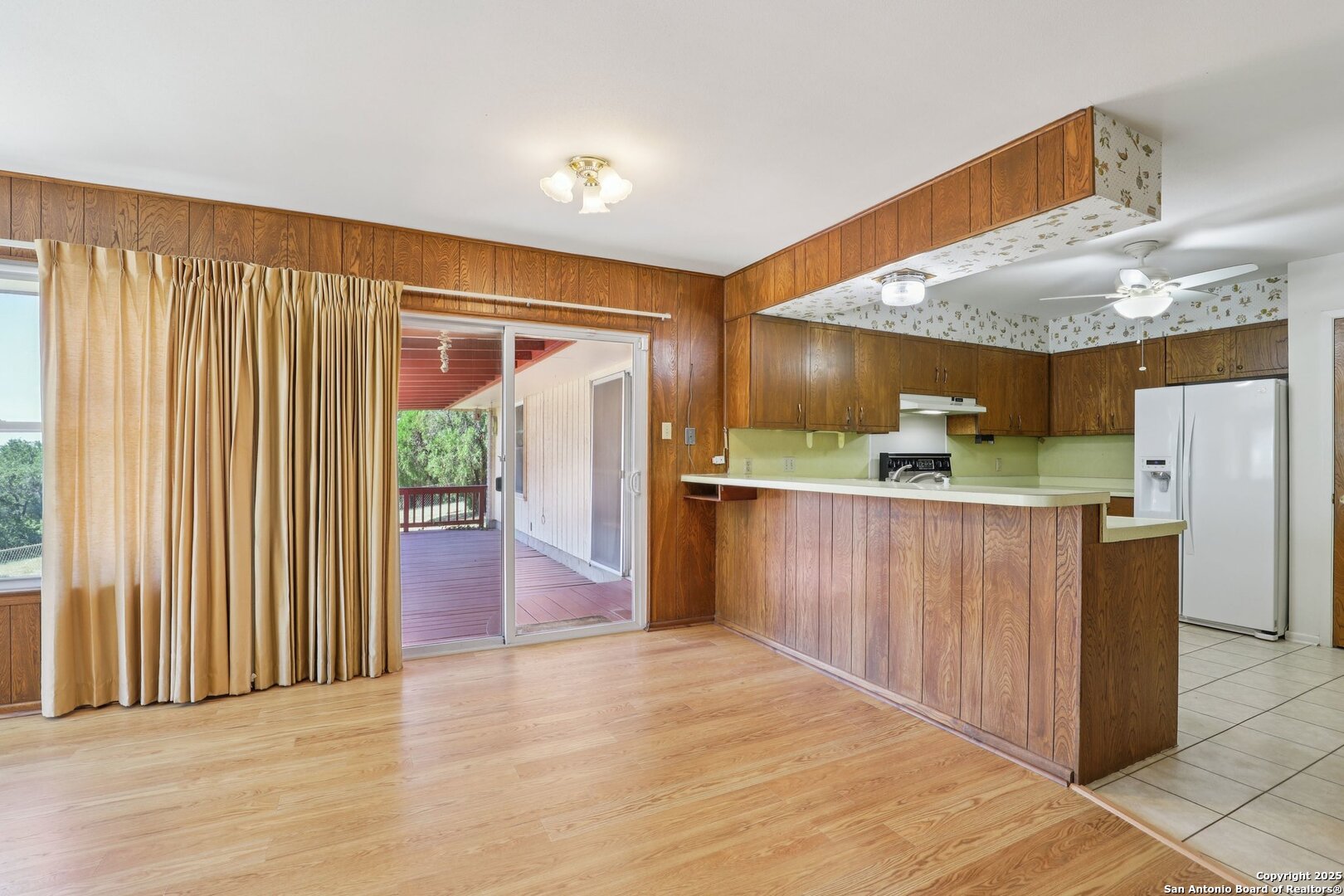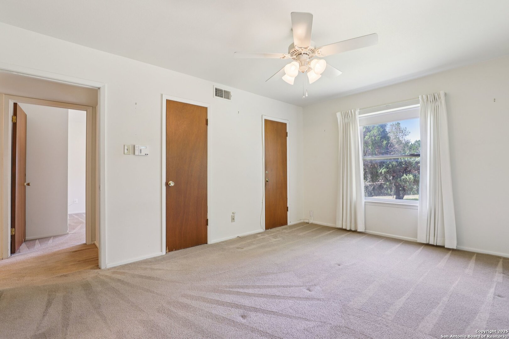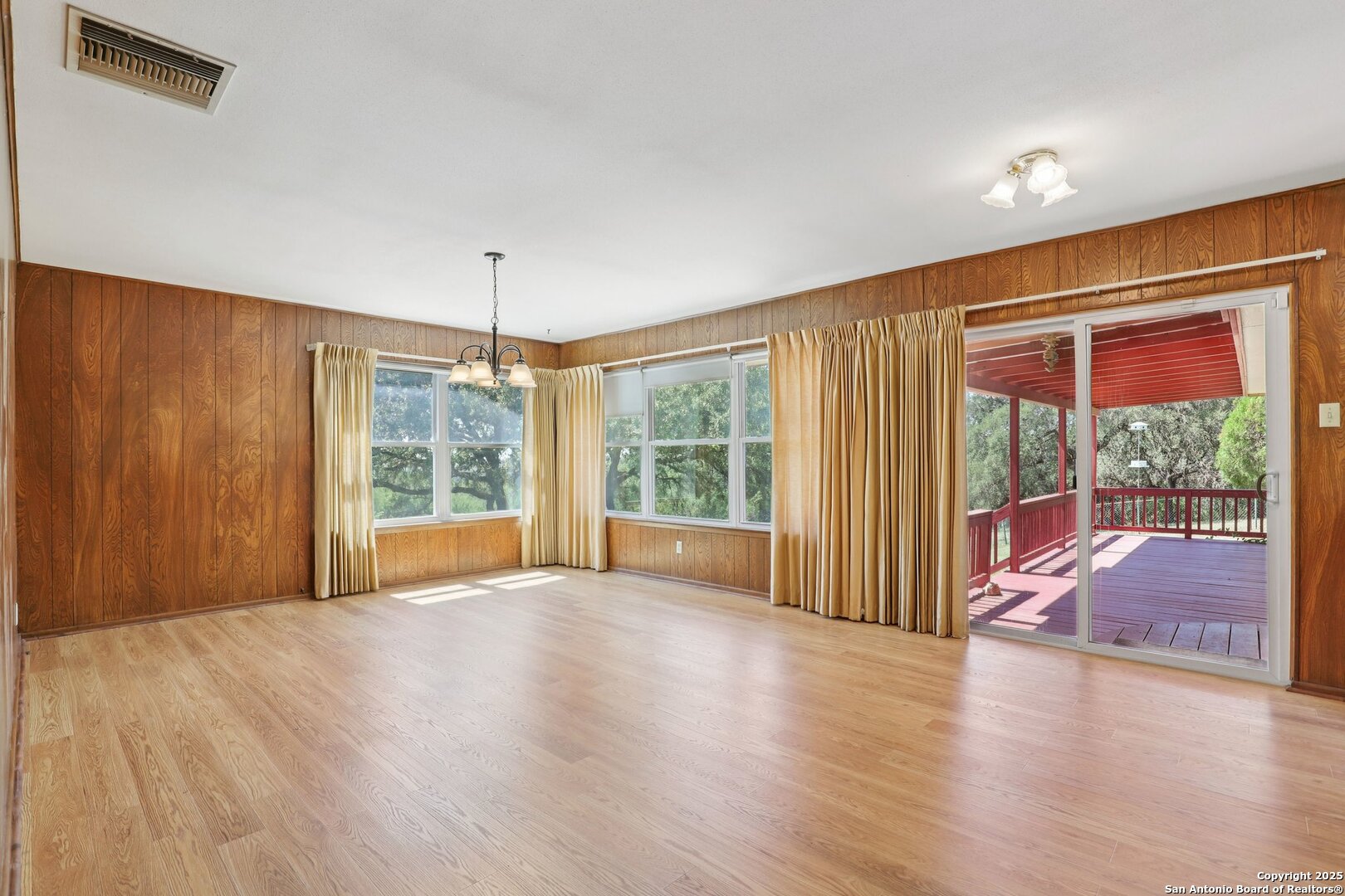 Discover this incredible .86-acre property in the highly sought-after Hills and Dales community. This single-story ranch-style home is a true gem, ready for its next chapter. Step inside to find two inviting living areas-one cozy with a wood-burning fireplace and updated double-pane windows that flood the space with natural light. The second living area, with its durable laminate flooring, offers flexible space perfect for a large dining room or den. The spacious kitchen provides ample storage with a convenient added buffet, making meal prep a breeze. All four bedrooms are generously sized with ceiling fans and good closet space, including a private primary suite with two closets and an en-suite bathroom. Outside, relax on the long covered porch and enjoy the serene, private acreage. The property is fully fenced, with an additional chain-link fence perfect for a small yard or pet area. This home is an outdoor enthusiast's dream, featuring a two-car garage, a two-car carport, and a large workshop with electricity and water. Enjoy the feel of the Texas Hill Country with the convenience of city living. Located just minutes from I-10, Loop 1604, The RIM, La Cantera, UTSA, and major employers like Valero Energy and USAA.