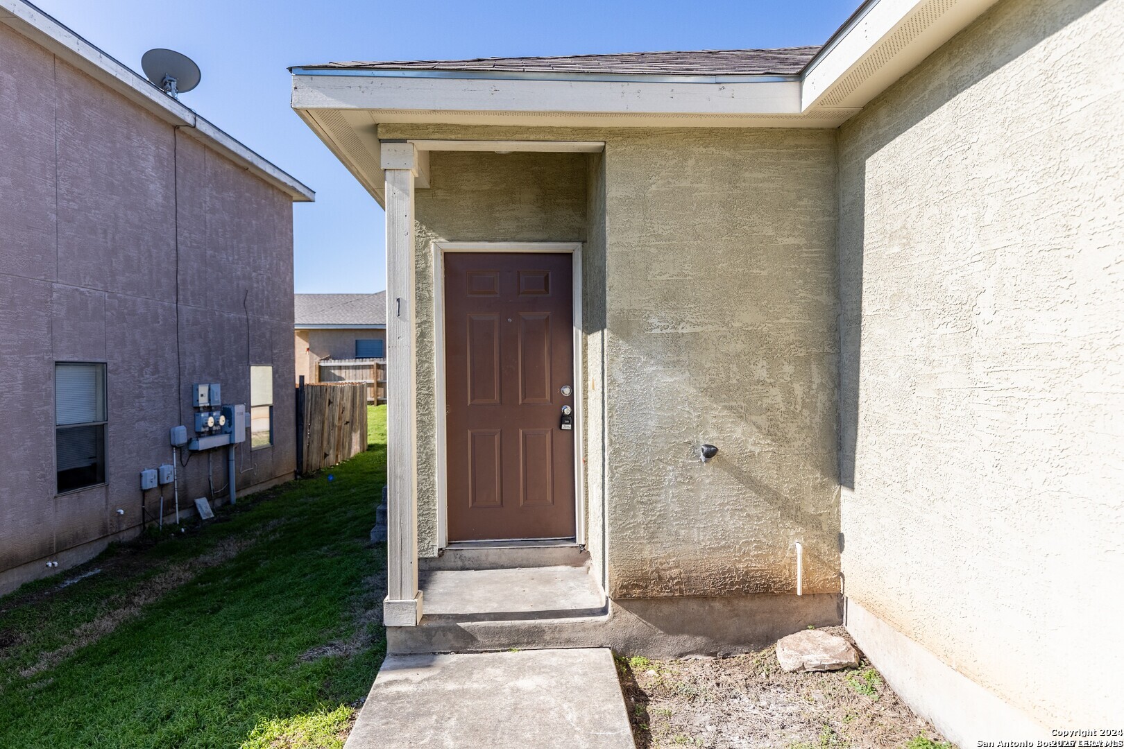 This three bedroom, two bath duplex offers comfortable living in a quiet, well kept neighborhood with features that make day today life easy and enjoyable. The home includes no carpet, and high ceilings that create an open, airy feel. The kitchen comes equipped with a range, dishwasher, and microwave, and the layout provides great natural light in every room. A privacy fenced backyard and one car garage add convenience and functionality. Located near Highway 90 and Woodlake Parkway, the property sits just 8 miles from Randolph Air Force Base and close to shopping and essentials. Pets are negotiable, and showings are available now.