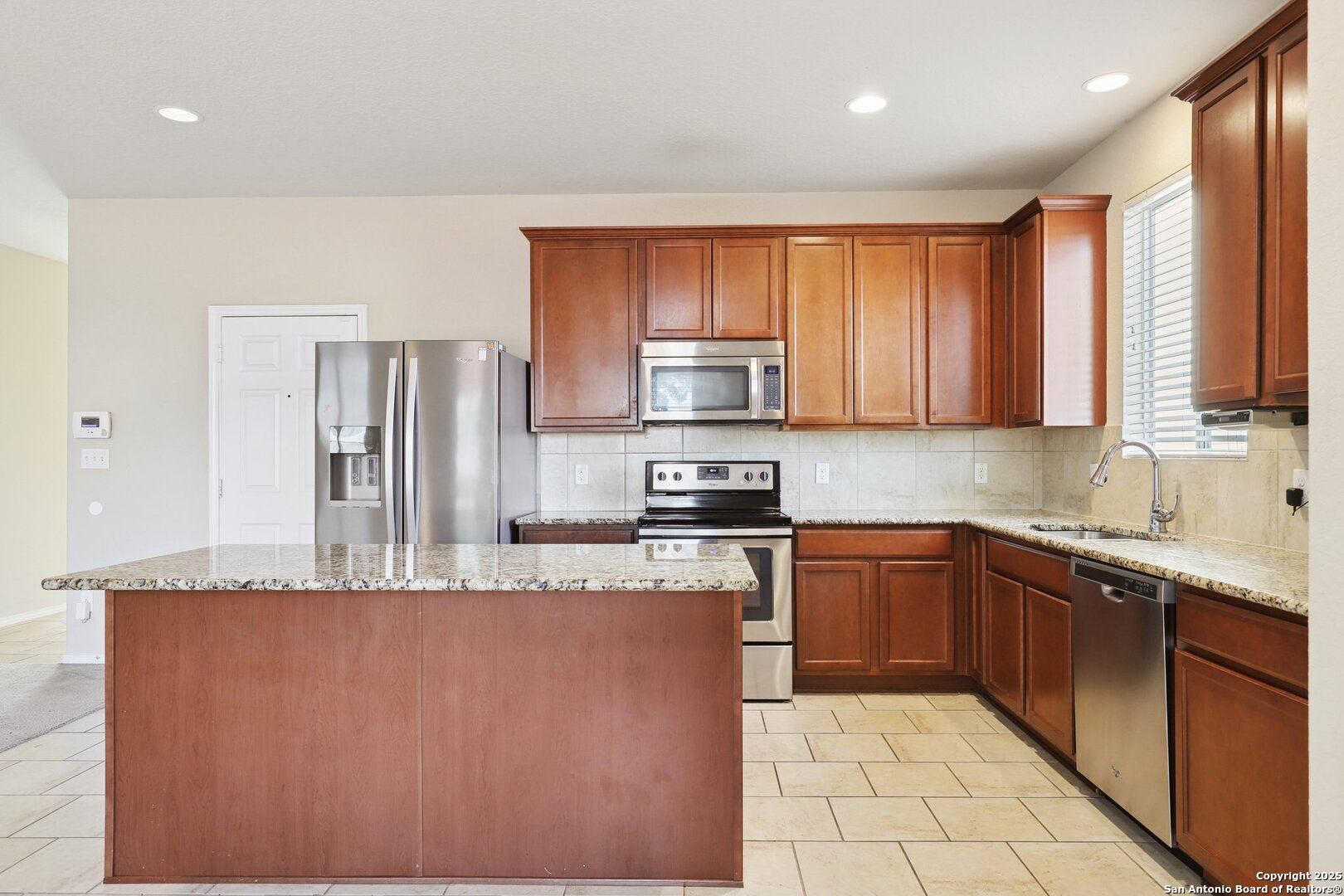 This 2-story residence features 3 spacious bedrooms and 2.5 bathrooms, perfect for modern living. As you step inside, your greeted by a bright and inviting living room that can serve as either a dining area or a productive office. The family expansive room seamlessly flows into the kitchen, showcasing granite countertops, abundant cabinetry, and stainless-steel appliances. Enjoy meals in the charming eat-in kitchen or entertain guests around the generous island. Retreat upstairs to the oversized game room, ideal for family fun nights or as an additional lounge space. All bedrooms are thoughtfully situated on this level. The primary suite boasts a garden tub, separate shower, double vanity, and a spacious walk-in closet. Step outside to your backyard complete with a covered patio for outdoor gatherings, a sprinkler system, and freshly laid sod in both the front and backyards, ensuring a lush landscape year-round. Don't miss this incredible opportunity to make this house your home!