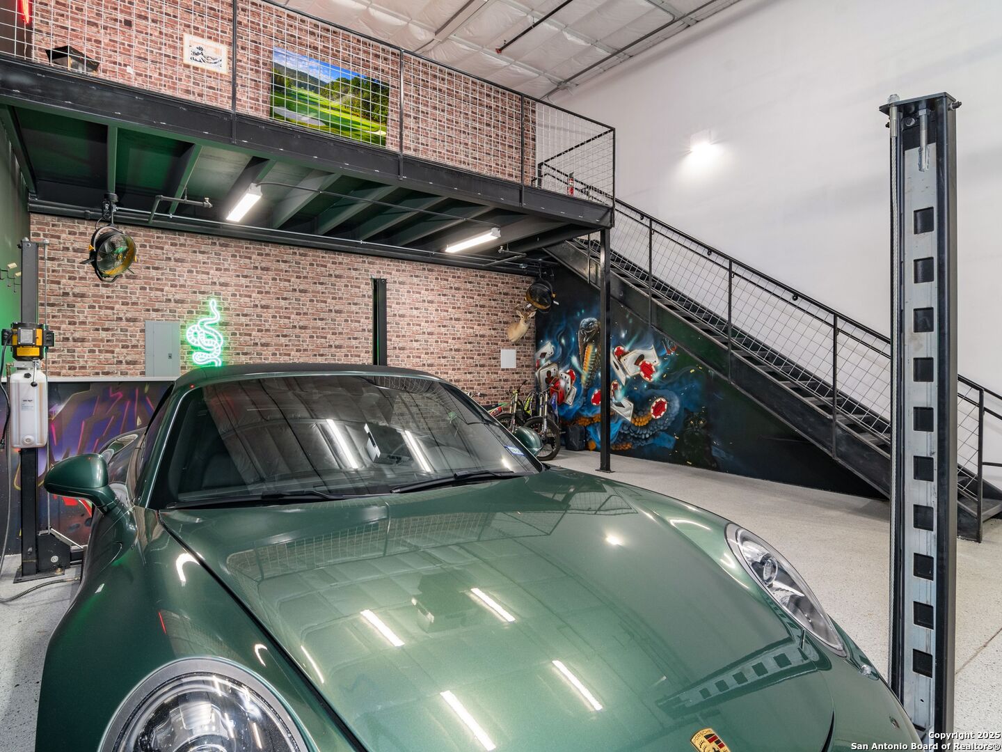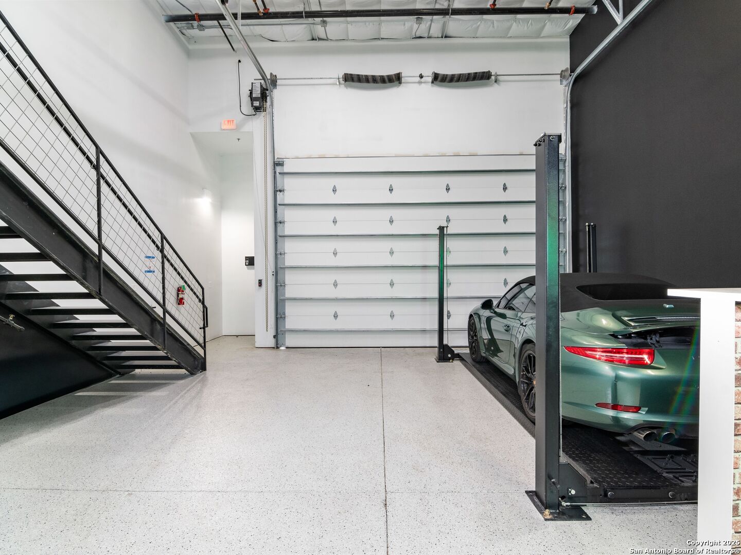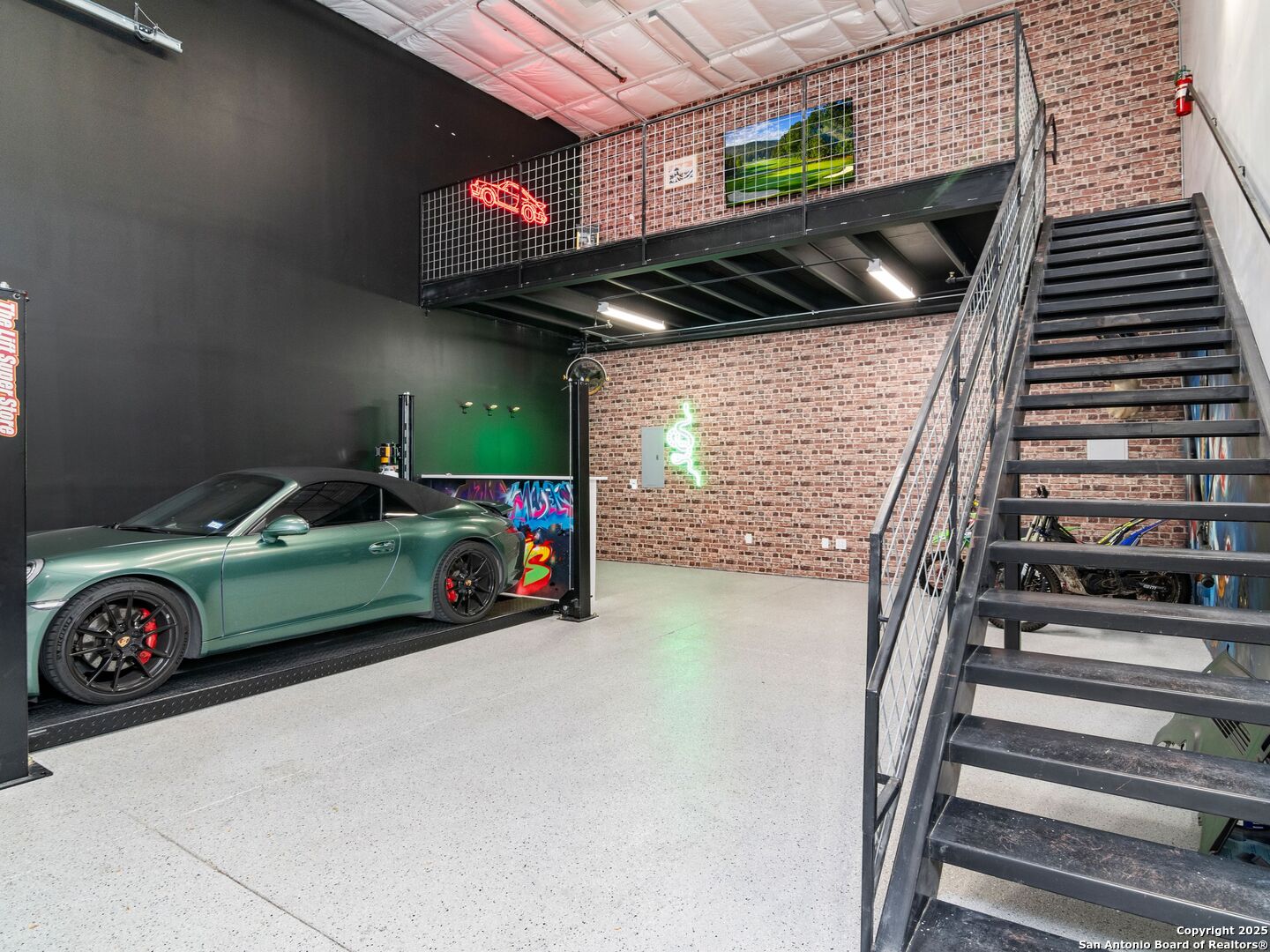 Dominion Motor Club offers a 1,031 square foot unit within San Antonio's premier garage condominium community. Privately gated and thoughtfully designed, this flexible space features epoxy-coated floors and can be tailored to fit your vision. Owners enjoy 24-hour access, climate-controlled storage, and enhanced security, providing the ideal setting for safeguarding and showcasing prized vehicles. Community amenities elevate the ownership experience with an elegant clubhouse and lounge, indoor and outdoor gathering areas, dual kitchens, a full bar, and two bathrooms. Additional conveniences include a covered vehicle display area, a detailing wash station, and nearby restrooms. This is an opportunity to join a distinguished community of automotive enthusiasts in one of the city's most desirable locations.
