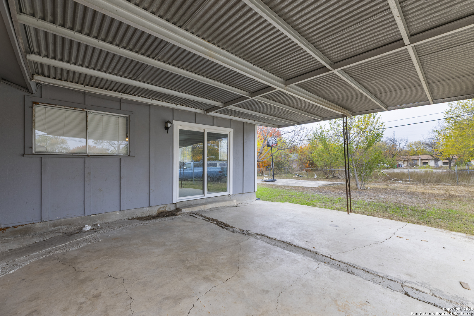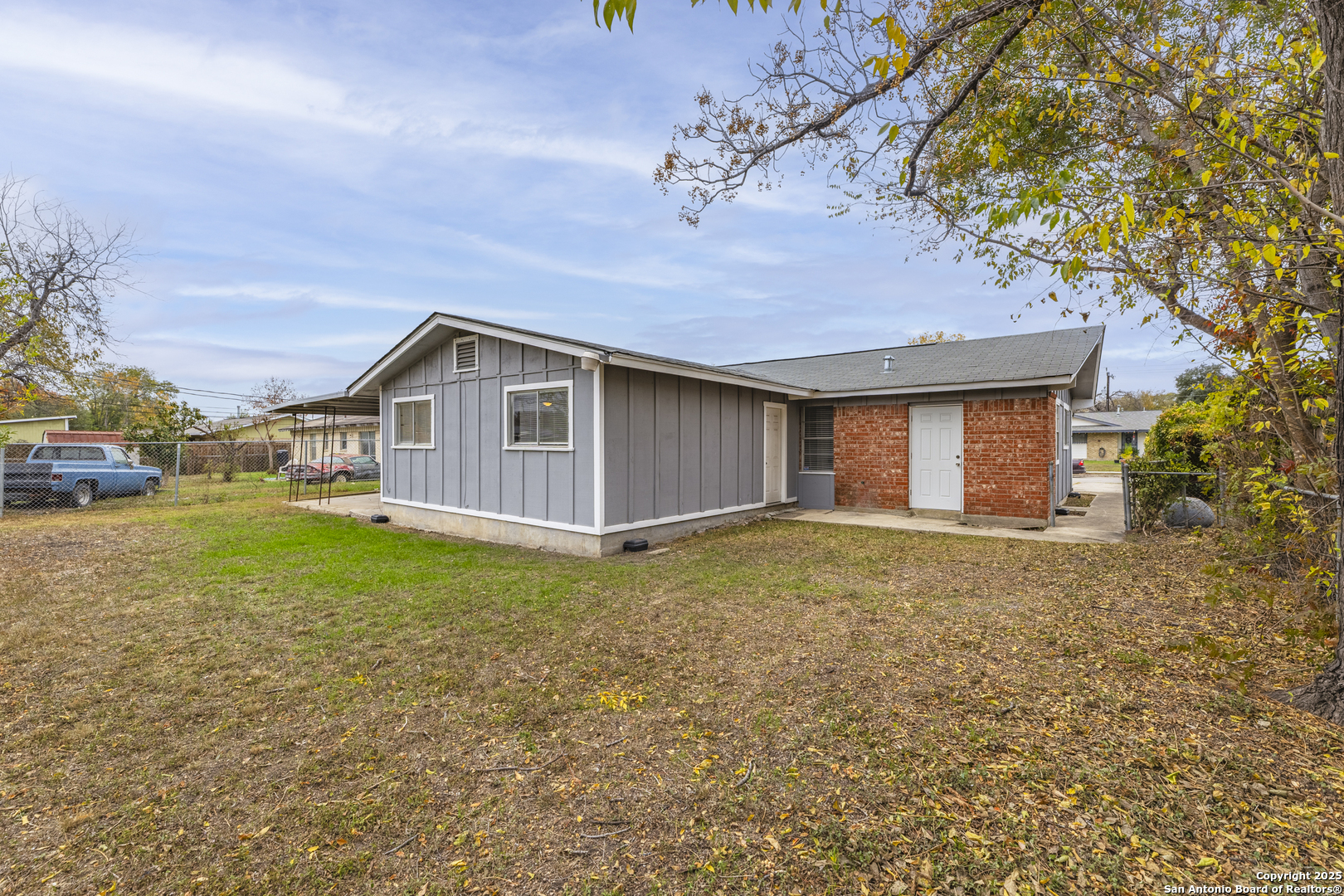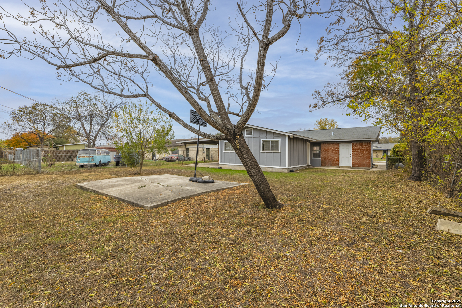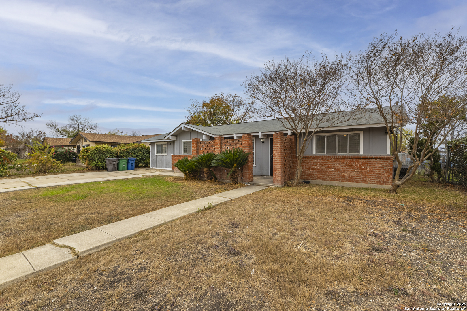 Tucked away in the established Lackland Terrace neighborhood, just five minutes from Lackland Air Force Base, this charming one-story home welcomes you with comfort and versatility. Offering four bedrooms, two bathrooms, and two living areas, the home provides flexible space that adapts easily to everyday life. Upon entering, a comfortable front sitting room offers a welcoming place to relax, while an oversized family room at the back of the home provides ample space for entertaining, movie nights, or everyday leisure. Fresh interior paint and updated flooring in the bedrooms brighten the home, while ceramic tile flows through the main living areas for easy care. The secondary bathroom features a new vanity, adding a clean, updated touch. Located on a quiet, non-through segment of the neighborhood streets, this home offers a relaxed setting that feels tucked away yet still close to everything. Out back, a covered patio invites you to unwind after a busy day, and the yard provides space for play or gardening. With an elementary school within walking distance and sidewalks lining the neighborhood, everyday routines feel effortless. Behind the scenes, the home offers peace of mind with under-house plumbing upgraded to PVC in 2018, with permits pulled. With quick access to Highways 90 and 410, commuting or exploring San Antonio is a breeze. Thoughtfully updated, comfortable, and well-located, this home is ready for its next chapter!