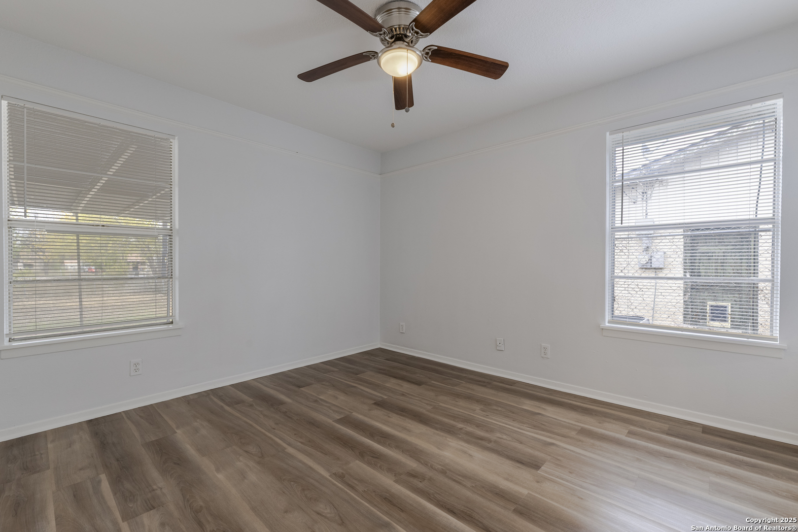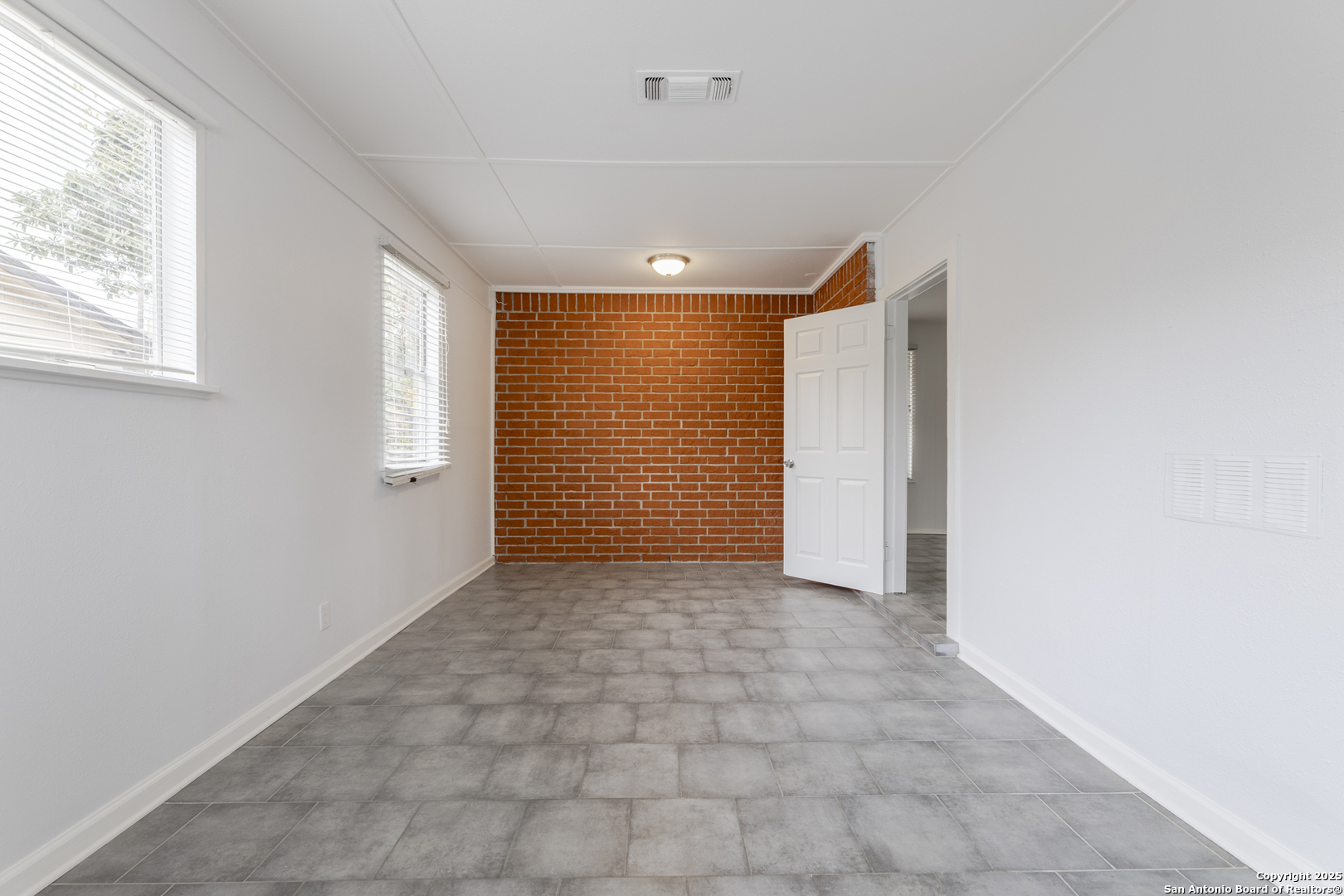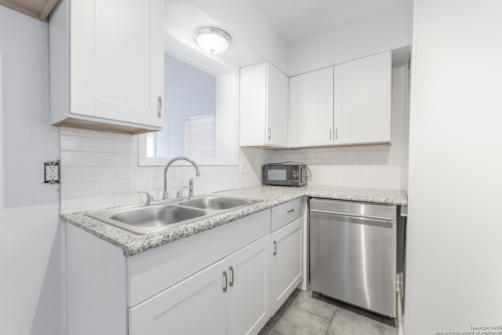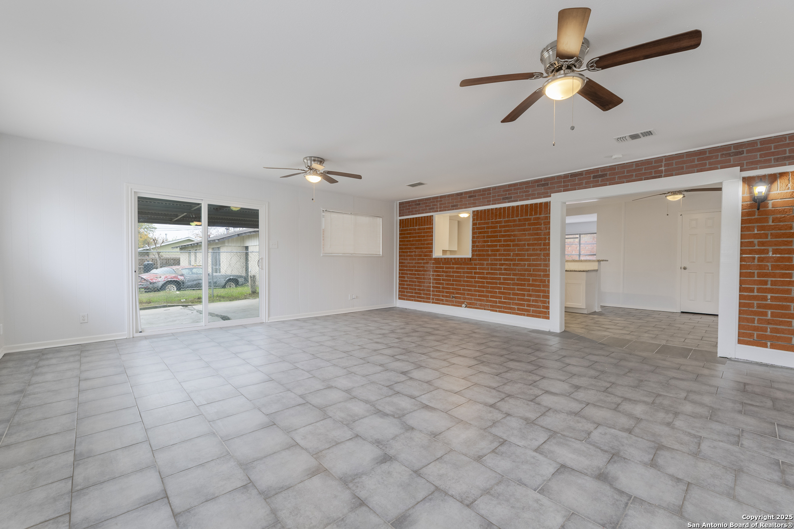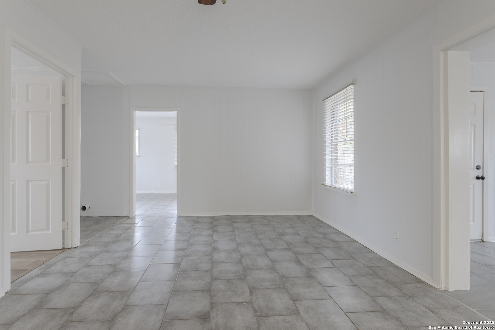 Tucked away in the established Lackland Terrace neighborhood, just five minutes from Lackland Air Force Base, this charming one-story home welcomes you with comfort and versatility. Offering four bedrooms, two bathrooms, and two living areas, the home provides flexible space that adapts easily to everyday life. Upon entering, a comfortable front sitting room offers a welcoming place to relax, while an oversized family room at the back of the home provides ample space for entertaining, movie nights, or everyday leisure. Fresh interior paint and updated flooring in the bedrooms brighten the home, while ceramic tile flows through the main living areas for easy care. The secondary bathroom features a new vanity, adding a clean, updated touch. Located on a quiet, non-through segment of the neighborhood streets, this home offers a relaxed setting that feels tucked away yet still close to everything. Out back, a covered patio invites you to unwind after a busy day, and the yard provides space for play or gardening. With an elementary school within walking distance and sidewalks lining the neighborhood, everyday routines feel effortless. Behind the scenes, the home offers peace of mind with under-house plumbing upgraded to PVC in 2018, with permits pulled. With quick access to Highways 90 and 410, commuting or exploring San Antonio is a breeze. Thoughtfully updated, comfortable, and well-located, this home is ready for its next chapter!