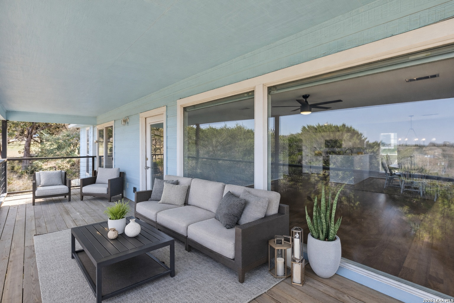 Perched high above Canyon Lake, this Hill Country retreat captures sweeping lake views, offering the best of both worlds: breathtaking scenery and peaceful privacy. From the moment you step into the living room, the view takes center stage. Expansive windows frame the sparkling waters in the distance, while natural light fills the space and draws you toward the oversized deck. This is where mornings begin with coffee and calm lake views, and evenings end with colorful Texas sunsets stretching across the horizon. Thoughtfully updated with a fresh, modern feel, the home blends comfort and style in a way that feels effortless. The kitchen features sleek white quartz countertops, clean lines, and an open flow into the main living area, making it ideal for entertaining guests after a day on the lake or hosting a relaxing weekend getaway. The split bedroom layout provides privacy, an ideal feature for a vacation home, second home, or short term rental investment. The primary suite offers direct access to the deck, creating a serene space to unwind while overlooking Canyon Lake. Both bathrooms have been beautifully renovated with refined finishes that create a spa inspired atmosphere. A spacious central closet off the laundry area adds valuable storage, while the interior staircase leads to a generous two car garage complete with a water softener for added convenience. Below, a shaded porch offers another inviting outdoor living space, perfect for gatherings, quiet reading, or simply enjoying the breeze. With multiple areas designed for relaxation and entertaining, this property embraces the Canyon Lake lifestyle from every angle. This property is move-in ready and positioned to capture some of the most exquisite views in the area. Schedule your private showing today!
