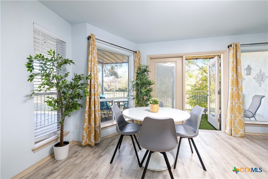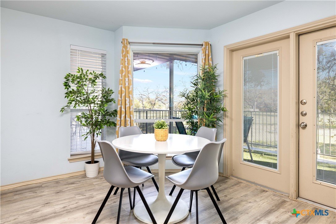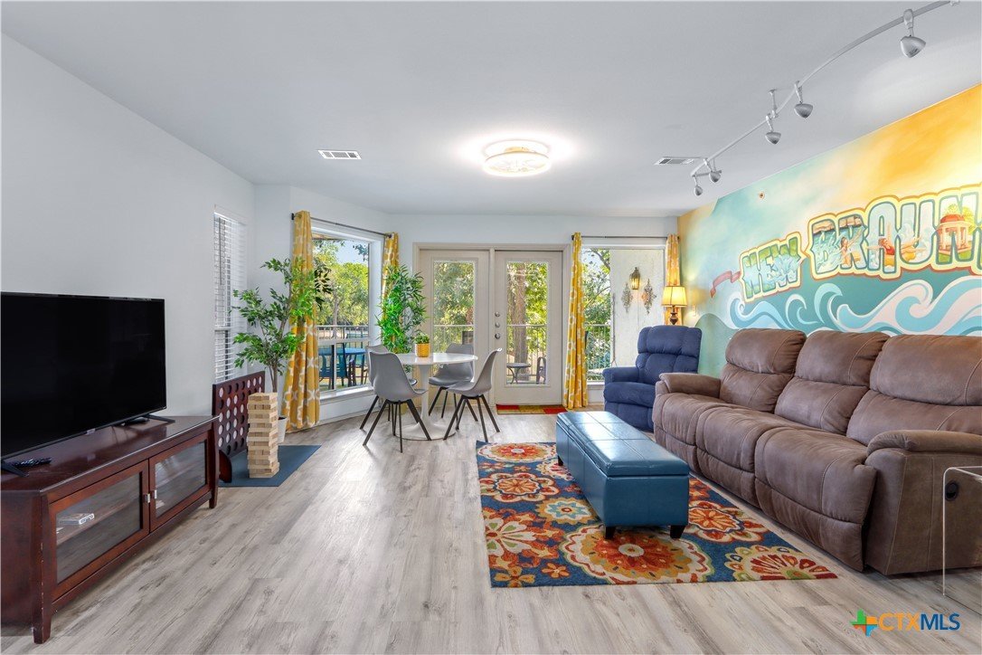 Fully Furnished 2-Bed, 2-Bath Condo in Waterwheel Resort - Short-Term Rental Ready! This beautifully maintained 2-bedroom, 2-bath condo at Waterwheel Resort is a turnkey opportunity, perfect for a primary residence, vacation home, or short-term rental. Fully furnished and thoughtfully updated, it's ready for immediate enjoyment or income. Step inside to a bright and inviting living space, featuring a brand-new couch and recliner (Feb 2024) and a custom wall mural (Aug 2024) that adds personality and charm. The open layout flows seamlessly into the kitchen, which is equipped for both casual meals and entertaining guests. Twin roll-away beds (Apr 2024) offer flexible sleeping options for visitors, and new ceiling fans (Oct 2024) keep the home comfortable year-round. The outdoor patio is a true highlight, overlooking the beautifully maintained park area-perfect for morning coffee, evening relaxation, or entertaining friends. New patio chairs and artificial turf (Aug 2023) enhance the space for comfort and enjoyment. Waterwheel Resort amenities put the best of riverside living at your fingertips. Enjoy direct access to the Guadalupe River, pools, hot tubs, and social areas designed for both relaxation and recreation. A storage unit is available for water toys such as tubes, kayaks, or paddleboards, making it easy to take advantage of all the river has to offer. The air conditioner was replaced in June 2022, ensuring reliable comfort for years to come. This fully furnished condo blends lifestyle, convenience, and investment potential in one incredible package. Whether you're looking for a serene retreat, a vacation home, or a short-term rental with established appeal, this unit offers a turn-key solution in a desirable riverside resort community.