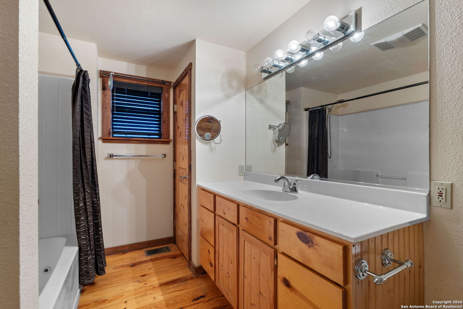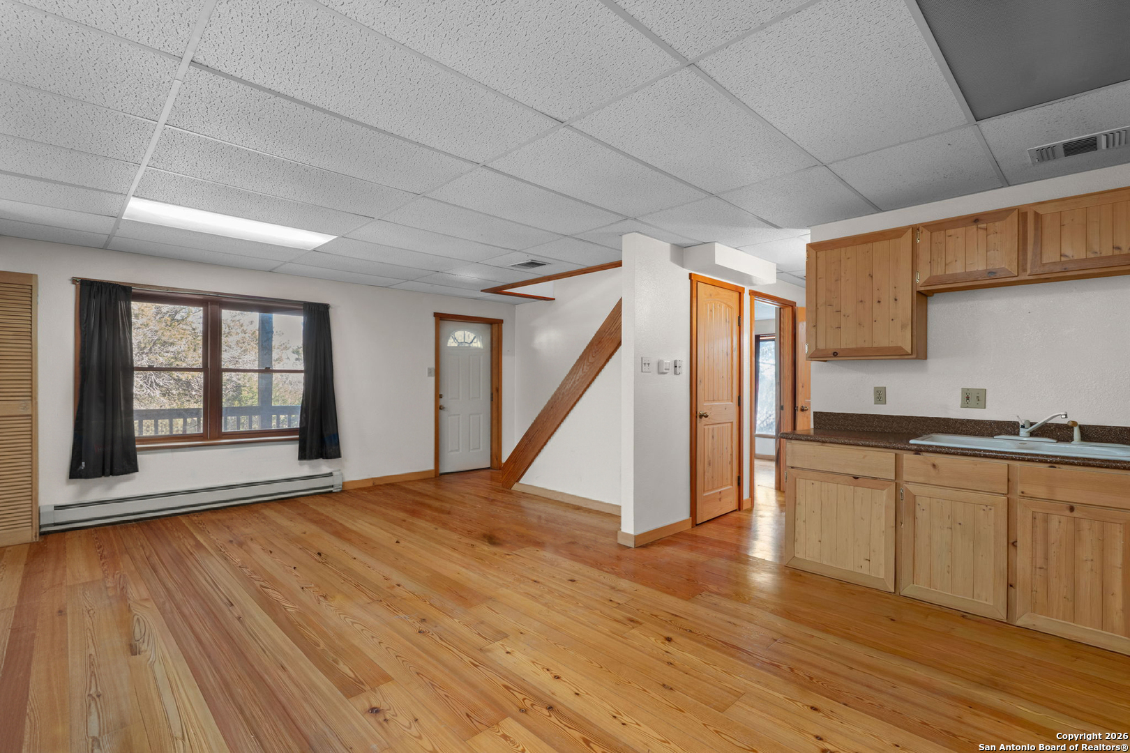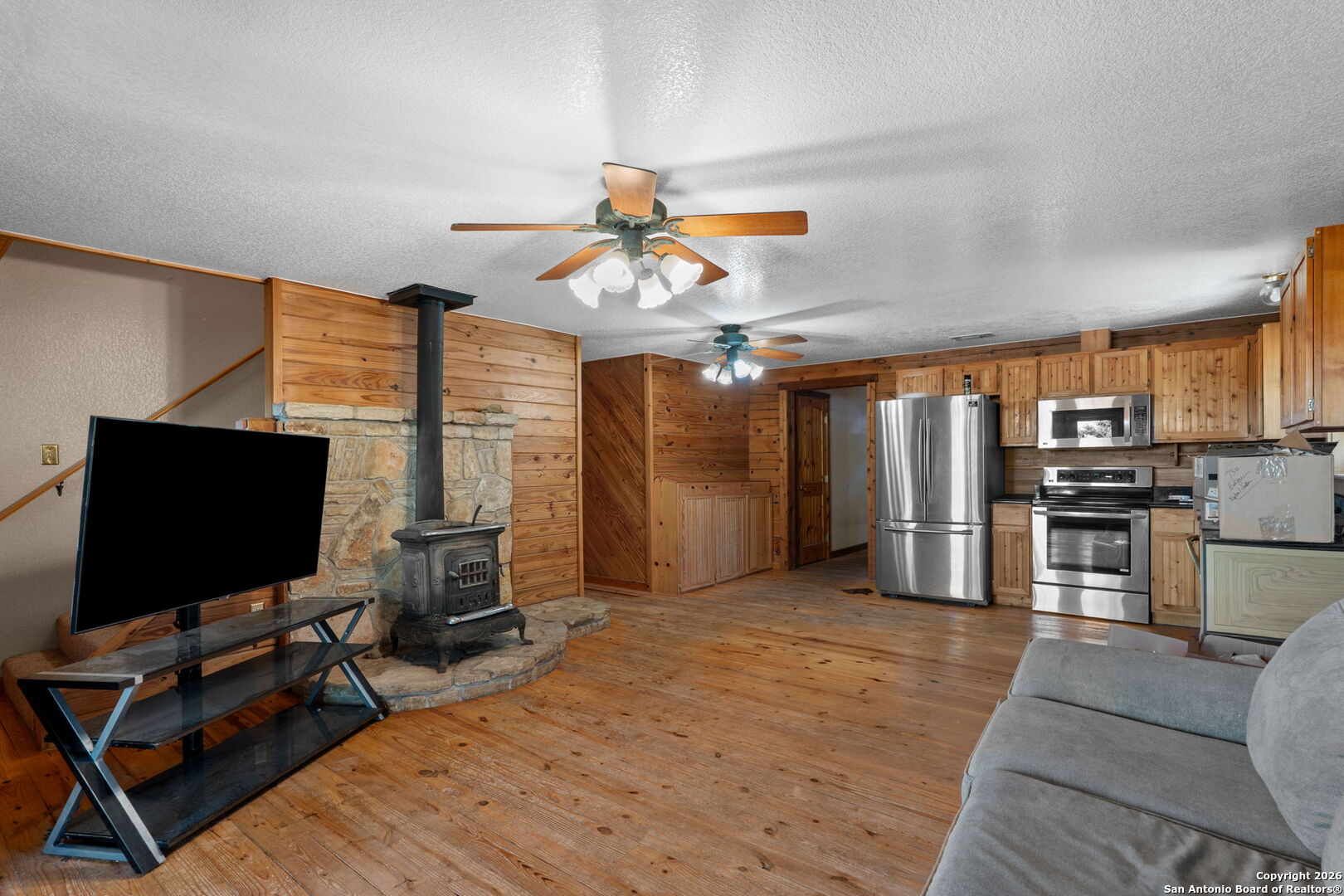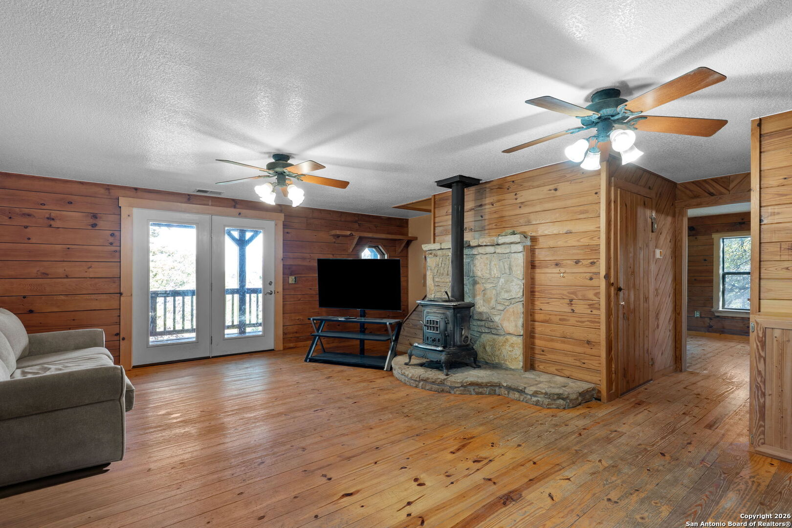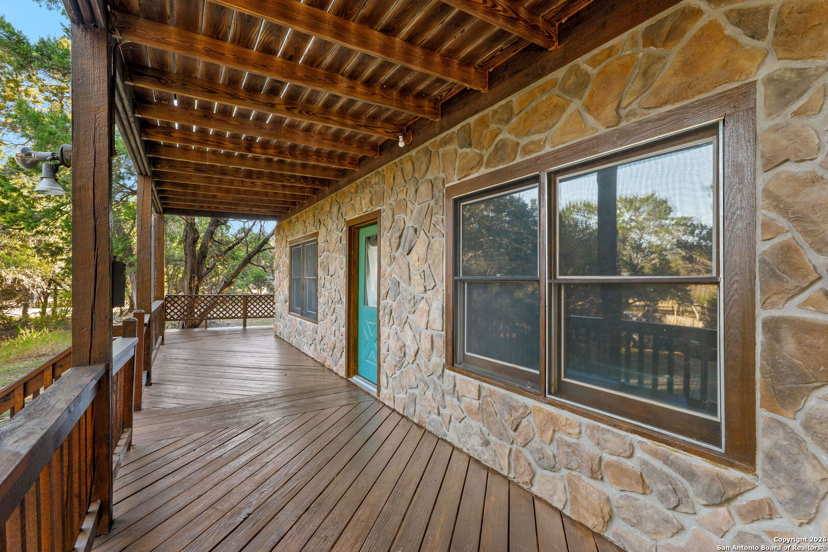 A truly unique custom log home on a spacious 1 acre lot with scenic views of Canyon Lake and the Texas Hill Country. This one of a kind retreat delivers flexibility, thoughtful functionality, and strong income producing potential, all within a desirable Canyon Lake location. The main residence showcases rich hardwood floors, natural wood walls, granite kitchen and bathroom countertops, and stainless steel appliances on the main level. The main living room is has an antique wood furnace, creating a warm and inviting atmosphere filled with rustic character. Upstairs, the private primary suite features wood flooring and direct access to an outdoor deck, offering a tranquil escape surrounded by nature. The lower level of the home provides a fully equipped guest suite with a private entrance and kitchen, ideal for Airbnb use or supplemental rental income. Adding even more value, a separate dwelling next door includes a second apartment, presenting an exceptional opportunity for short term rentals, multi use living, or additional cash flow. Outdoor living truly shines with two covered decks at the front of the property and an expansive rear deck, perfect for outdoor dining, entertaining, and summer barbecues. Covered patios invite you to relax while enjoying Hill Country scenery and partial views of Canyon Lake throughout the year. A circular driveway and generous parking offer ample space for guests, a boat, or an RV. Just minutes from Comal Park, boating, fishing, waterfront dining, and a short distance to a nearby boat ramp, this property also provides easy access to US 281 and I 35 in under 30 minutes, making travel and commuting convenient.