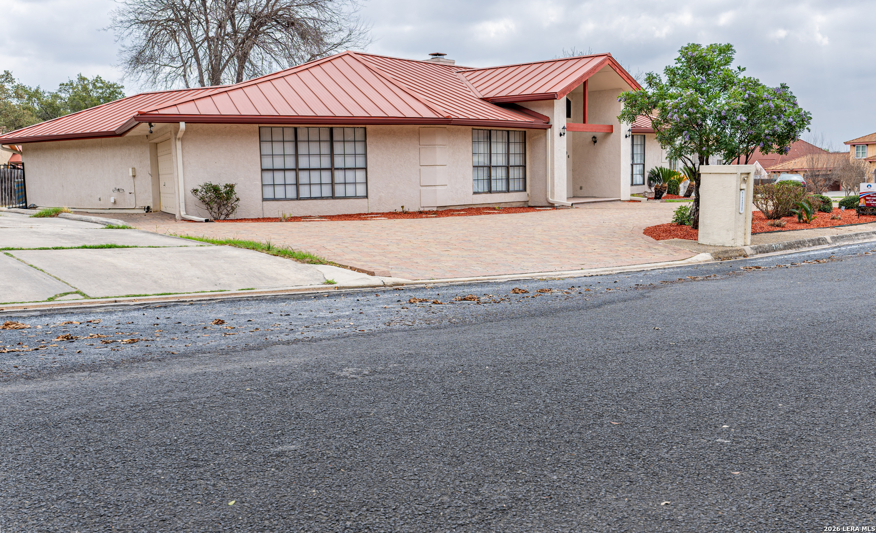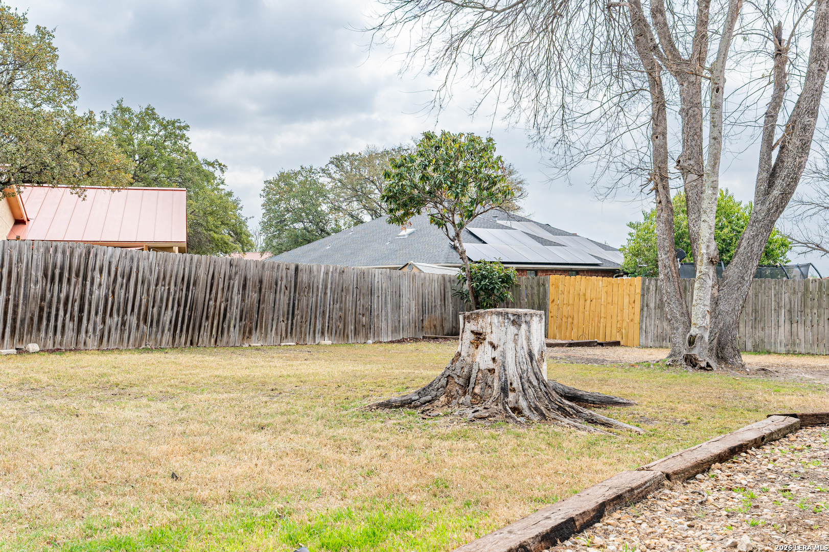 From the moment you pull into the horseshoe driveway, you'll notice the details that set this home apart. The stucco exterior gives it a clean, classic look that holds up beautifully in the San Antonio heat, and the metal roof means one less big-ticket item to worry about down the road. Inside, the vaulted ceilings make an immediate impression - the main living area feels open and airy without trying too hard. It's the kind of architectural touch that makes a home feel larger than its footprint suggests. The kitchen features stainless steel appliances that are functional and easy to maintain, flowing naturally into the living space for an easy, connected layout. Three bedrooms and two and a half baths give everyone room to breathe. The secondary suite has a private access door that opens directly to the backyard - convenient for guests, family members who keep different hours, or simply enjoying the outdoors without cutting through the whole house. The oversized backyard itself offers genuine space to make your own, whether that's a garden, a patio setup, or just room to let the kids run around. Location-wise, this home sits in a quiet, established neighborhood that's hard to beat for convenience. Randolph Air Force Base is just a short drive away, making this a practical choice for military families or those who work on base. Shopping and everyday errands are equally accessible, so you're never far from what you need while still coming home to a peaceful street. For buyers looking for comfort, practicality, and a location that genuinely works - 7306 Hidden Hills North deserves a visit.