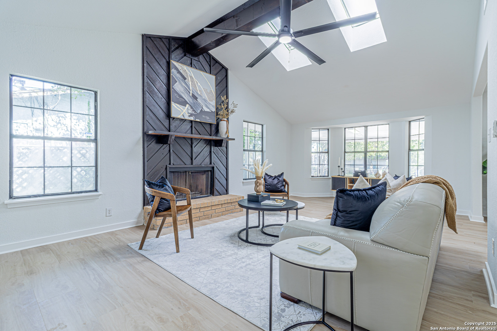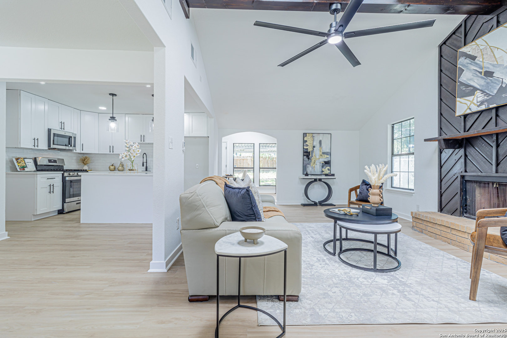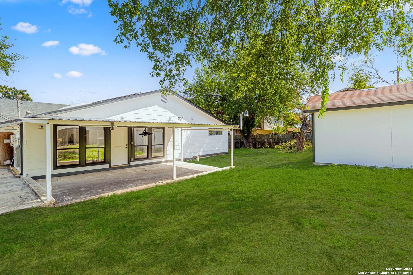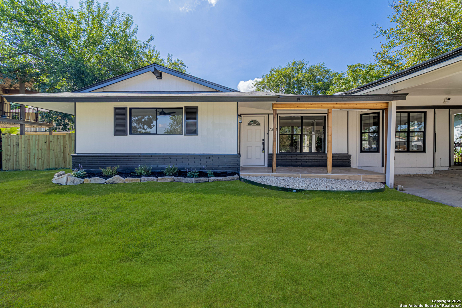 Welcome to this beautifully maintained 3-bedroom, 2-bath home offering 1,740 sq ft of comfortable living space in the desirable Lackland Terrace neighborhood. This bright and open floor plan features wood laminate flooring throughout and a cozy fireplace that adds warmth and character to the spacious living area. The updated kitchen boasts modern finishes, ample cabinet space, and is perfect for both everyday living and entertaining. The primary suite includes a private bath, while two additional bedrooms offer flexibility for family, guests, or a home office. Enjoy the convenience of a covered carport, solar panels and a low-maintenance yard, perfect for outdoor relaxation. Ideally located near shopping, schools, parks, and Lackland AFB, this move-in ready home combines comfort, style, and value. Don't miss your opportunity to own this gem in a well-established neighborhood-schedule your showing today!