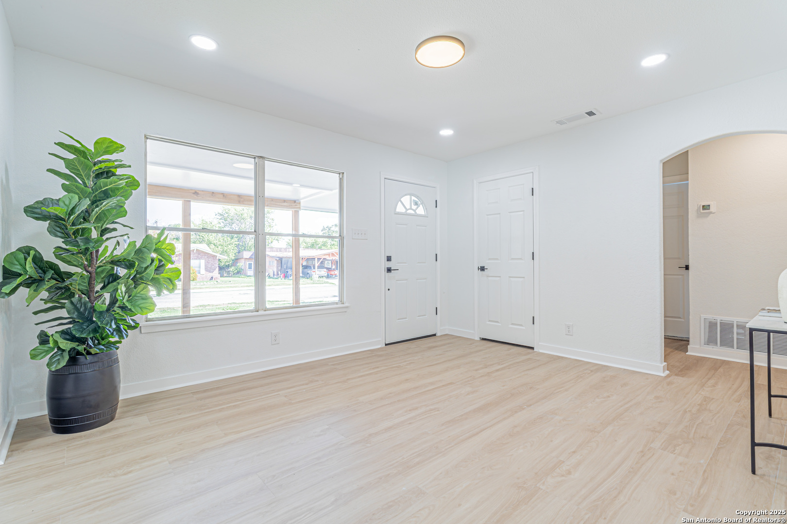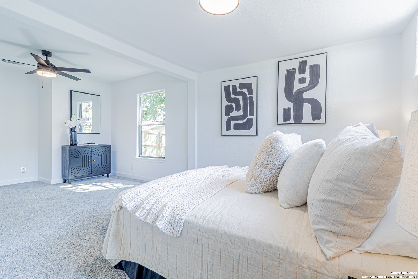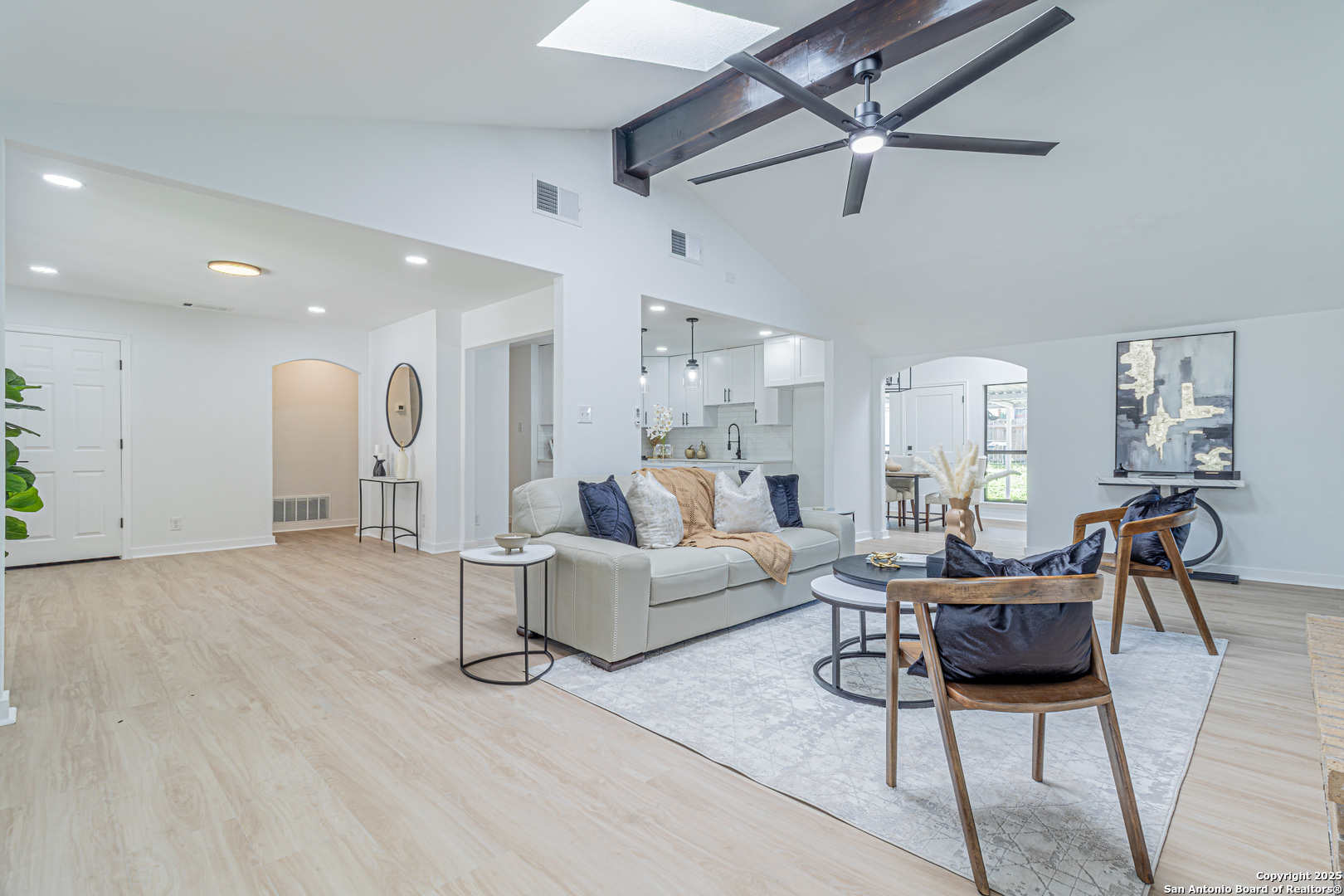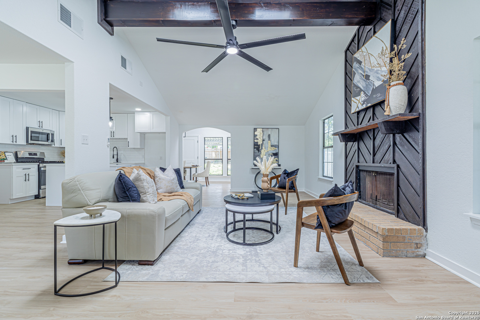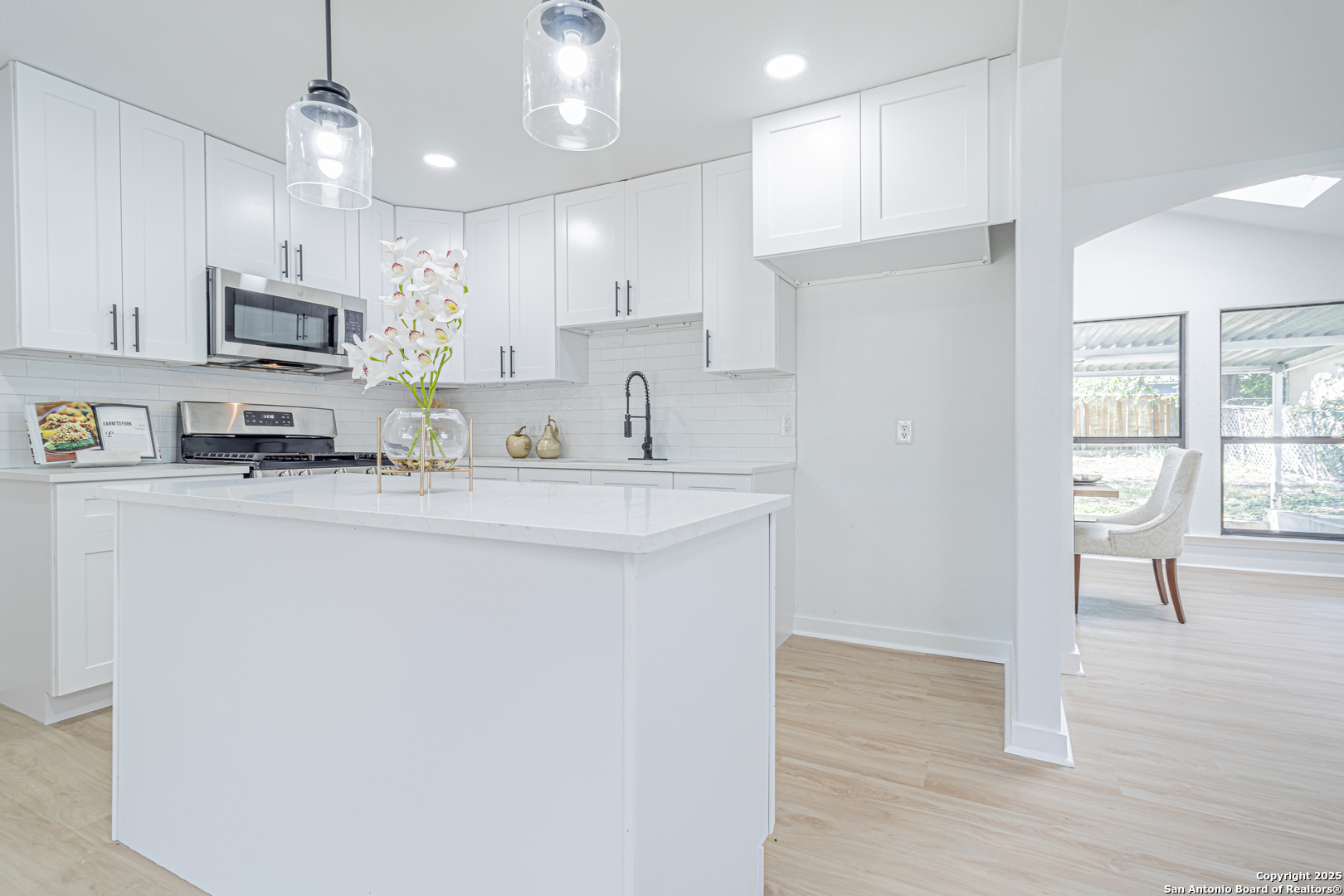 Welcome to this beautifully maintained 3-bedroom, 2-bath home offering 1,740 sq ft of comfortable living space in the desirable Lackland Terrace neighborhood. This bright and open floor plan features wood laminate flooring throughout and a cozy fireplace that adds warmth and character to the spacious living area. The updated kitchen boasts modern finishes, ample cabinet space, and is perfect for both everyday living and entertaining. The primary suite includes a private bath, while two additional bedrooms offer flexibility for family, guests, or a home office. Enjoy the convenience of a covered carport, solar panels and a low-maintenance yard, perfect for outdoor relaxation. Ideally located near shopping, schools, parks, and Lackland AFB, this move-in ready home combines comfort, style, and value. Don't miss your opportunity to own this gem in a well-established neighborhood-schedule your showing today!