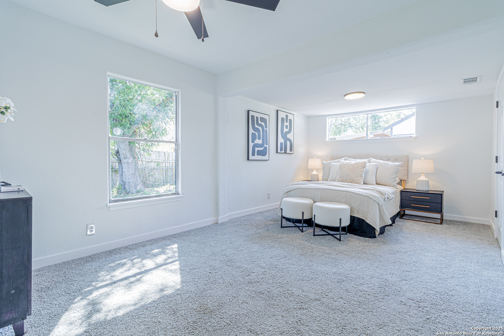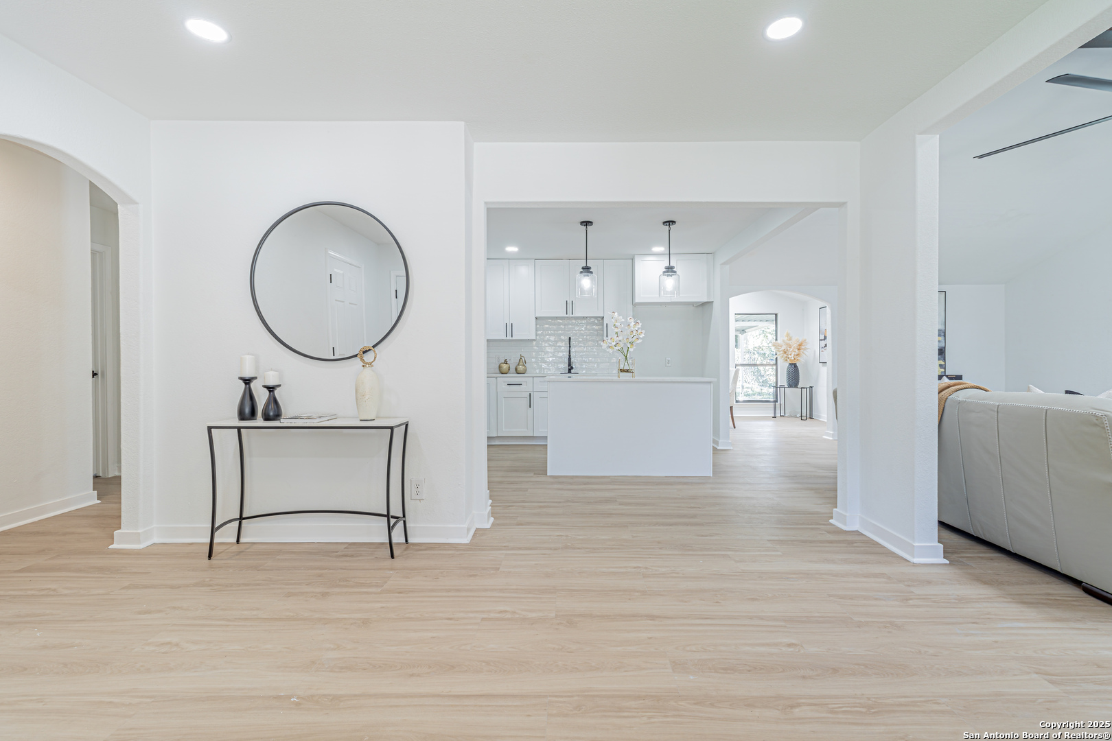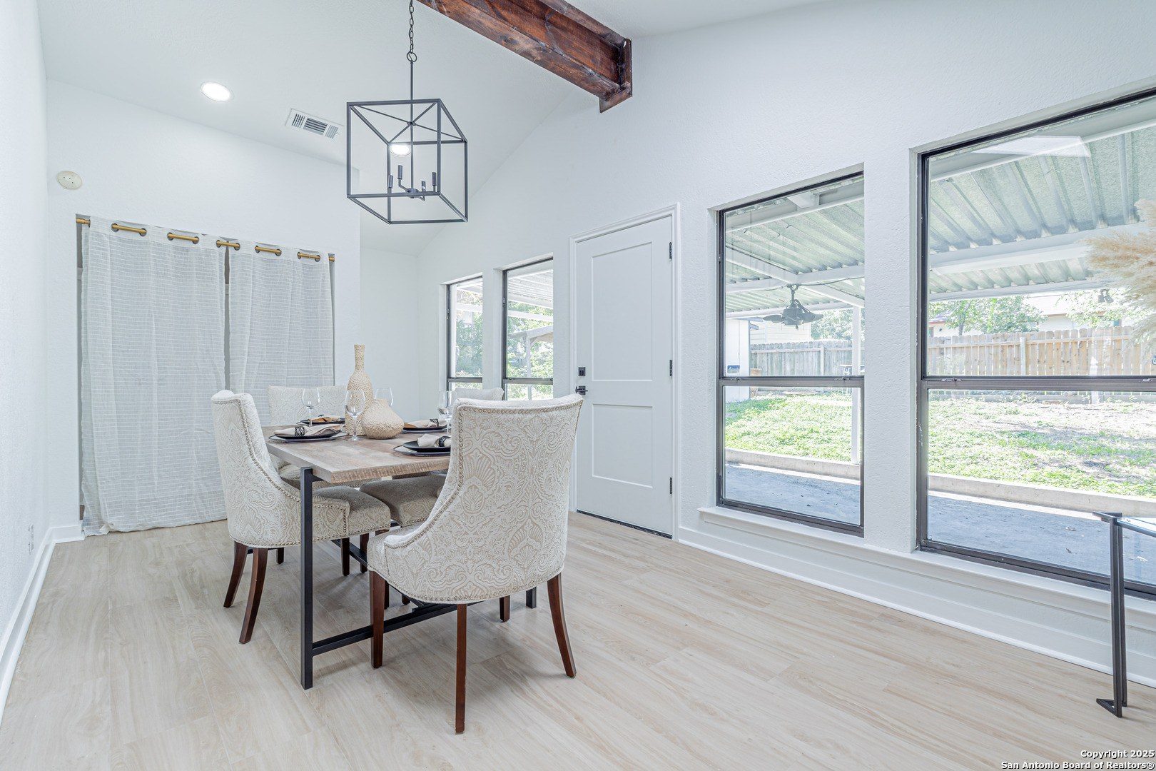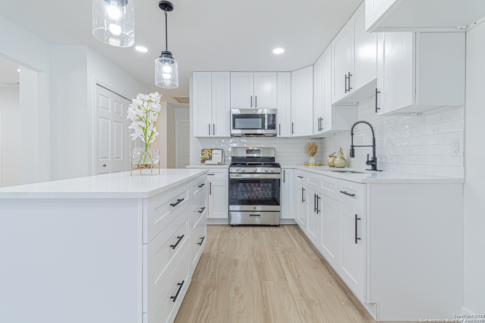Welcome to this beautifully maintained 3-bedroom, 2-bath home offering 1,740 sq ft of comfortable living space in the desirable Lackland Terrace neighborhood. This bright and open floor plan features wood laminate flooring throughout and a cozy fireplace that adds warmth and character to the spacious living area. The updated kitchen boasts modern finishes, ample cabinet space, and is perfect for both everyday living and entertaining. The primary suite includes a private bath, while two additional bedrooms offer flexibility for family, guests, or a home office. Enjoy the convenience of a covered carport, solar panels and a low-maintenance yard, perfect for outdoor relaxation. Ideally located near shopping, schools, parks, and Lackland AFB, this move-in ready home combines comfort, style, and value. Don't miss your opportunity to own this gem in a well-established neighborhood-schedule your showing today!