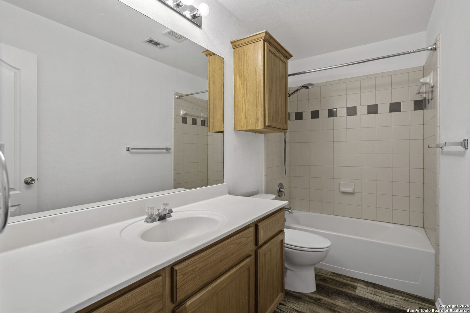 A wonderful 3 br 2.5 ba two story home in a sought after neighborhood. Nestled off the highway far enough not to hear traffic but close enough for quick access. Convenient to shopping and Lackland AFB as well as Sea World, The Rim, La Cantera and Six FLags Fiesta Texas. All bedrooms are upstairs. Washer and Dryer are upstairs to improve access to needed clothes and bedrooms. Concrete patio slab great for future Pergola or outdoor entertaining.