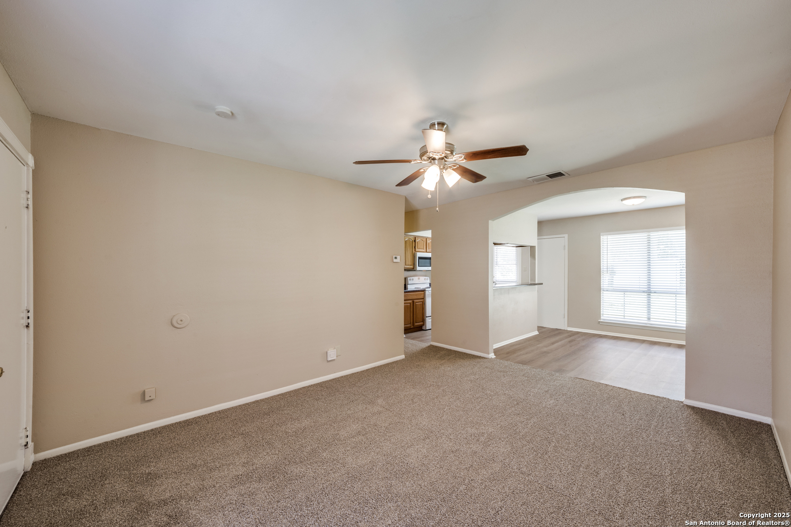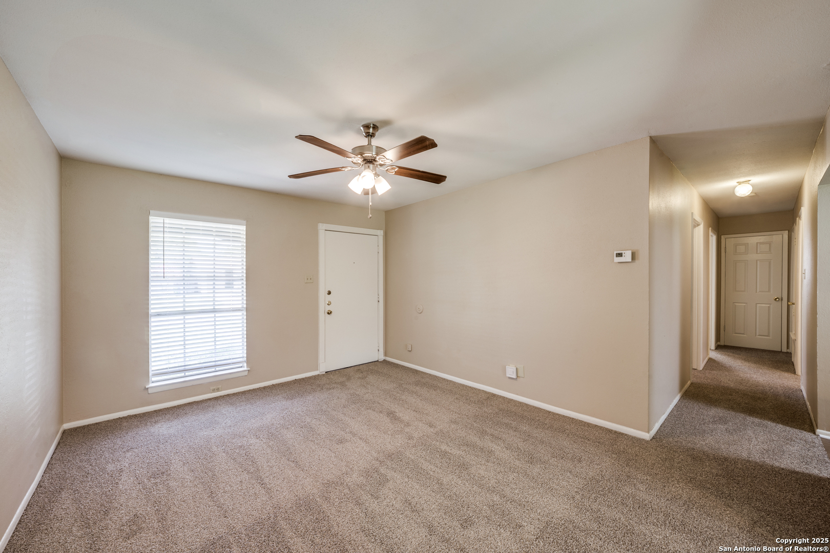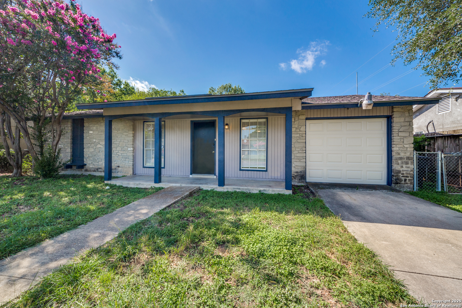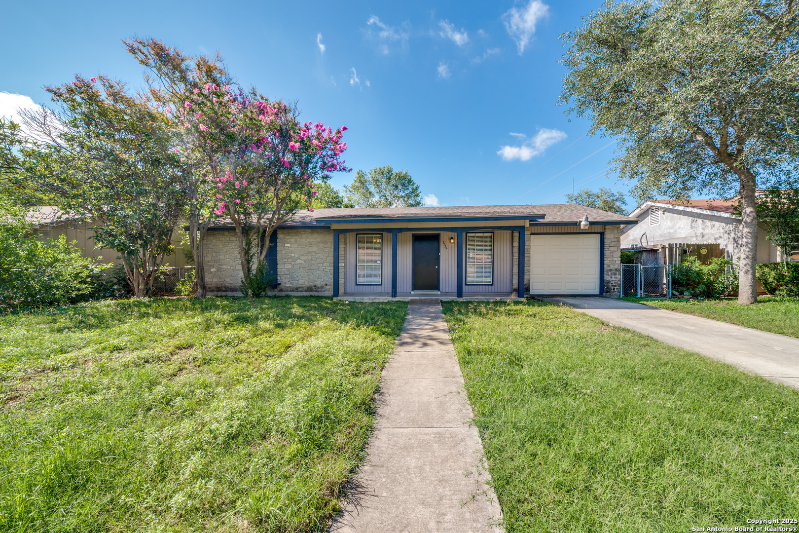 Cozy 3-bedroom, 1.5-bath single-story home nestled in the established Timber Creek Estates neighborhood. Boasting nearly 1,000 sq. ft. of functional living space, this home offers a spacious living area, eat-in kitchen with a breakfast bar, and utility area in the attached garage. The primary suite includes a private 1/2 bath and ceiling fan for comfort. Flooring installed in June- carpet and laminate flooring, and a covered patio perfect for relaxing evenings. The oversized backyard is enclosed with a chain-link fence-ideal for pets, gardening, or entertaining. Located in Northside ISD, close to Bandera Rd, shopping, schools, and dining, with easy access to Loop 410.