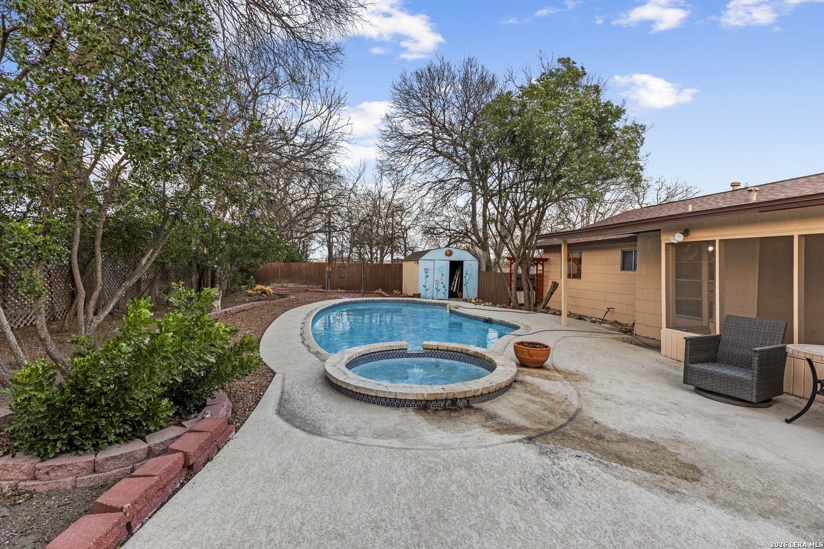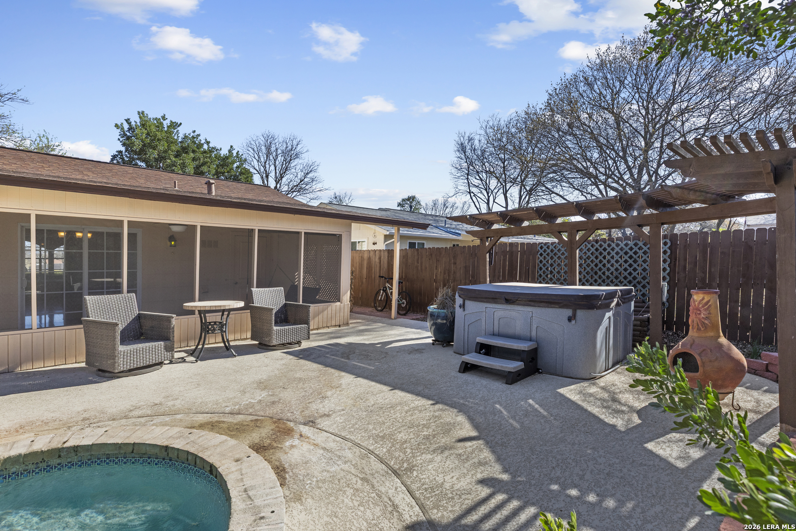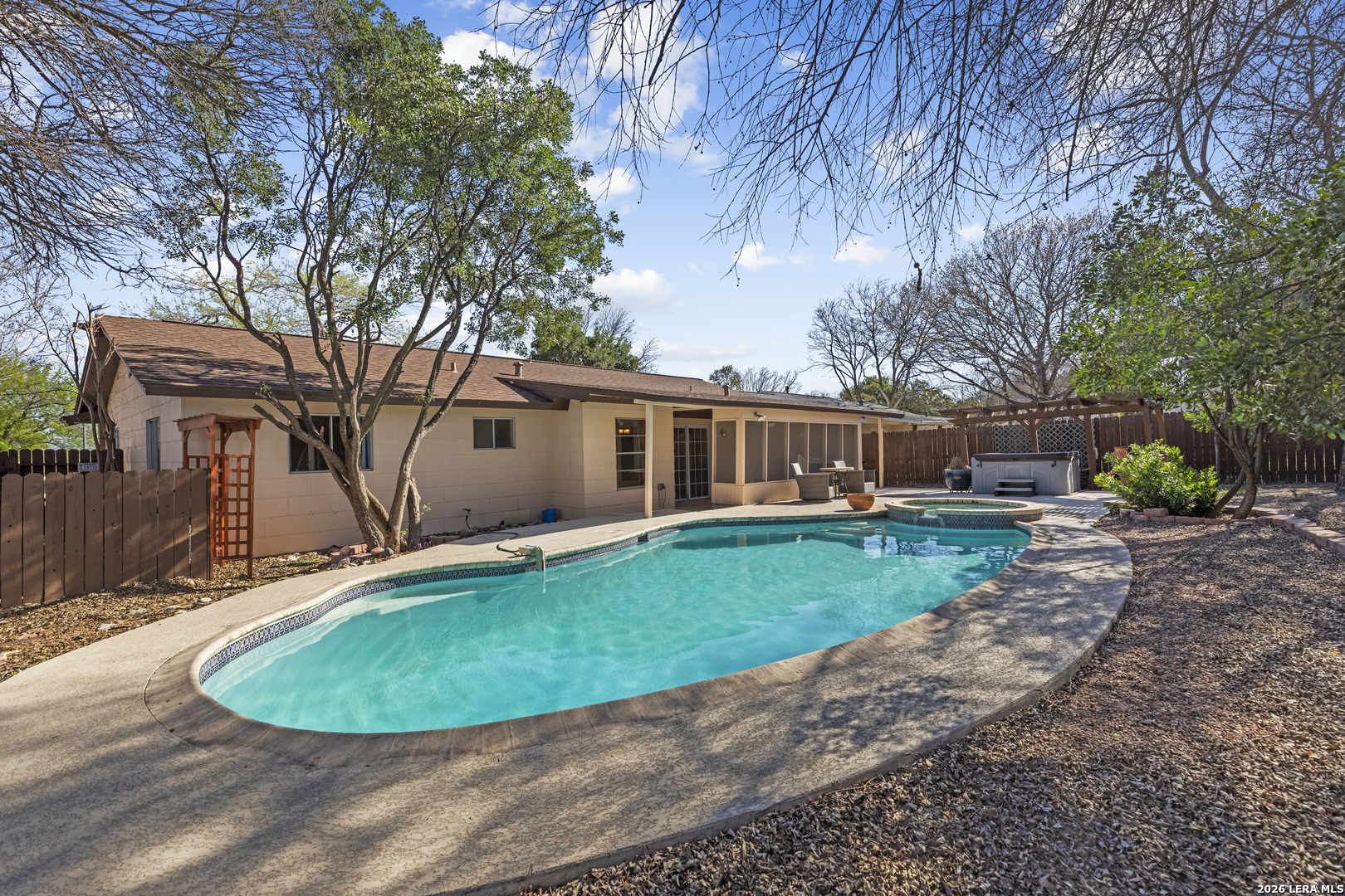 Welcome to this beautifully maintained 3-bedroom, 2-bath home!, Offering comfort, character, and plenty of outdoor space. This inviting property features a spacious backyard perfect for relaxing or entertaining, complete with a sparkling pool and hot tub-ideal for enjoying those warm Texas days and evenings. Inside, the home has been well cared for and thoughtfully maintained, providing a warm and welcoming atmosphere. The functional floor plan offers comfortable living spaces, generous bedrooms, and plenty of natural light throughout. Step outside to enjoy the large backyard, perfect for gatherings, gardening, pets, or simply unwinding by the pool. Whether you're hosting friends or enjoying a quiet evening in the hot tub, this outdoor space is a true highlight. Conveniently located in Live Oak with easy access to shopping, dining, schools, and major highways, this home offers both comfort and convenience.