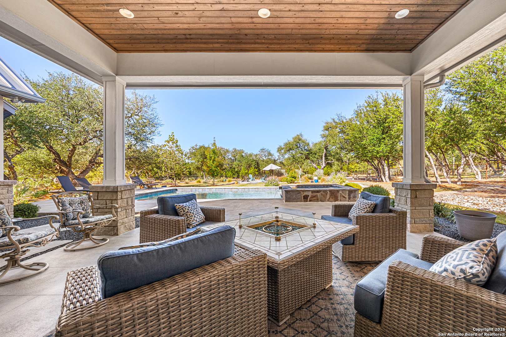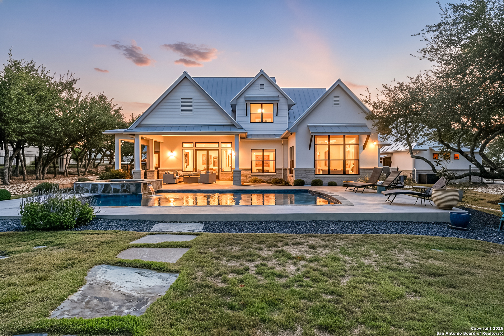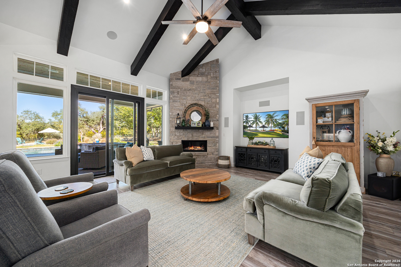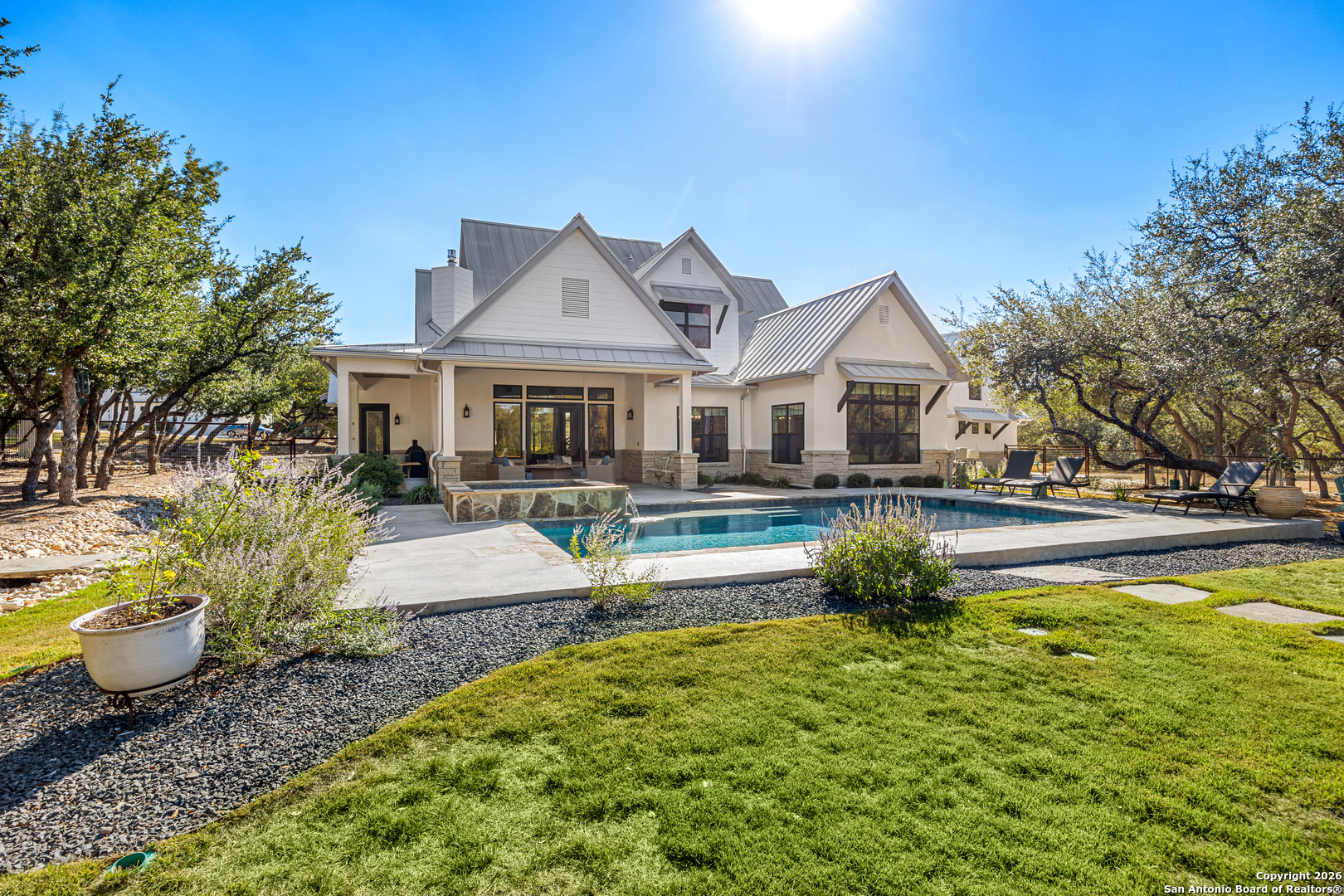 Escape to a refined private retreat within the prestigious, gated Belle Oaks community. Set on 1.11 acres adorned with heritage oak trees and backing to open space, this striking modern farmhouse delivers an exceptional balance of sophistication, privacy, and natural beauty. The outdoor setting feels like a personal park, with serene walking trails and a stunning backyard designed for both relaxation and entertaining. A resort-style pool and spa serve as the centerpiece, surrounded by open views that enhance the sense of tranquility and seclusion. Inside, the open-concept layout is thoughtfully designed and beautifully finished with upgraded tile and quartz surfaces throughout. Vaulted ceilings accented by rustic wood beams add architectural interest and warmth, creating an atmosphere that is both grand and inviting while maintaining a refined modern aesthetic. Built for today's lifestyle, the home offers fiber internet with multiple access points, along with cable-ready bedrooms and game room. Functional yet elevated spaces include a custom pantry, flexible mudroom, and a flexible formal dining room that can easily transition into a game room, private home office or additional living area. The primary suite is a luxurious retreat, featuring expansive views, a custom walk-in closet, and a spa-inspired bathroom with a freestanding soaking tub and an oversized shower designed for relaxation. Additional features enhance both comfort and convenience, including an oversized garage, walk-in attic, second attic above the garage for exceptional storage, and a whole-house backup generator, providing peace of mind without sacrificing style. This is more than a home-it's a lifestyle statement. Book your personal tour today!