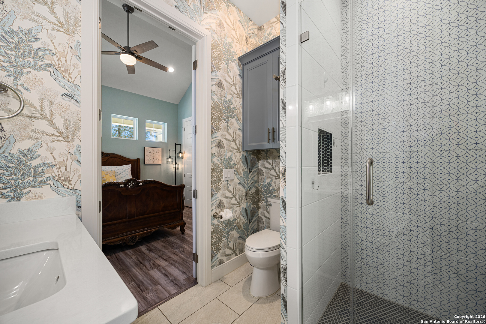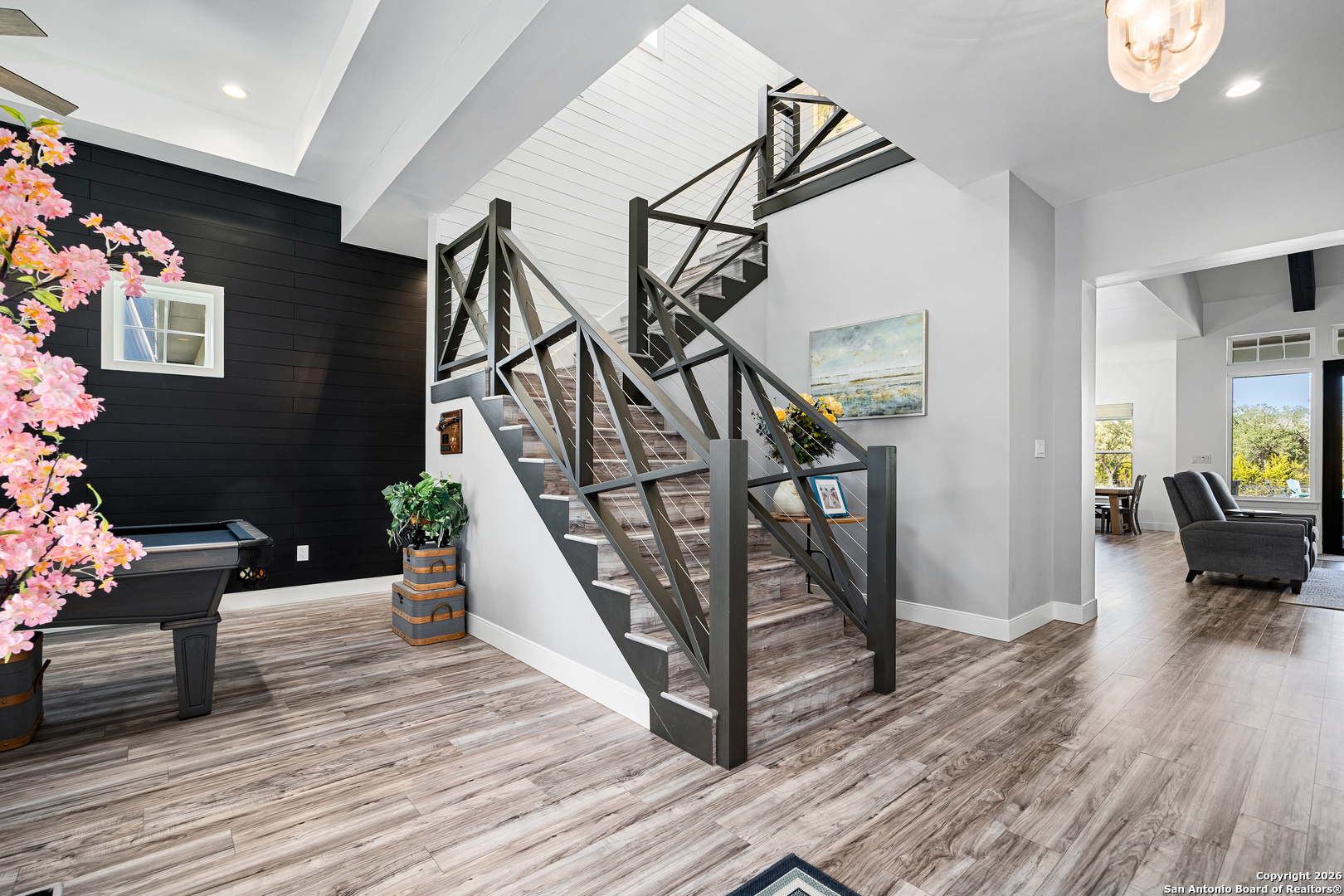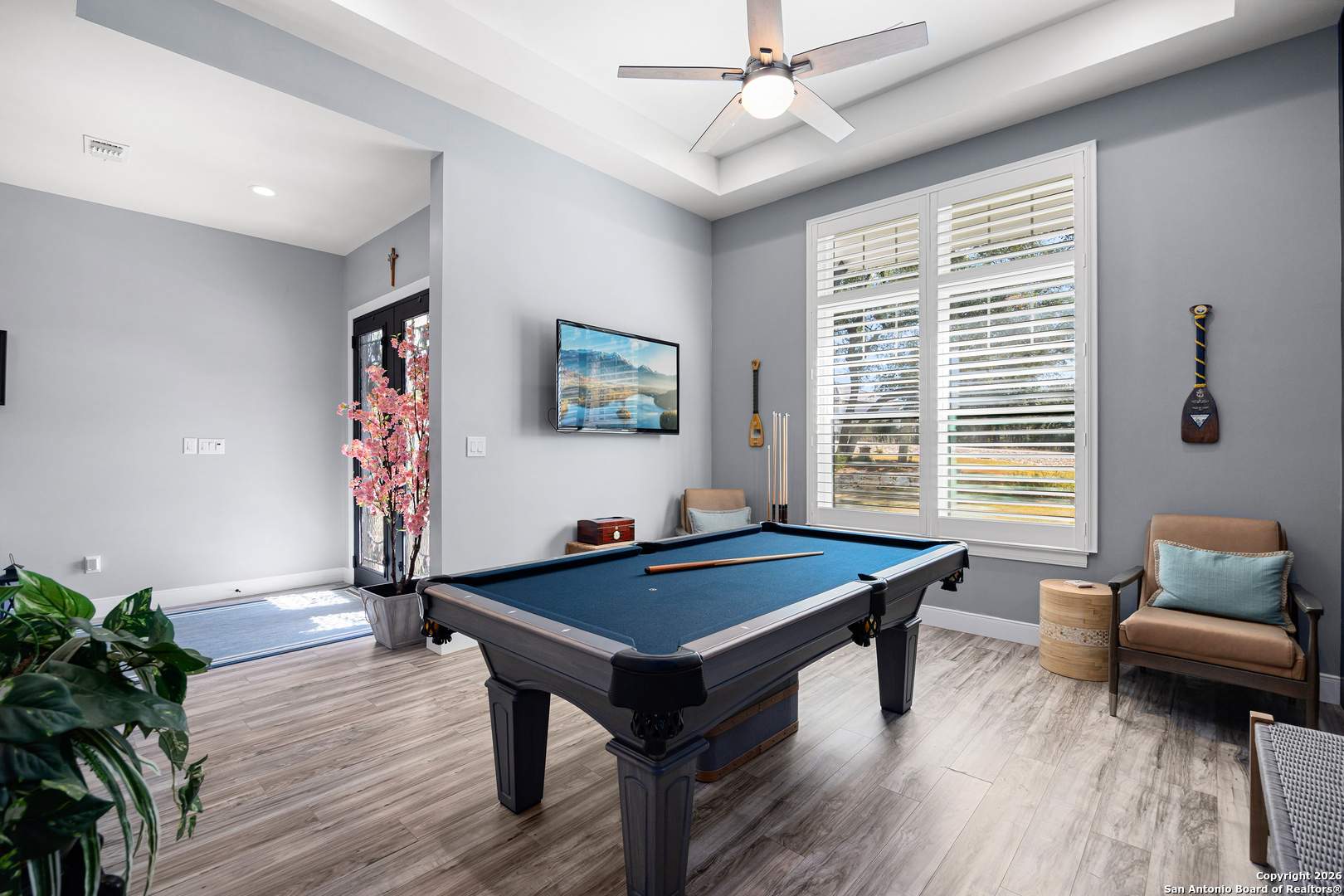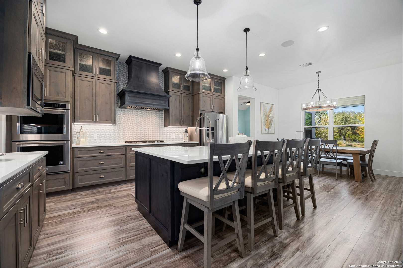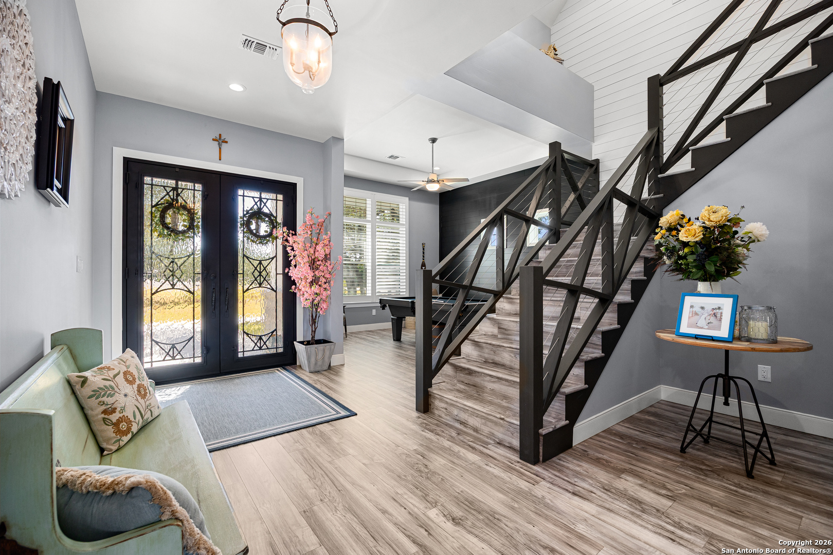 Escape to a refined private retreat within the prestigious, gated Belle Oaks community. Set on 1.11 acres adorned with heritage oak trees and backing to open space, this striking modern farmhouse delivers an exceptional balance of sophistication, privacy, and natural beauty. The outdoor setting feels like a personal park, with serene walking trails and a stunning backyard designed for both relaxation and entertaining. A resort-style pool and spa serve as the centerpiece, surrounded by open views that enhance the sense of tranquility and seclusion. Inside, the open-concept layout is thoughtfully designed and beautifully finished with upgraded tile and quartz surfaces throughout. Vaulted ceilings accented by rustic wood beams add architectural interest and warmth, creating an atmosphere that is both grand and inviting while maintaining a refined modern aesthetic. Built for today's lifestyle, the home offers fiber internet with multiple access points, along with cable-ready bedrooms and game room. Functional yet elevated spaces include a custom pantry, flexible mudroom, and a flexible formal dining room that can easily transition into a game room, private home office or additional living area. The primary suite is a luxurious retreat, featuring expansive views, a custom walk-in closet, and a spa-inspired bathroom with a freestanding soaking tub and an oversized shower designed for relaxation. Additional features enhance both comfort and convenience, including an oversized garage, walk-in attic, second attic above the garage for exceptional storage, and a whole-house backup generator, providing peace of mind without sacrificing style. This is more than a home-it's a lifestyle statement. Book your personal tour today!