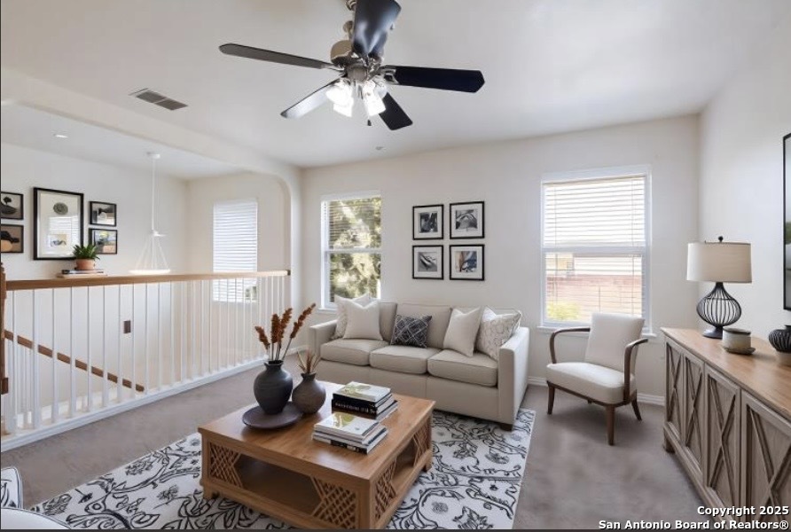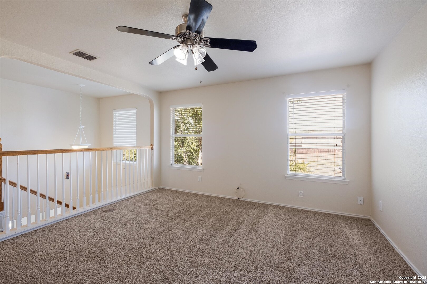 Lovely and inviting home in popular Solana Ridge community. Fresh paint, with a light an airy tone. As you step in, you will delight in the gorgeous ceramic wood tile floors! Home offers a spacious, super clean kitchen with a glass sliding door leading to the covered patio. Upstairs, relax in the oversized loft/game room/ secondary living area. Checkout size of primary bedroom- a great room for your personal retreat area! Come see it for yourself with shopping & entertainment options nearby, close to Lackland AFB and quick access to major highways!
