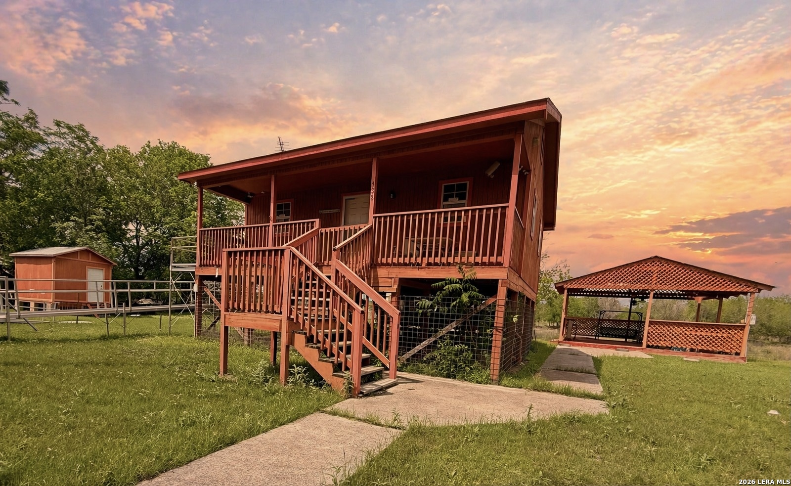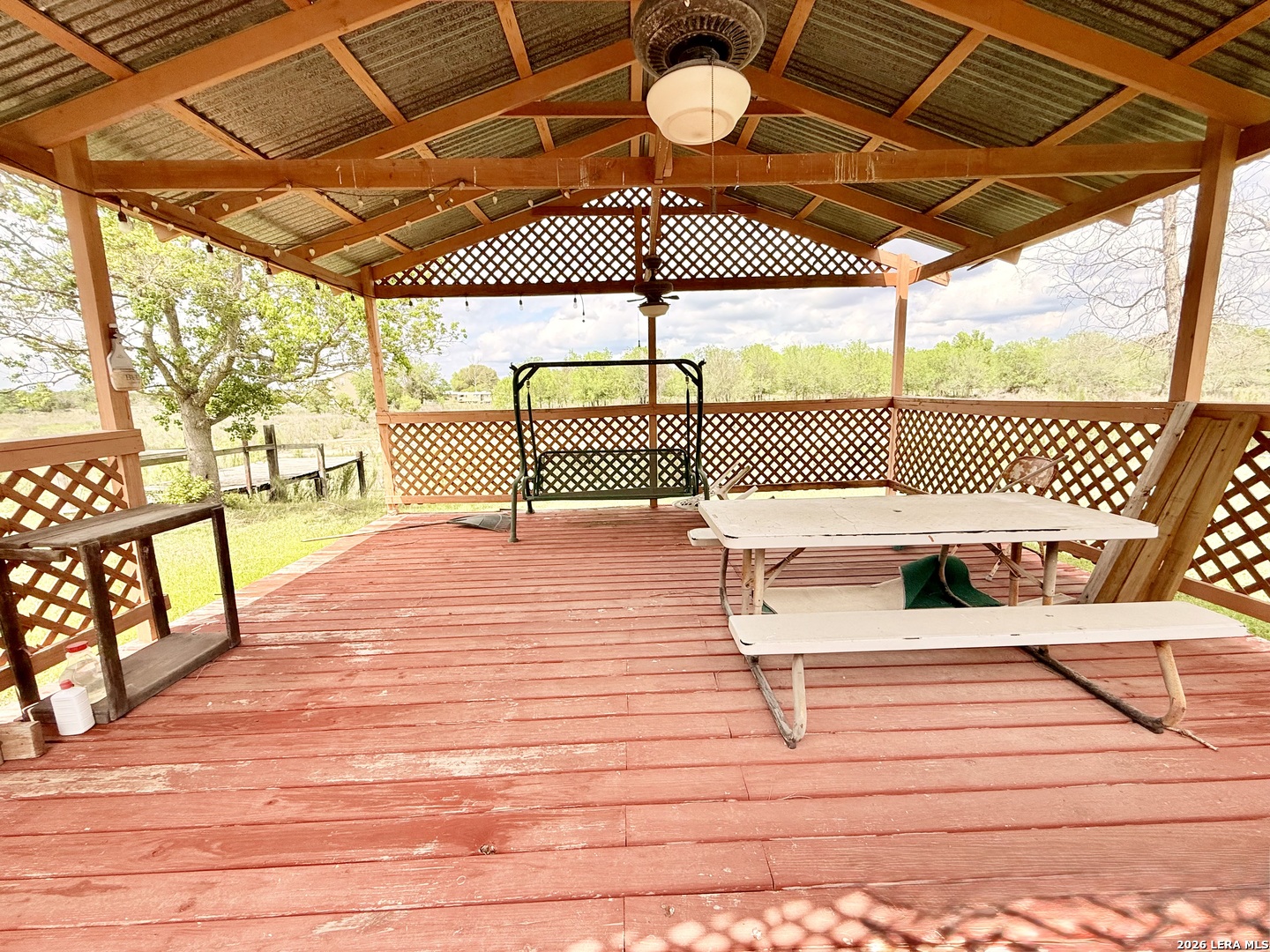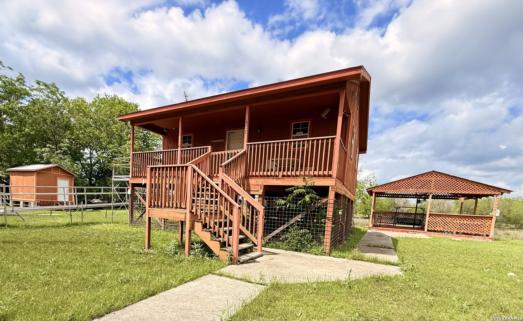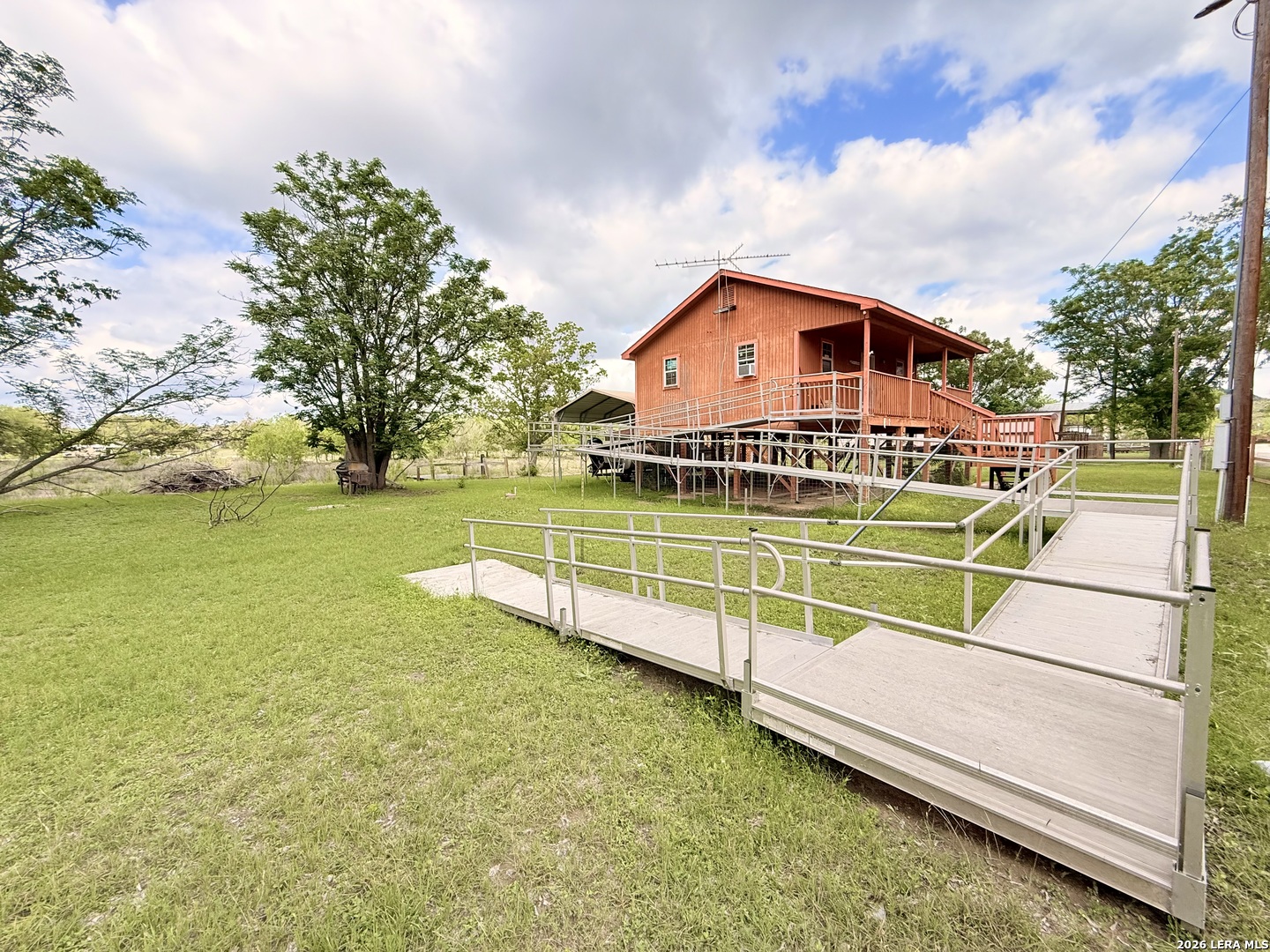 Charming 2 bed, 1 bath country lake cottage with easy access to the Medina River and Medina Lake. Nestled on three generous lots totaling 0.215 acre along a peaceful tributary fed by the Medina River, this property offers a quiet slice of Hill Country living. When the waters rise again, spend your days fishing, kayaking, or simply unwinding from your own backyard, complete with a large, covered deck and private pier-perfect for soaking in the scenery and fresh air. While water levels are currently low, this setting truly comes to life when the rains return, bringing the water right to your doorstep. Towering mature trees provide beautiful shade across the level property, creating a serene and inviting outdoor space. Located just 11 miles from downtown Bandera, this cozy retreat is ideal for a weekend getaway, rental opportunity, or full-time country living.