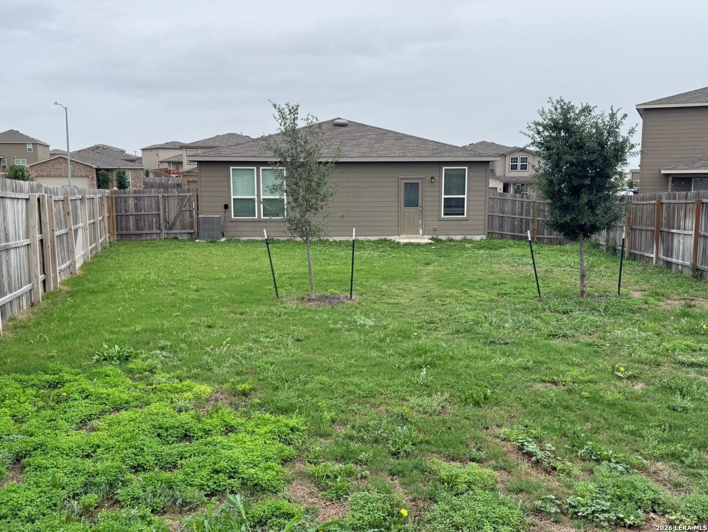 Nearly new and move-in ready! This 2023-built Centex home (Hewitt plan) features 3 bedrooms, 2 bathrooms, and a private study perfect for a home office. The open-concept layout spans ~1,682 sq. ft., centering on a chef-friendly island kitchen that flows into a spacious gathering room. Positioned on a west-facing lot, you'll enjoy a large, shaded backyard during those warm Texas afternoons-ideal for outdoor entertaining. Located in the Cinco Lakes community with neighborhood pool and playground. Extremely convenient to Loop 1604, Highway 90, and less than 15 minutes from Lackland AFB.