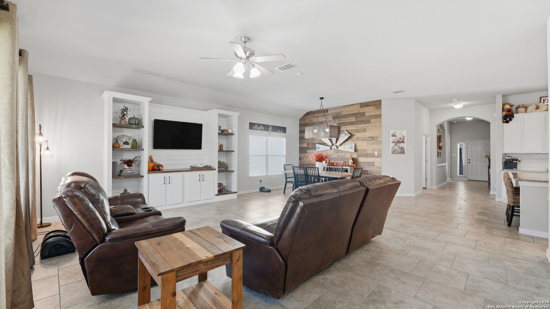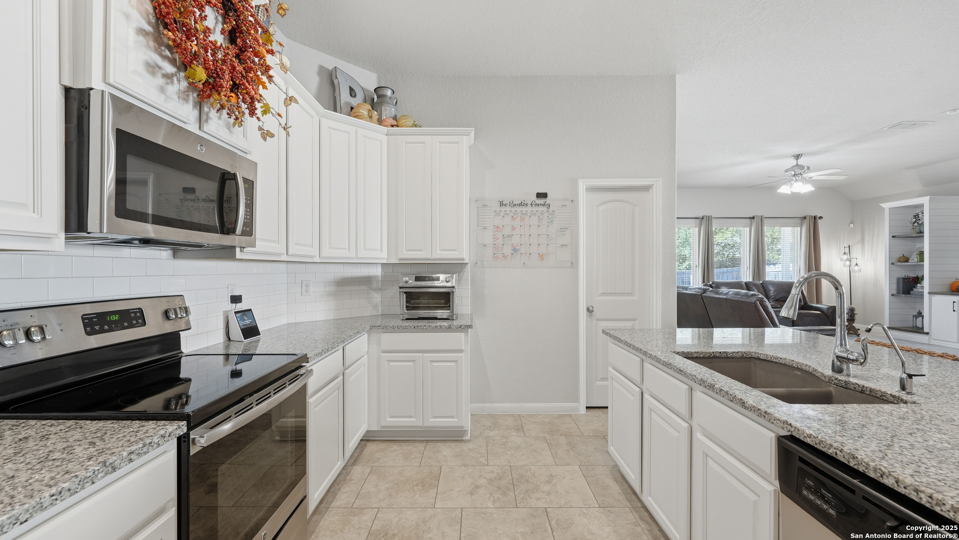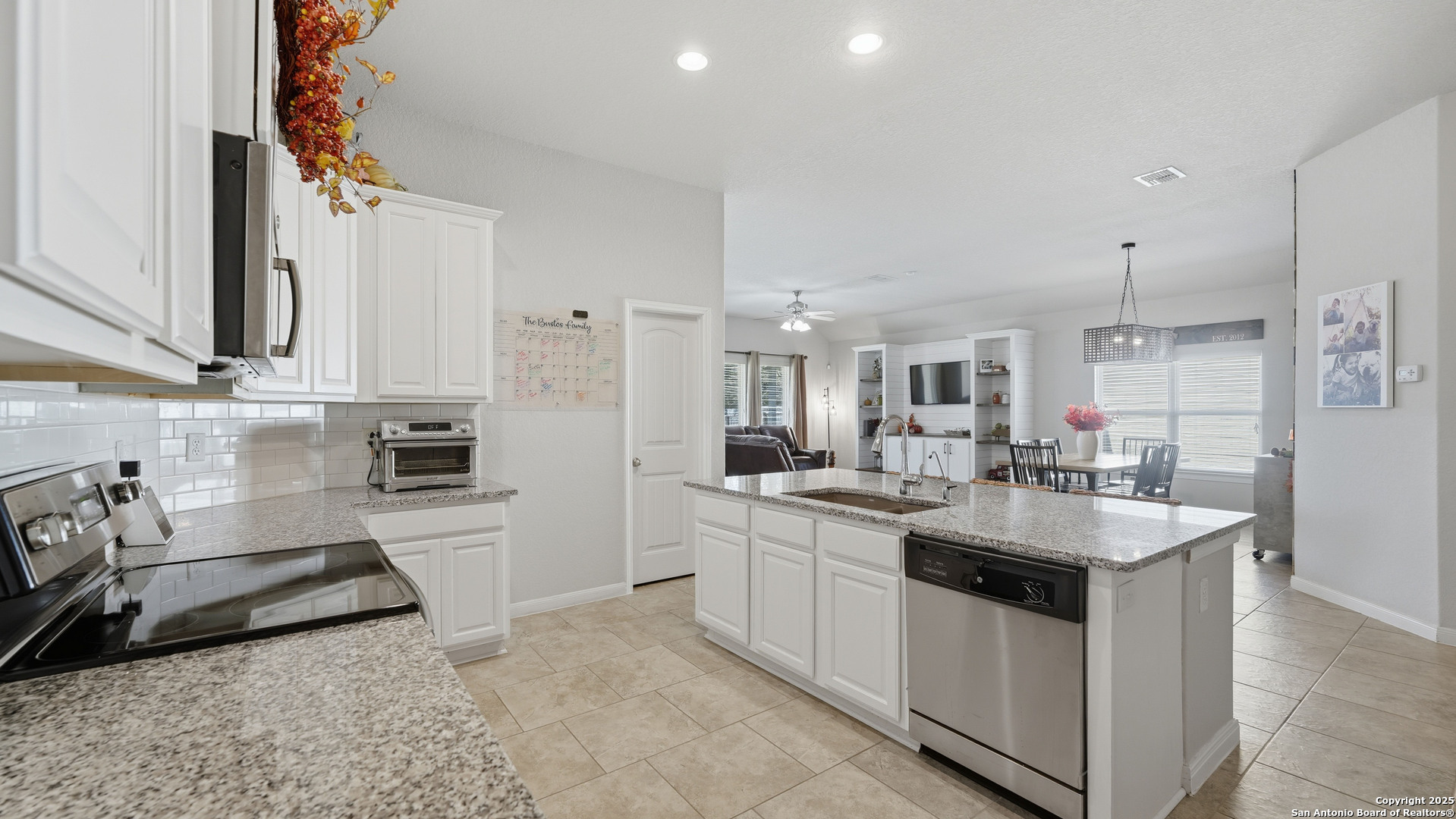 Welcome to comfort, style, and functionality, all in one.This beautiful 4-bedroom, 2-bath single-story home offers 1,963 sq ft of open living space designed for everyday living and easy entertaining. The inviting layout features vinyl flooring in the bedrooms, custom built-in shelving in the living room, and a bright island kitchen with white cabinets, stainless steel appliances, and plenty of storage for everything you love to cook and create. The flexible fourth bedroom can easily serve as a home office, workout space, or cozy guest room. Step outside and unwind in a freshly updated backyard with stone landscaping, brand-new greenery, and a designated firepit area, perfect for evening gatherings or quiet nights. Located in a peaceful neighborhood just minutes from local shopping, dining, and exciting new businesses on the rise, this home delivers both convenience and charm. Additional highlights include a new roof (2025) and thoughtful touches throughout that show just how well-maintained this property truly is.