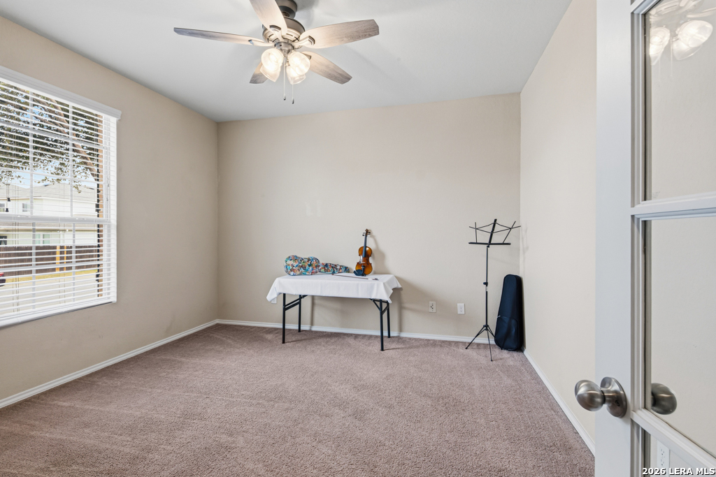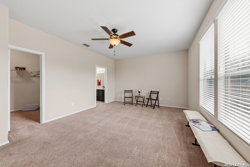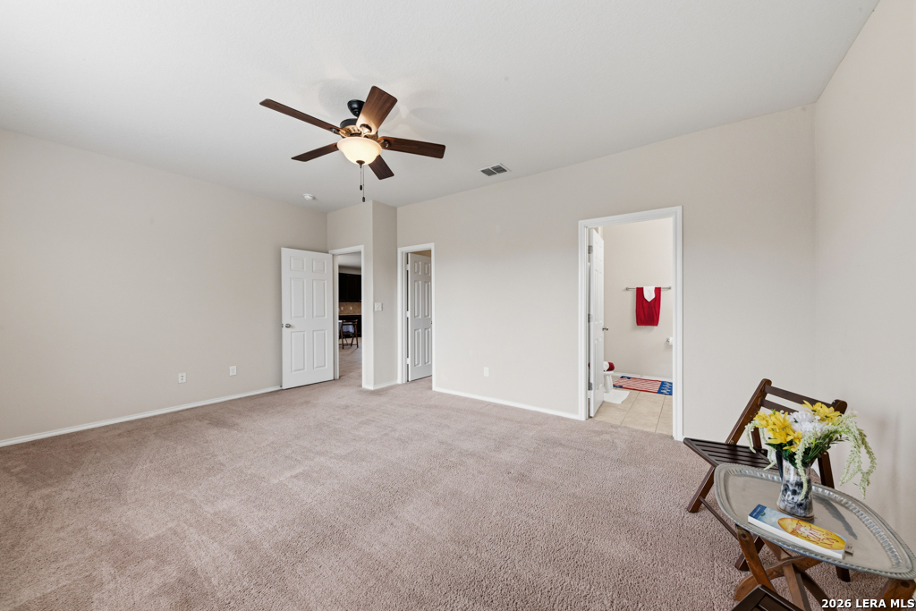 Impeccable 'Atwater' is the largest One-Story model built in the community. This lovely floorplan boasts chef kitchen & generous primary suite with oversize shower. Designated office with 10-pane French glass doors. Convenient to: Hospital (1m), Forum shopping, & Randolph AFB. New Roof 10/2024, Ext Paint 11/2024, Ceiling fans in each room, including utility. Step out to view Greenbelt from covered patio & shade. Private front view also, of two back yards. Virtual Tour & Upgrades in AssocDocs. Welcome Home!