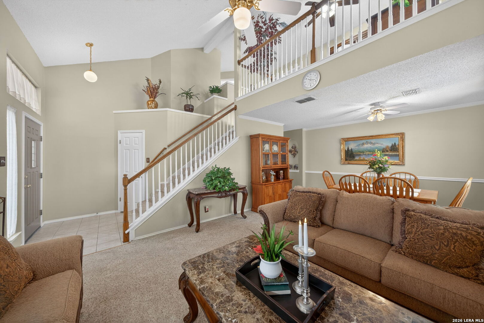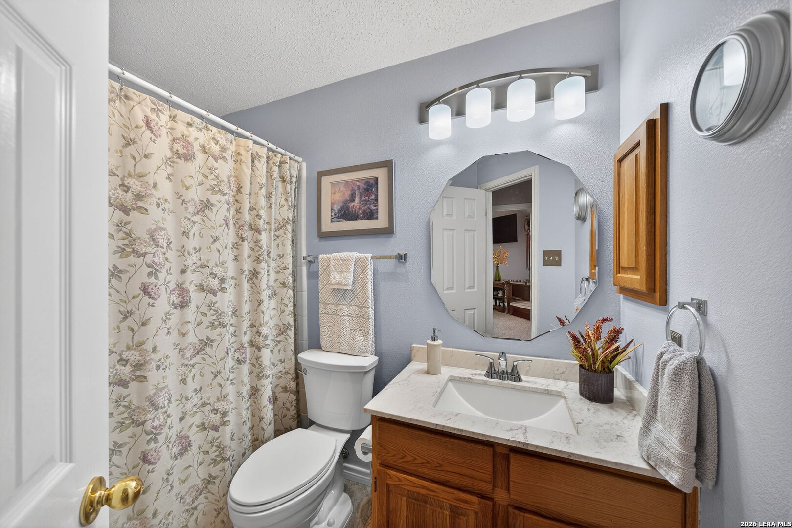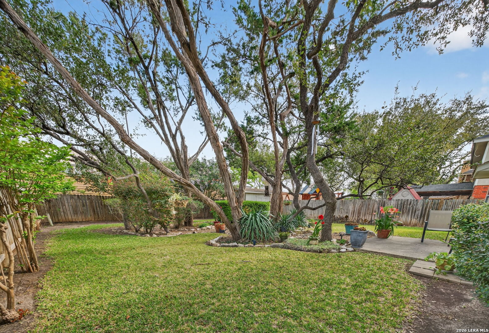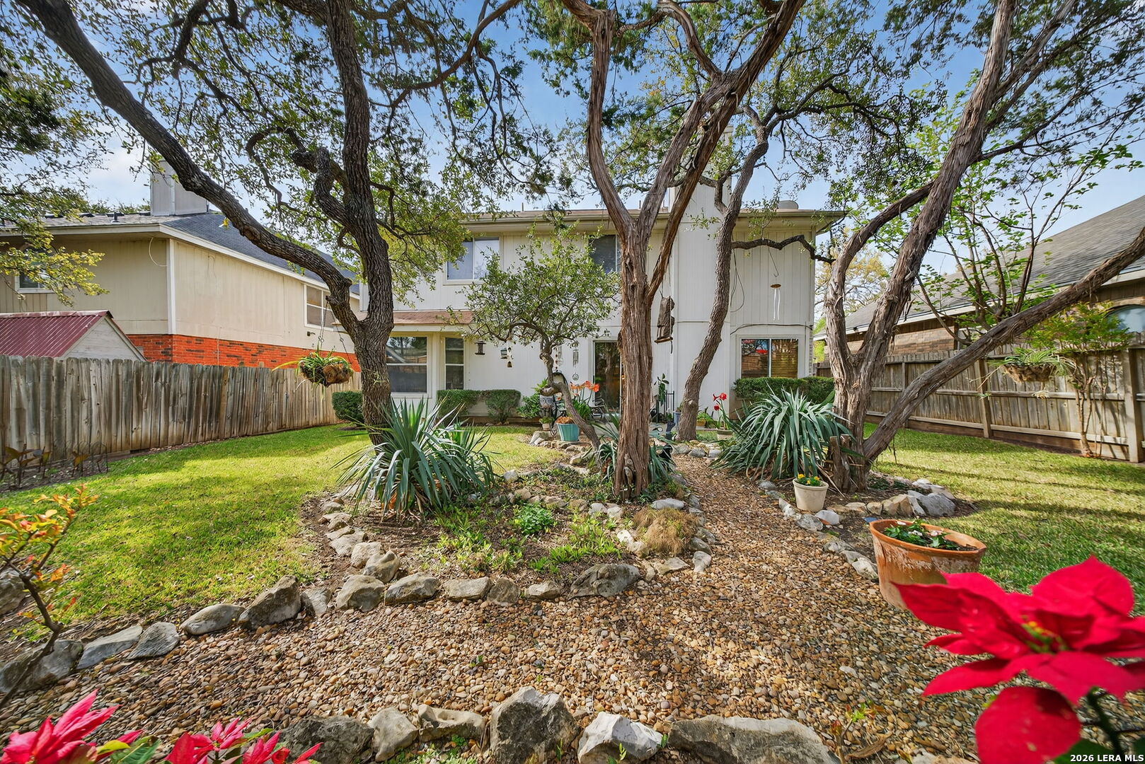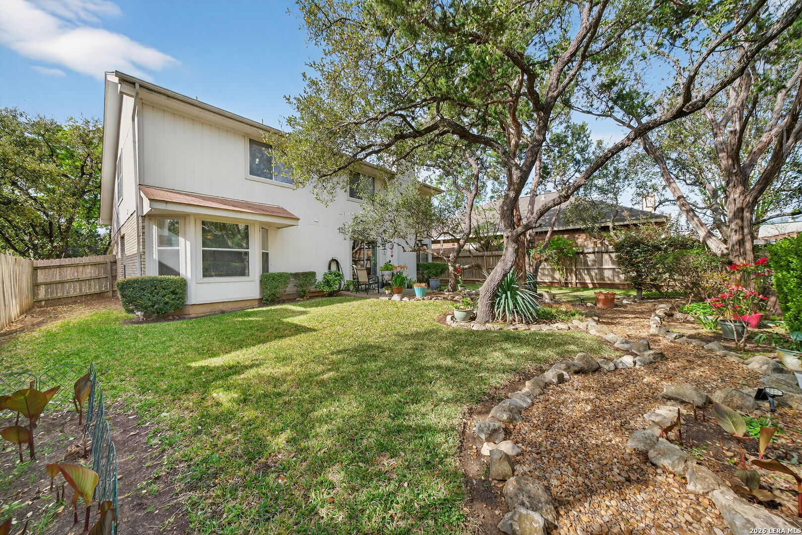 Walk in and fall in LOVE! OPEN HOUSE Sunday March 29 from 2 - 4. Lower level perfectly arranged for home entertaining with granite countertops in the kitchen, breakfast bar, eat in kitchen, dining room, two living areas and powder room. All bedrooms upstairs and the loft can be used as your home office! Gorgeous back yard has a park-like feel. Hop on 1604 or I-10 and get anywhere. Very close to UTSA, USAA, Valero Energy, Fiesta Texas, La Cantera and other major employers. HEB College Park around the corner and adjoining shopping center opening soon. This is the ultimate convenience! The back yard is a dreamy oasis of beauty.