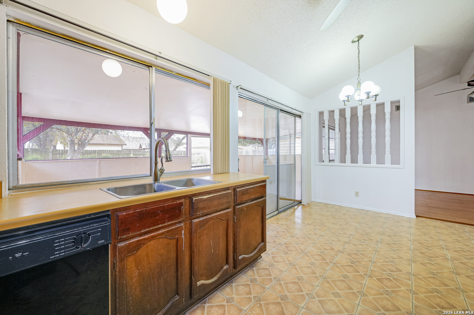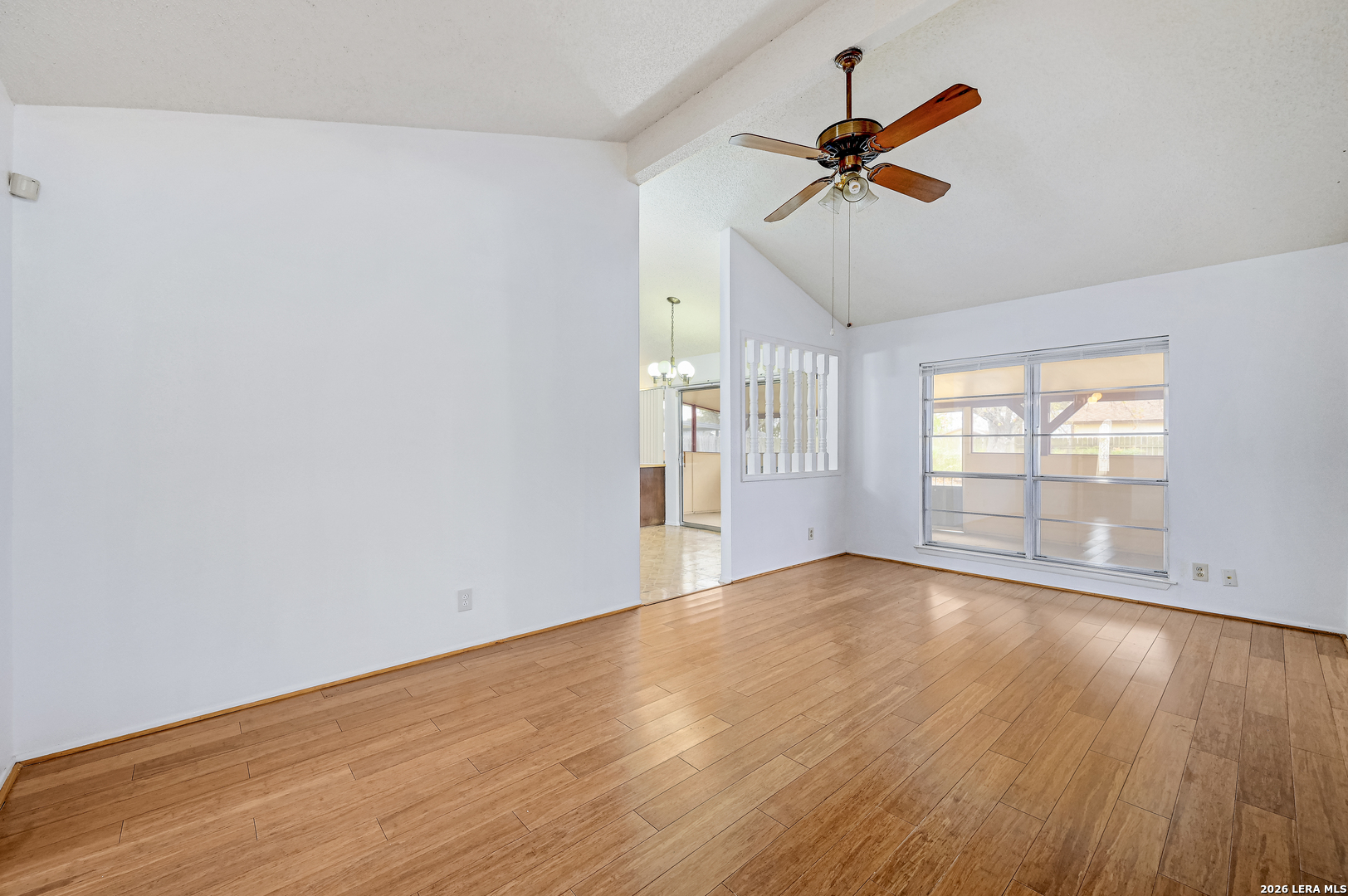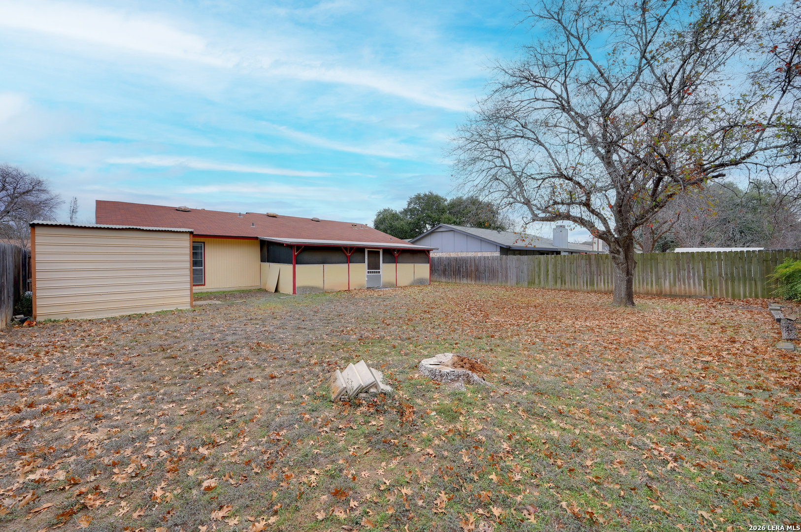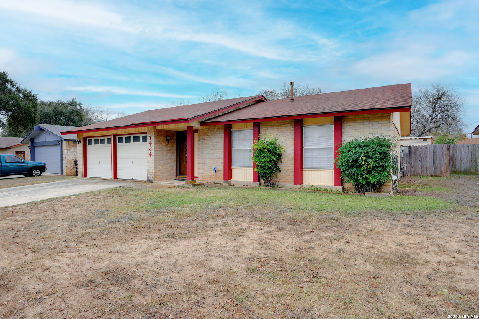 Well-maintained single-story home offering spacious living, vaulted ceilings, and excellent potential in a convenient Northwest San Antonio location. The main living area features wood flooring, a vaulted ceiling, and abundant natural light, creating an open and inviting atmosphere. The kitchen provides ample cabinet storage and counter space, a breakfast area, and views into the living and dining spaces-ideal for everyday living and entertaining. Bedrooms are generously sized and include ceiling fans, with the primary suite offering a private bath featuring a walk-in shower and extended vanity space. An enclosed patio adds flexible bonus space for entertaining, hobbies, or relaxing year-round. The large, fenced backyard with mature trees provides privacy and room to enjoy outdoor living. Conveniently located near major highways, shopping, dining, medical centers, and UTSA. Priced at $206,500, this home presents a great opportunity for buyers looking to personalize and add value.